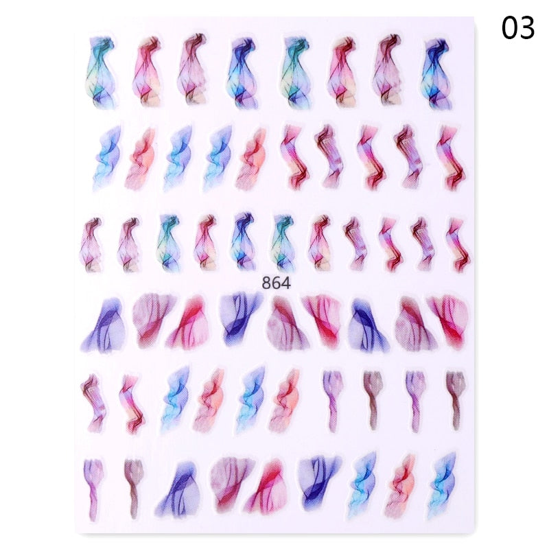 Ripple Marble Blooms Stickers For Nails Manicures Japanese Color Stitching Design Nails Art Stickers Adhesive Tape Decoration