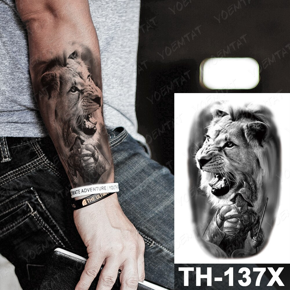 Roaring Lion Temporary Tattoo Sticker For Men Women Wolf Lightning Black Tiger Rose Waterproof Fake Henna Wild Animal Body Art