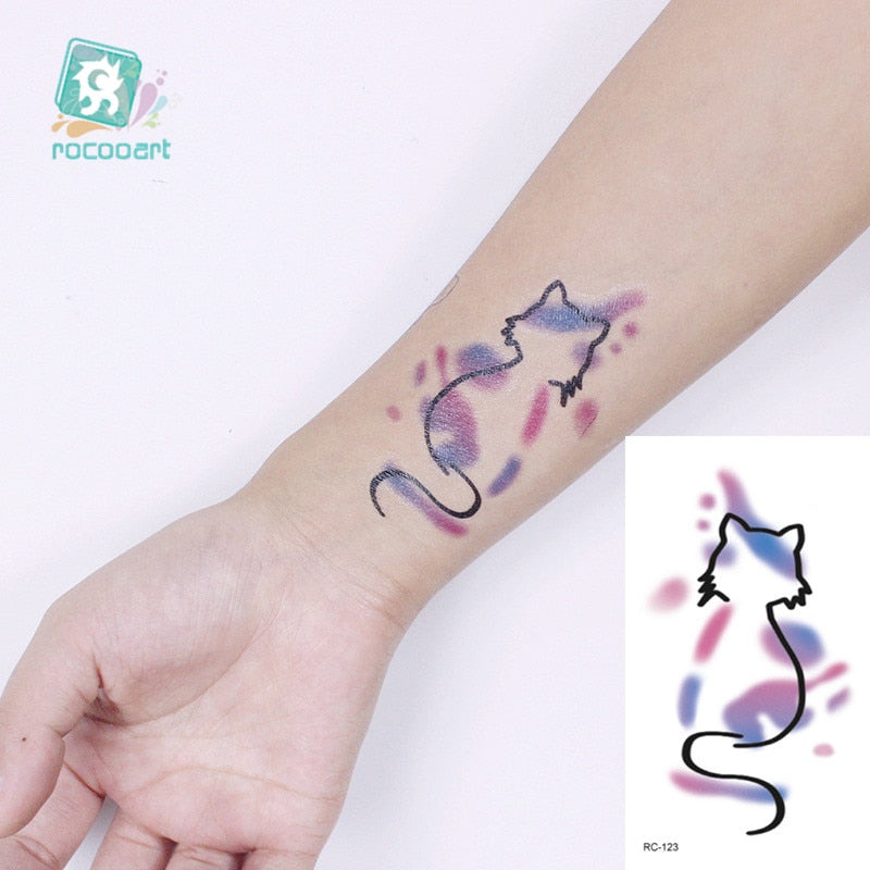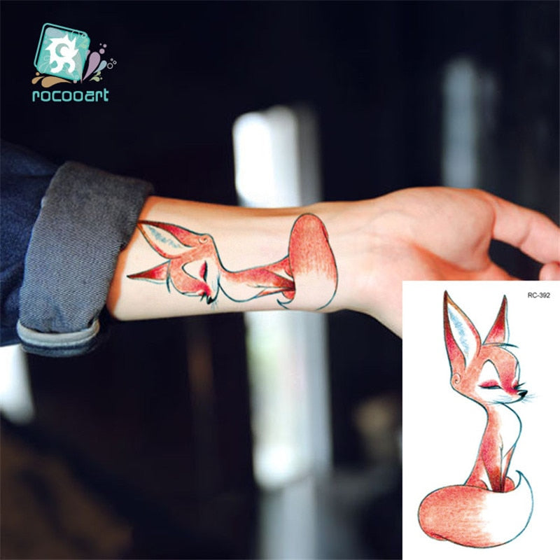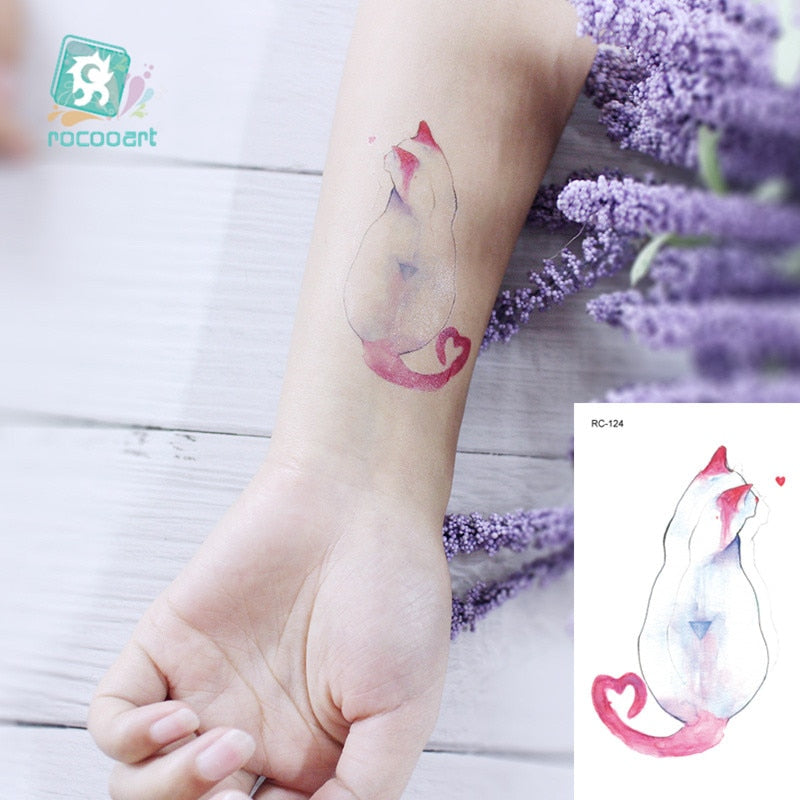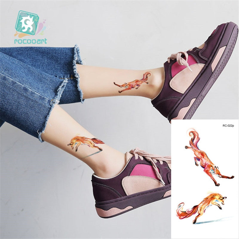 Rocooart Animal Waterproof Temporary Tattoo Sticker Flamingo Cat Fox Tatoo Body Art Women New Fake Taty Tatuaje Cute Small Tatto