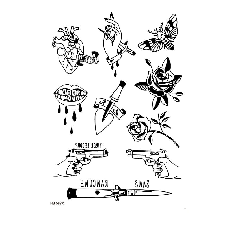 Rose Flower Waterproof Temporary Tattoo sticker Dagger body art tatoo sleeve men Glitter tattoos Men tatuajes temporales