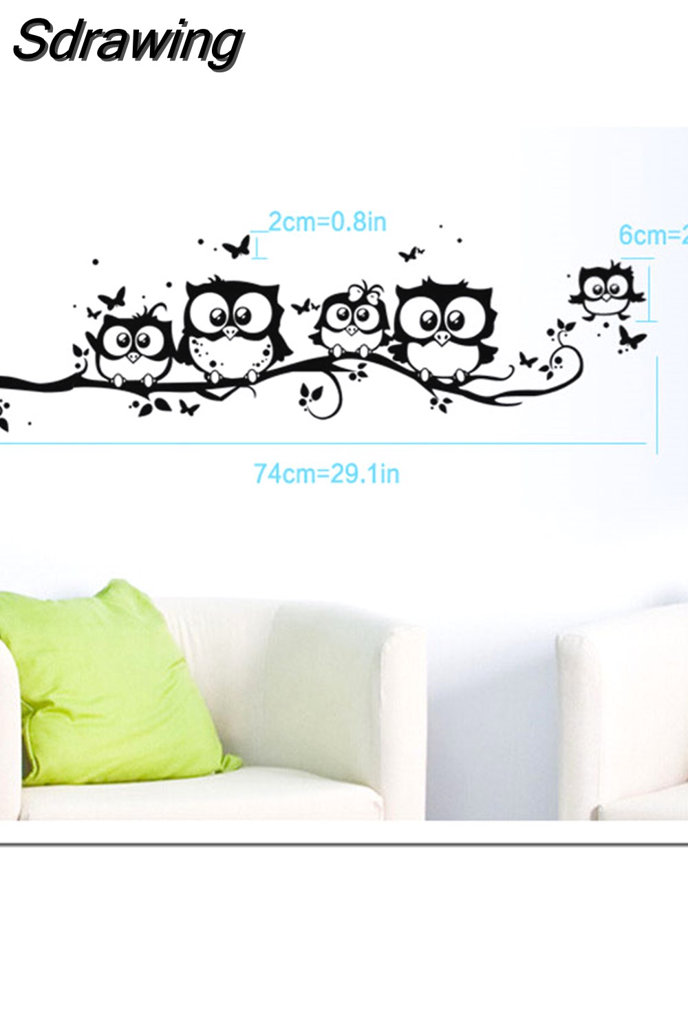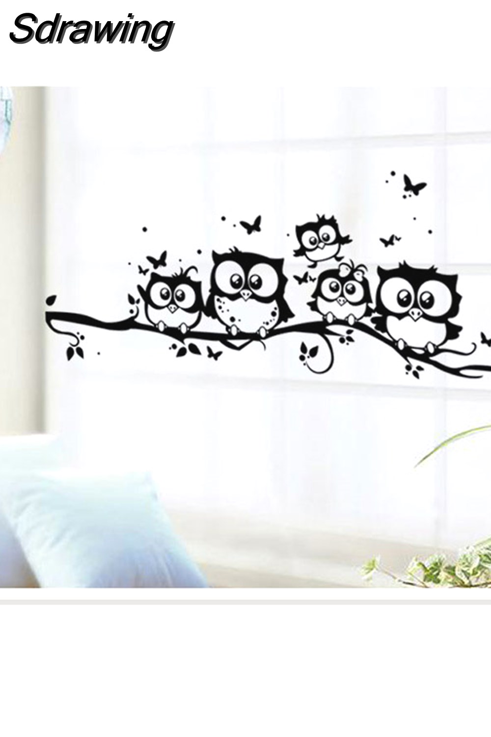 Sdrawing 5 Owls On the Tree Wall Stickers Animals Stickers Butterfly Wall Sticker for Children Room Wall Decals for Baby Room