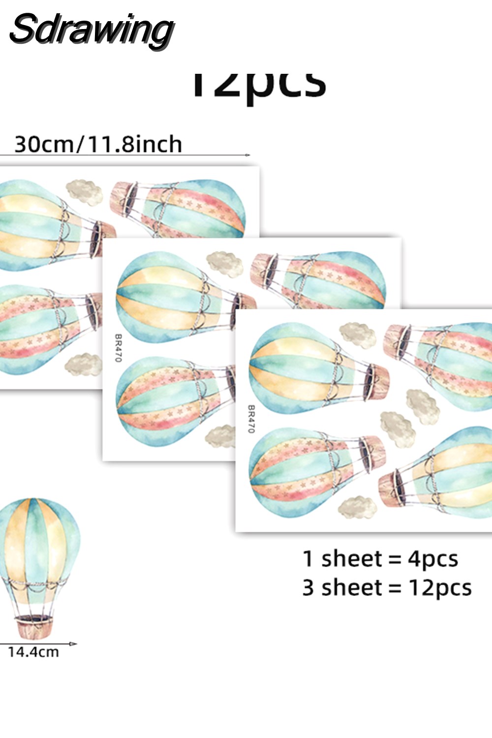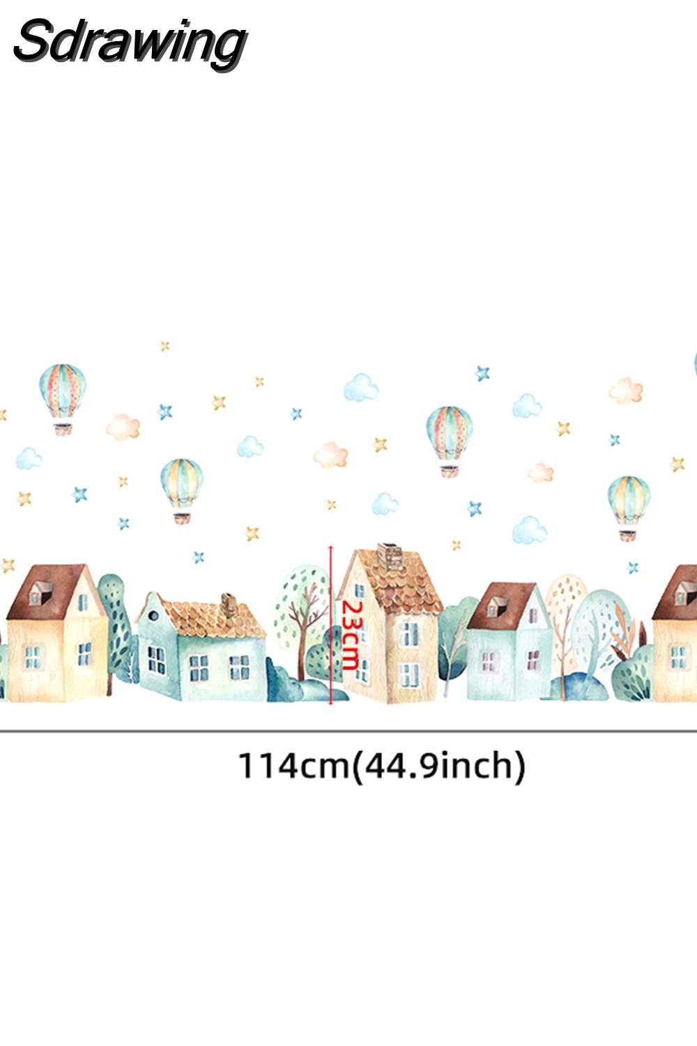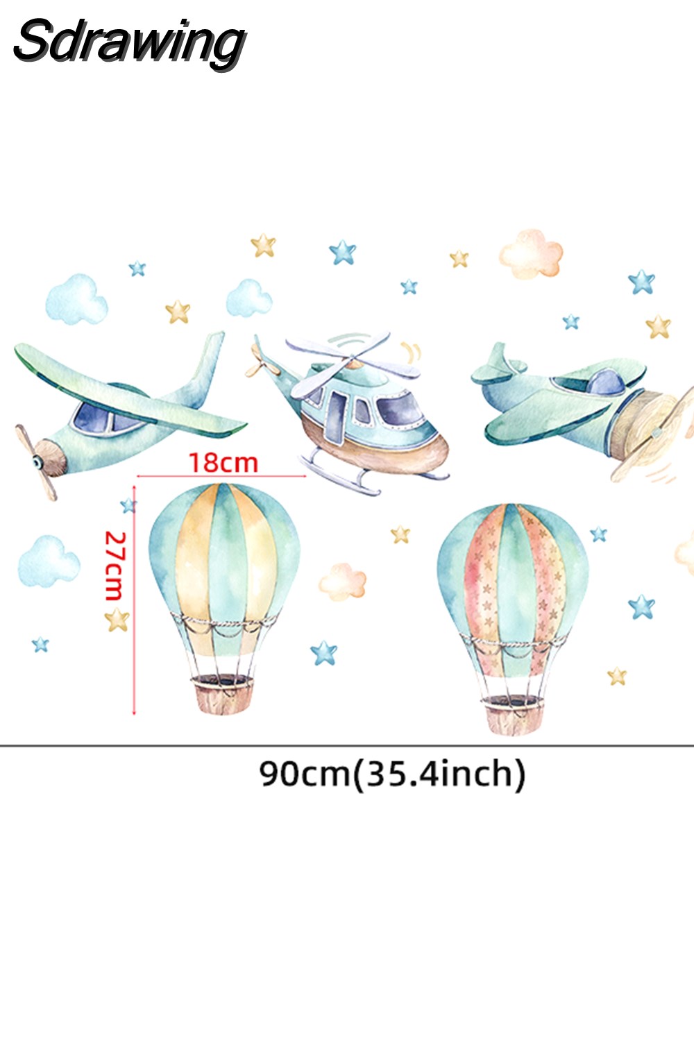 Sdrawing Animals Hot Air Balloon Clouds Wall Stickers Blue Color for Kids Room Baby Nursery Room Wall Decals Boy Room Stickers