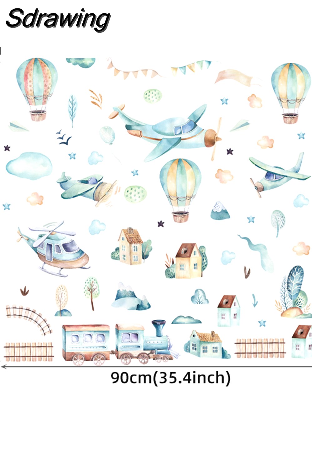 theme: Watercolor Animals Hot Air Balloon Clouds Wall Stickers Blue Color