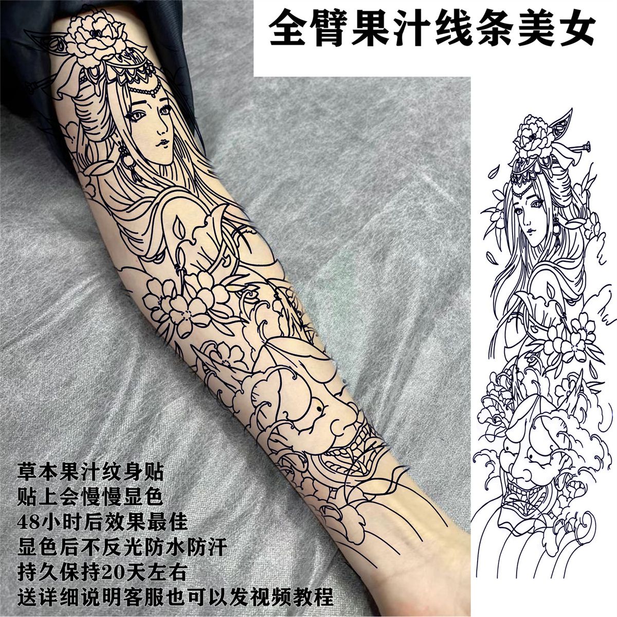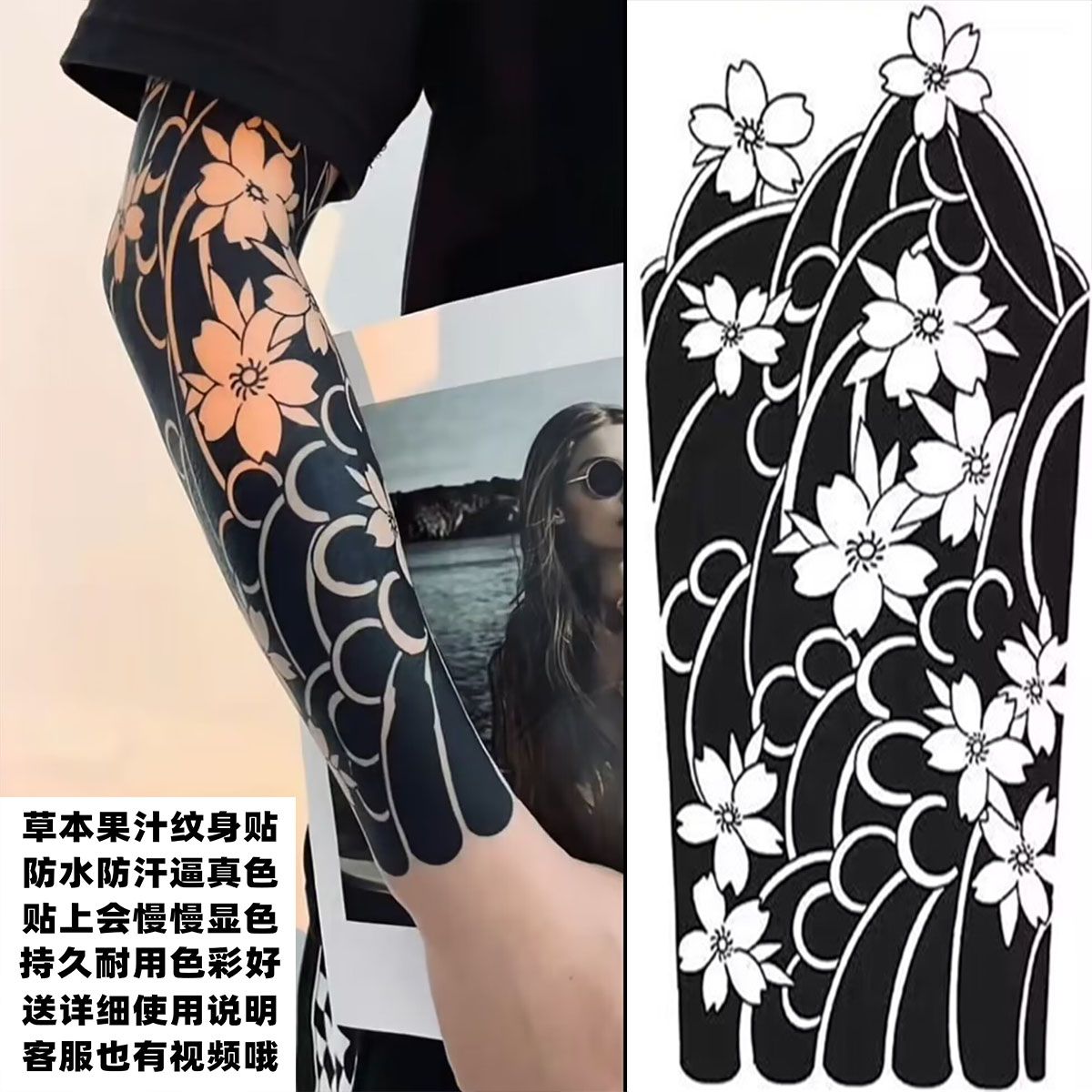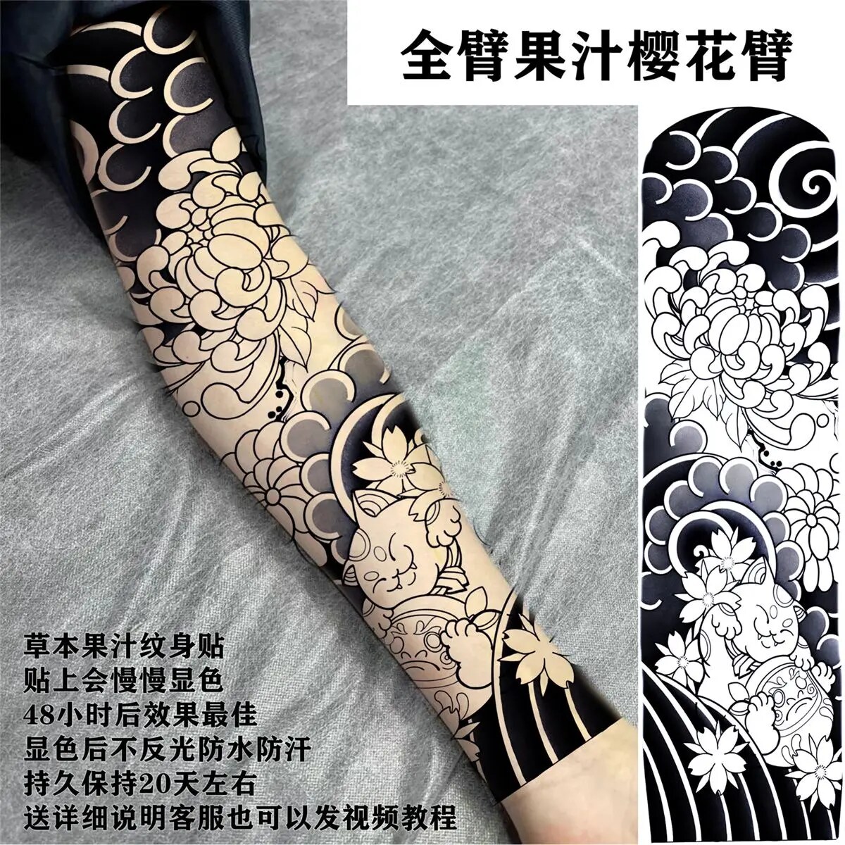 Sdrawing Arm Herbal Juice Tattoo for Woman Man Waterproof Fake Tattoos Cat Flower Lasting Tatoo Punk Temporary Tattoo Stickers