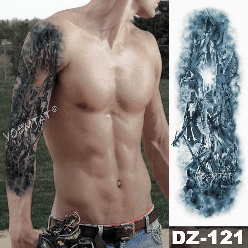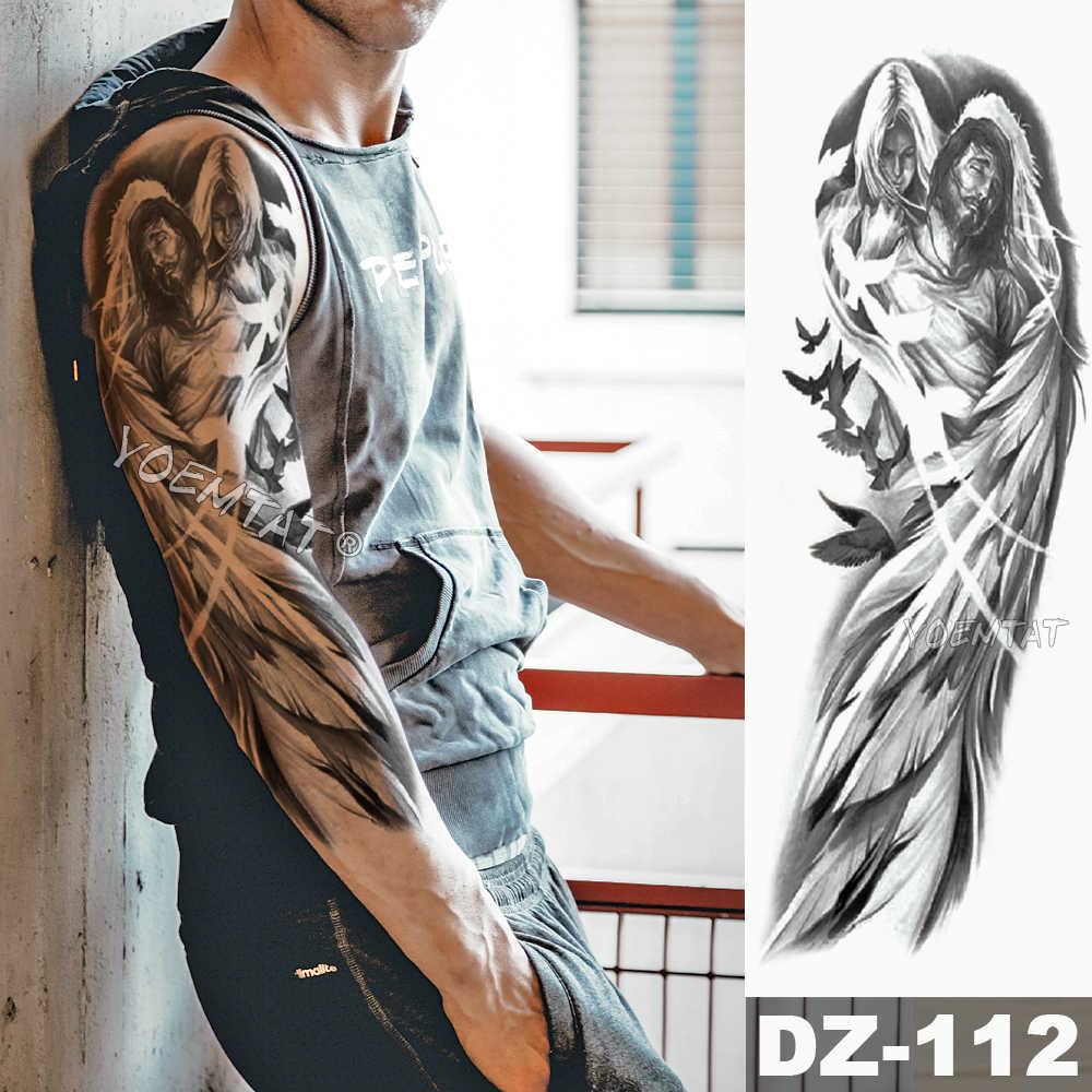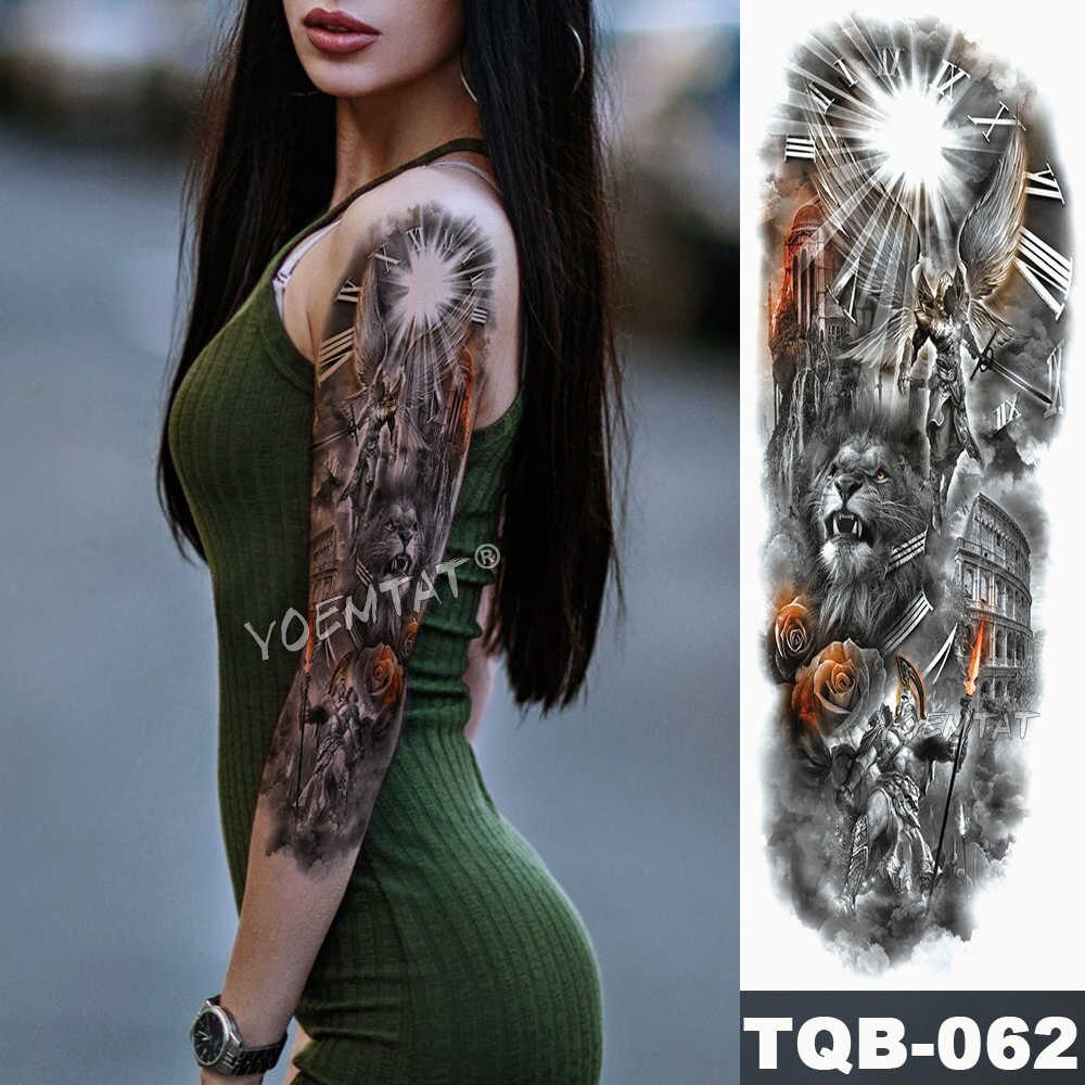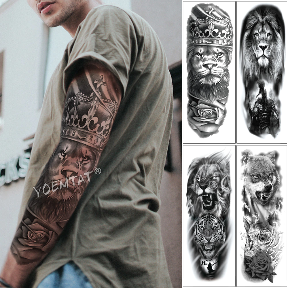Sdrawing Arm Sleeve Tattoo Lion Crown King Rose Waterproof Temporary Tattoo Sticker Wild Wolf Tiger Men Full Skull Totem Tattoo