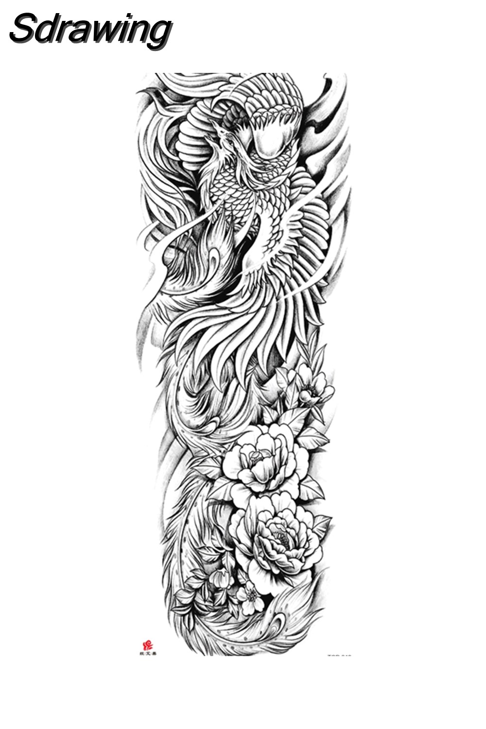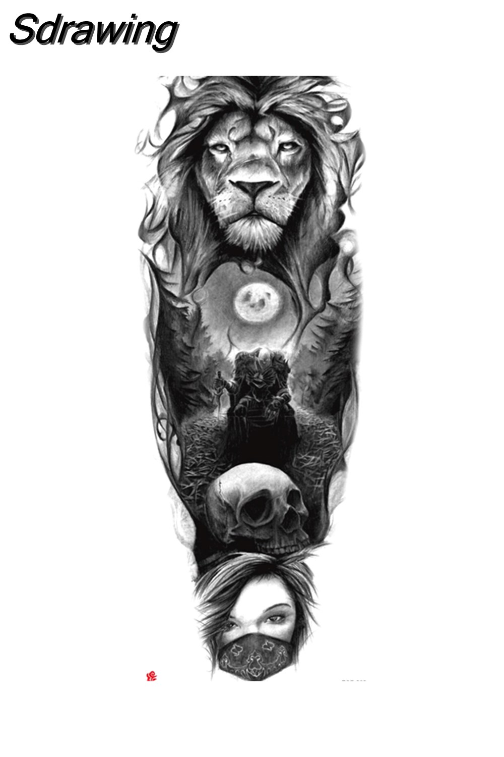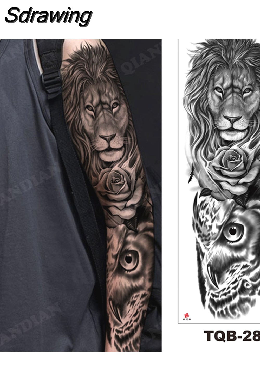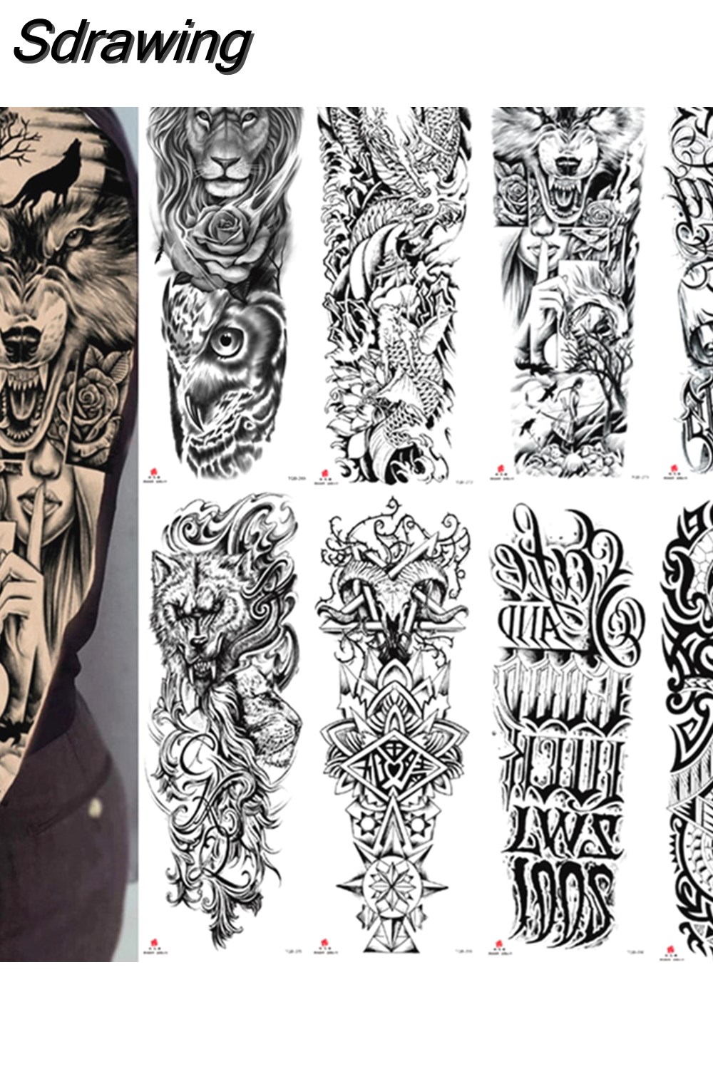 Sdrawing Arm Temporary Tattoo Wolf Lion Fish Horns Geometric Man Body Leg Rose Flower Phoenix Waterproof Sticker Cool Women Tatoo 715-0