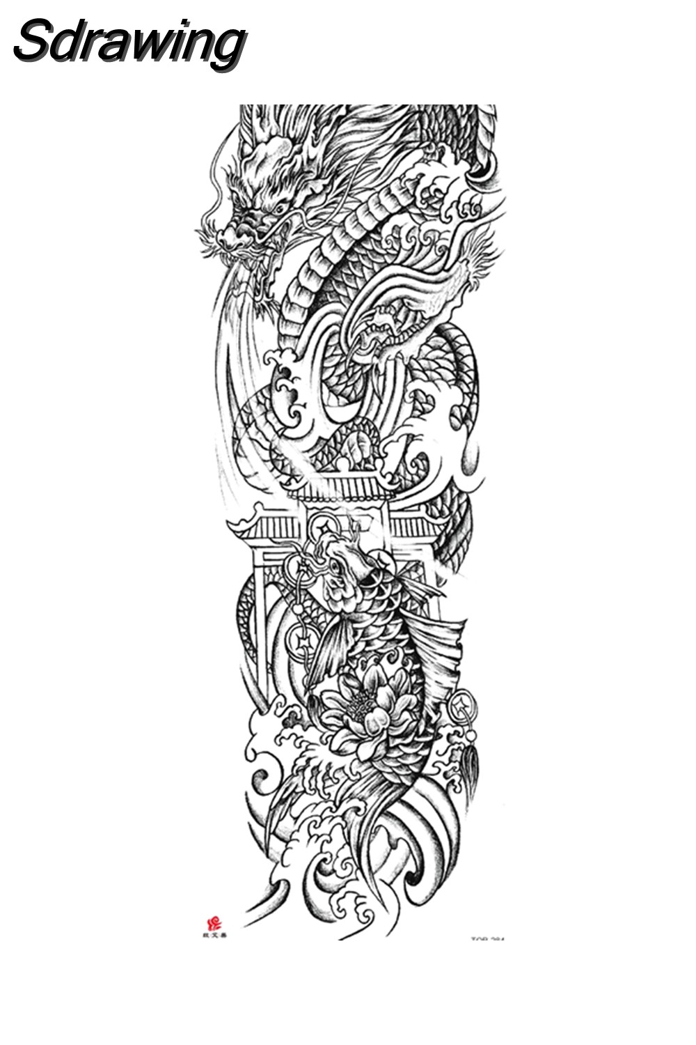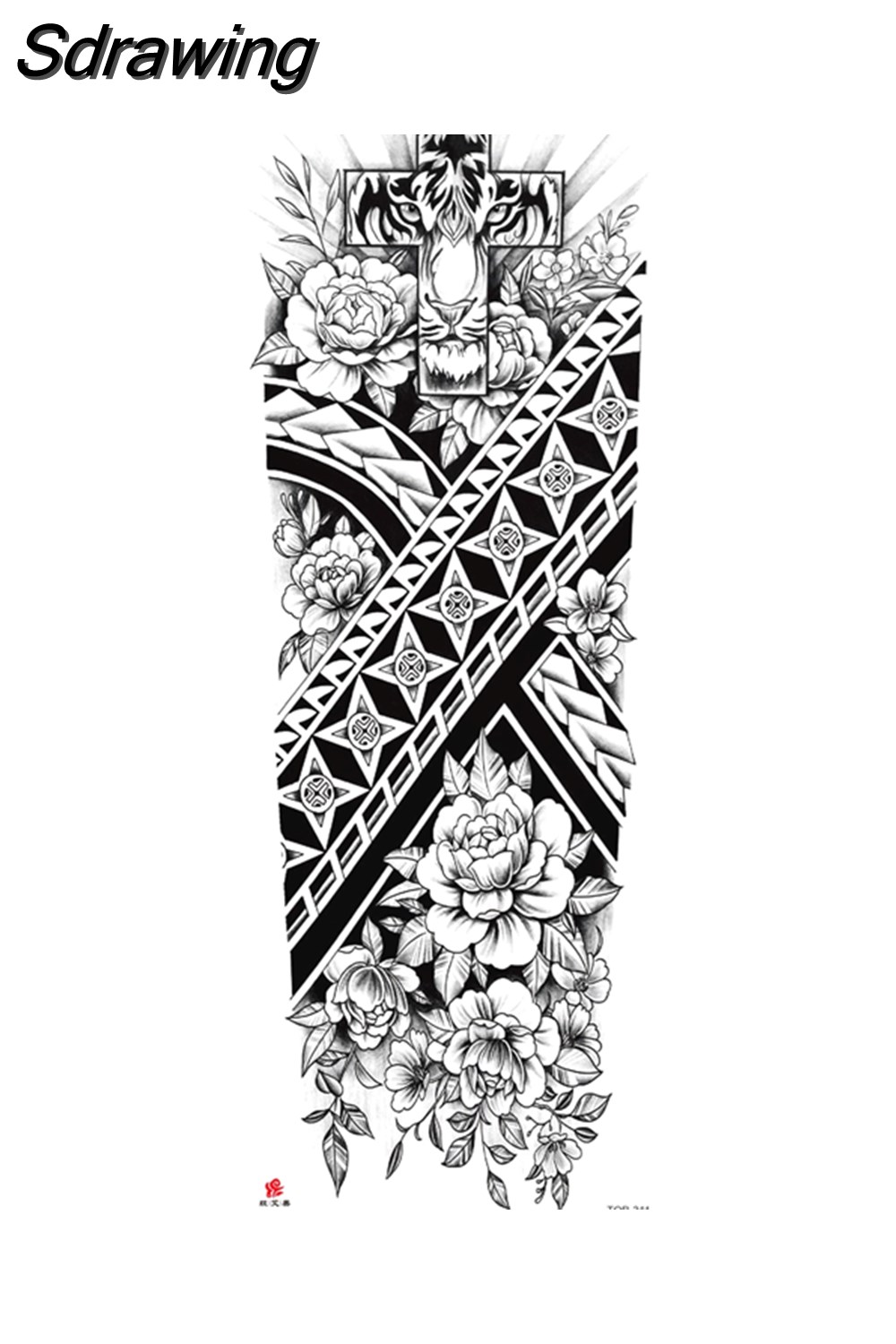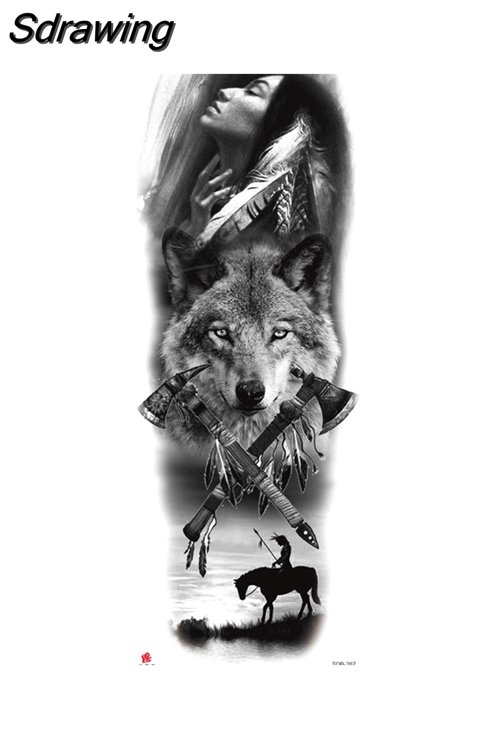 Sdrawing Arm Temporary Tattoo Wolf Lion Fish Horns Geometric Man Body Leg Rose Flower Phoenix Waterproof Sticker Cool Women Tatoo 715-0