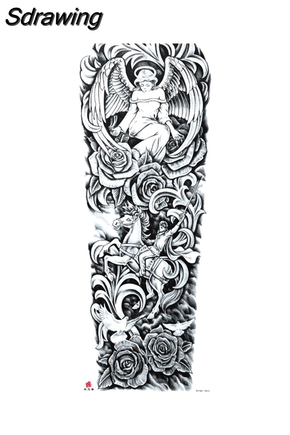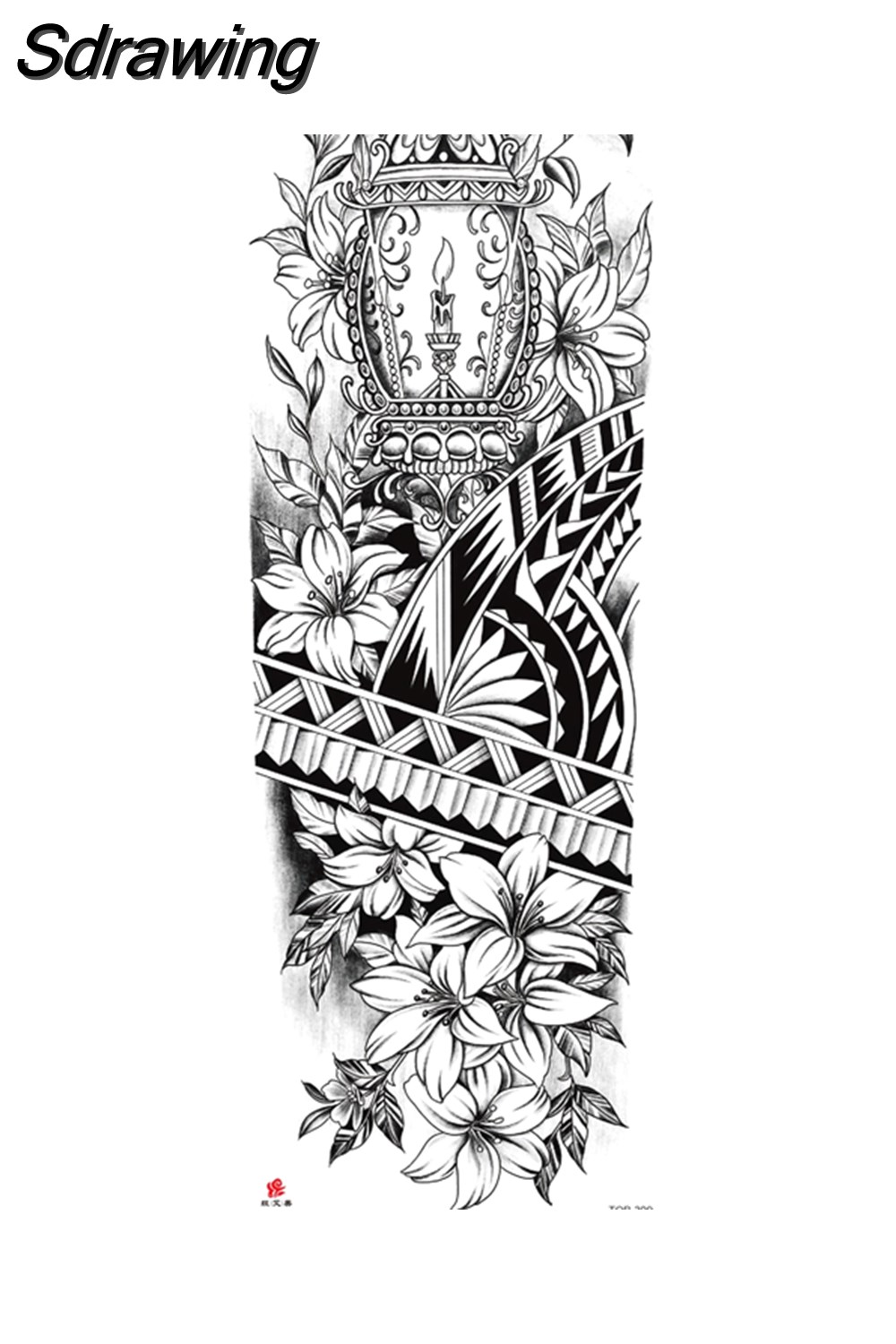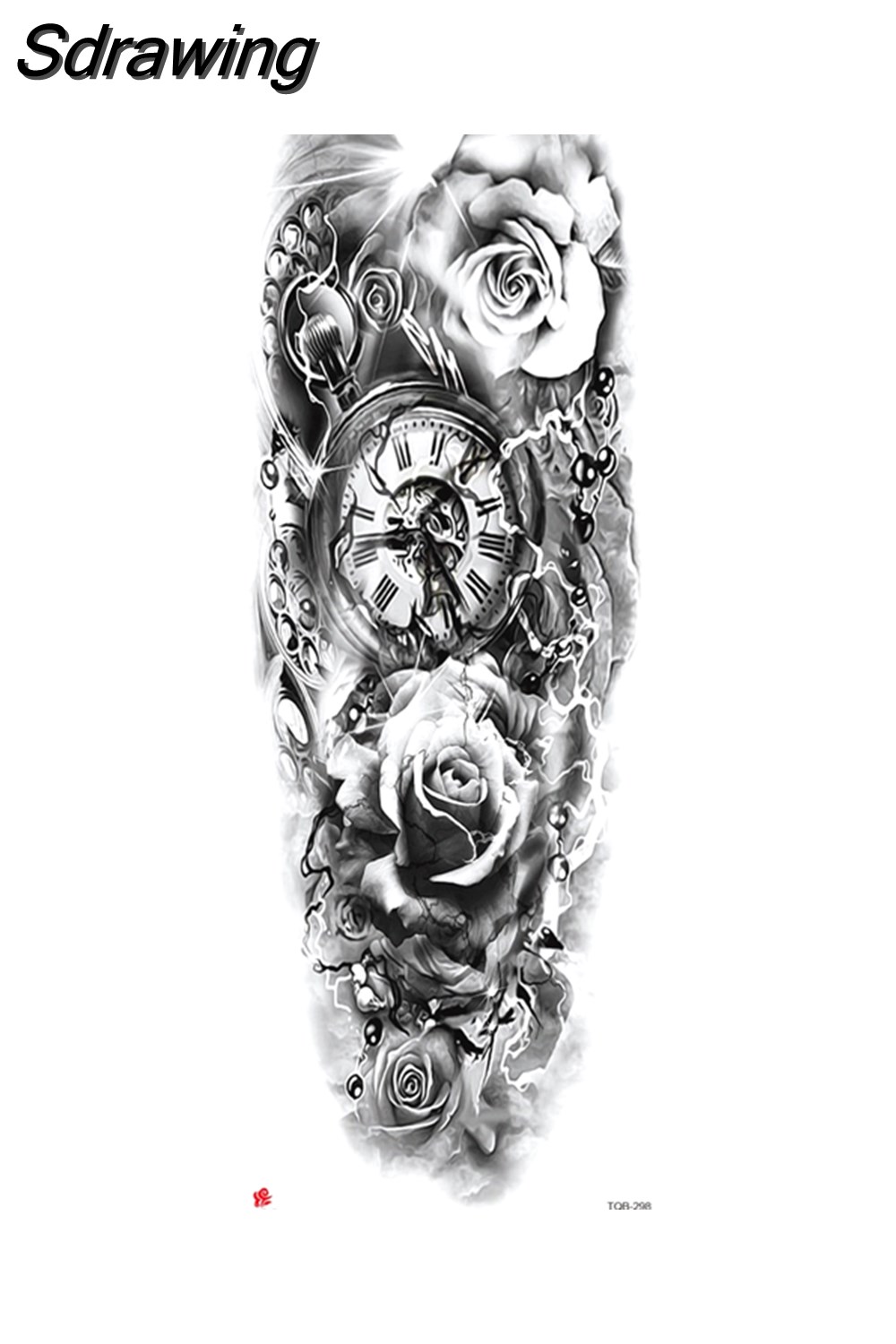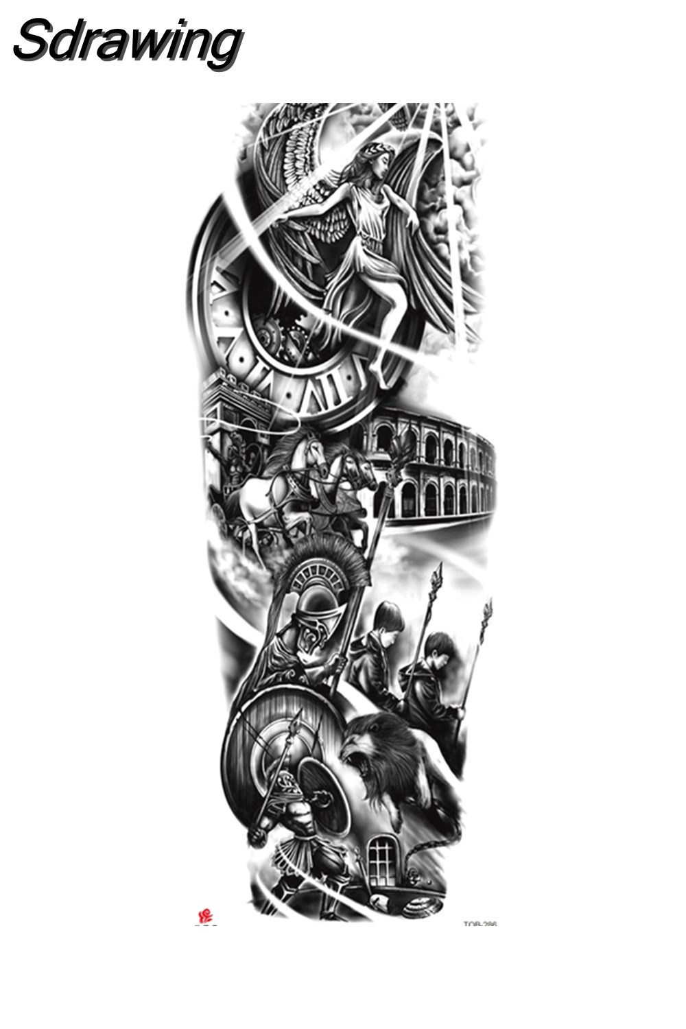 Sdrawing Arm Temporary Tattoo Wolf Lion Fish Horns Geometric Man Body Leg Rose Flower Phoenix Waterproof Sticker Cool Women Tatoo 715-0
