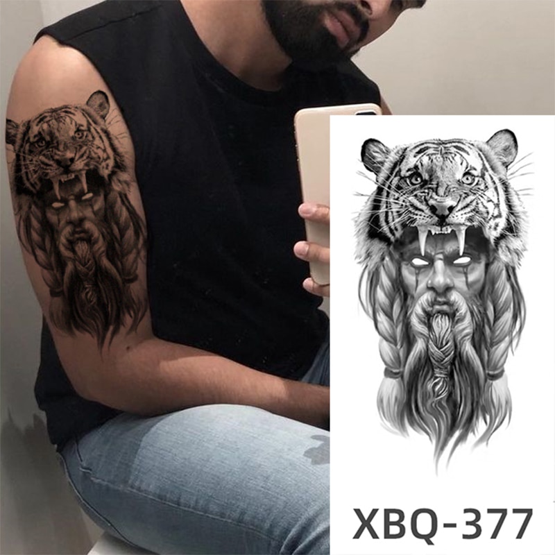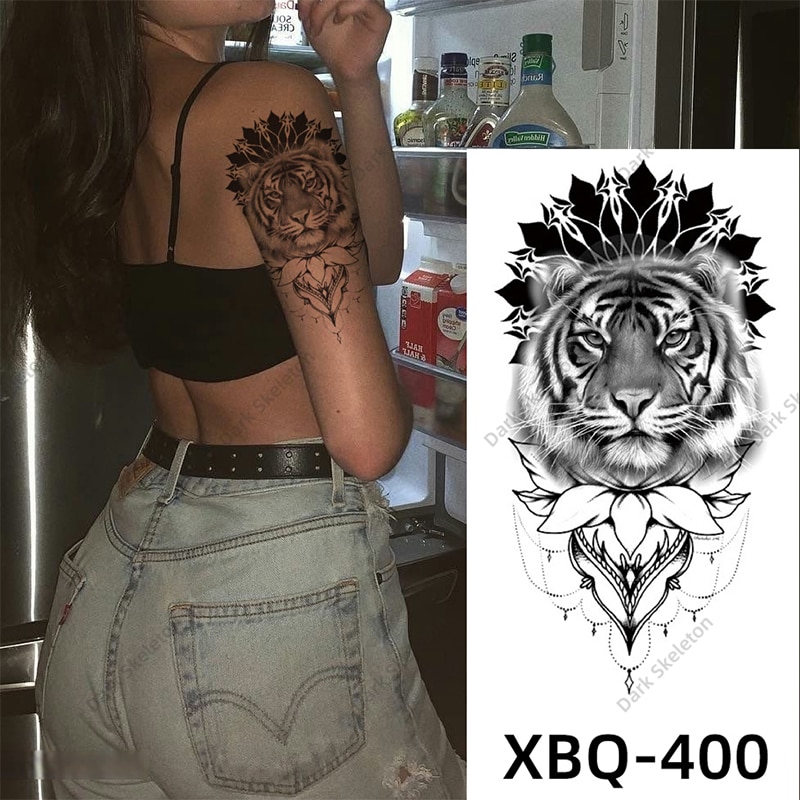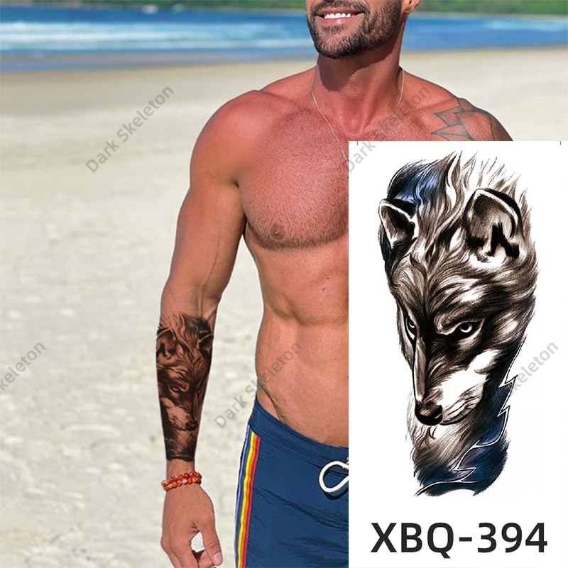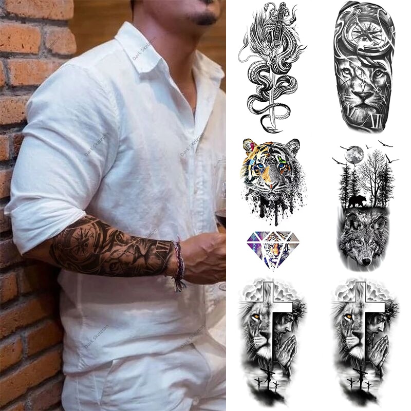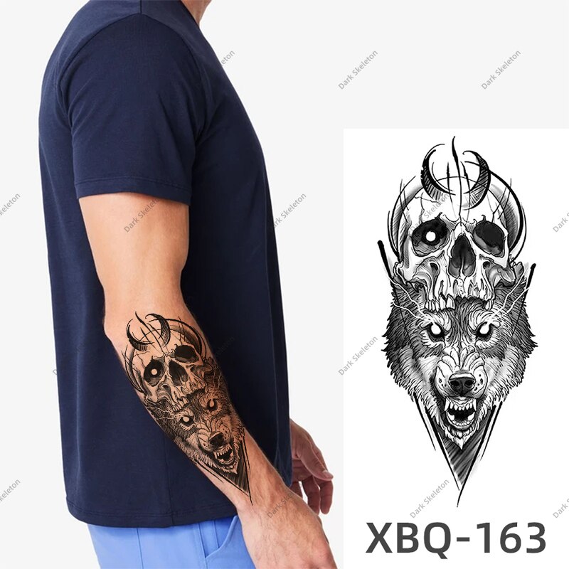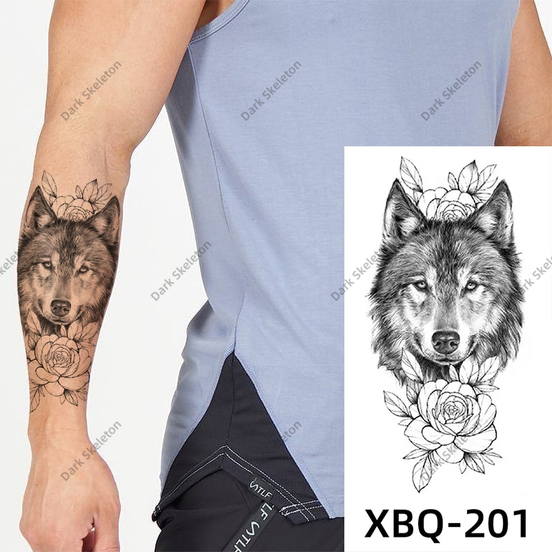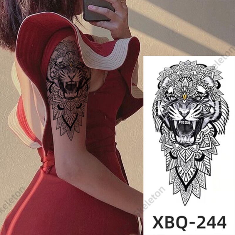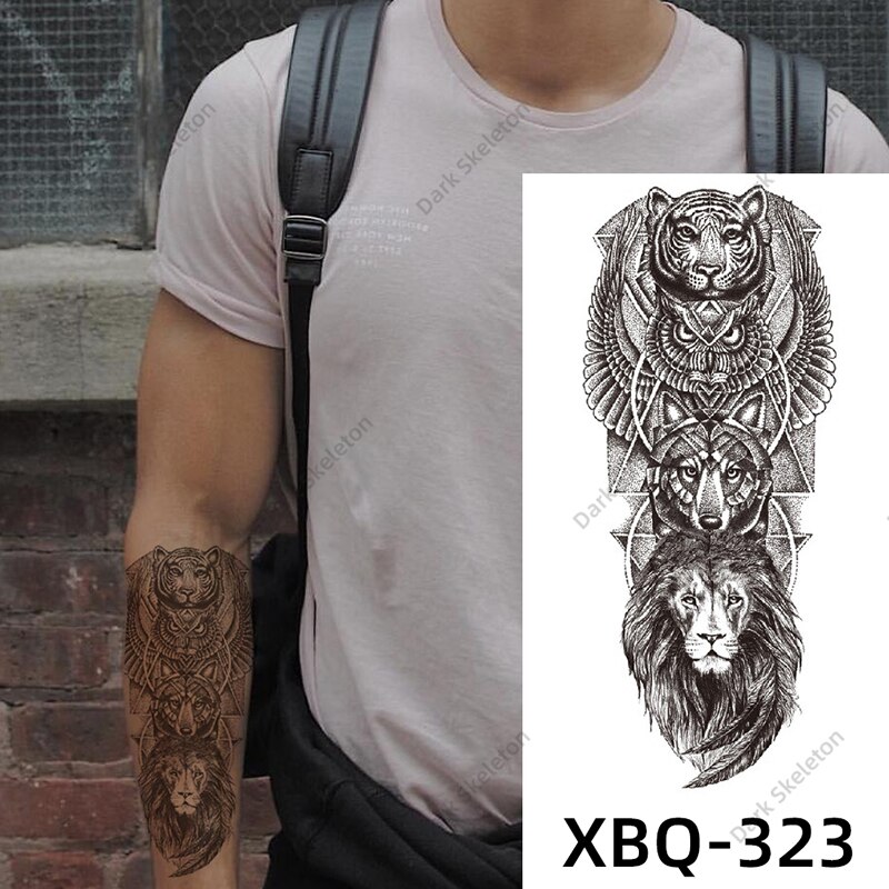 Sdrawing Black Forest Tattoo Sticker For Men Women Children Tiger Wolf Death Temporary Tattoo Fake Henna Skeleton King Animal Tatoo