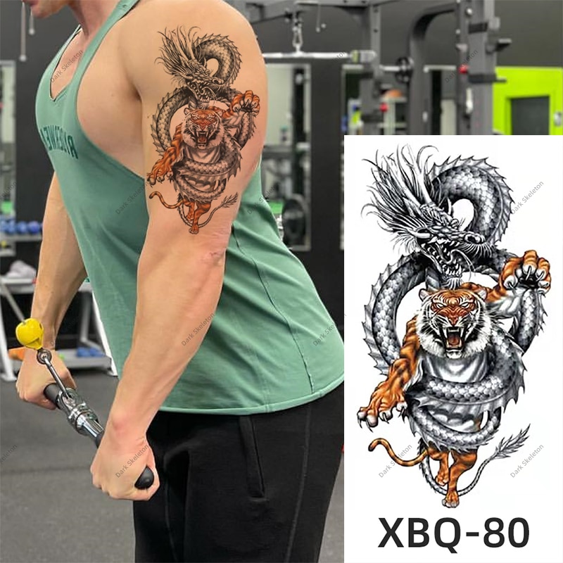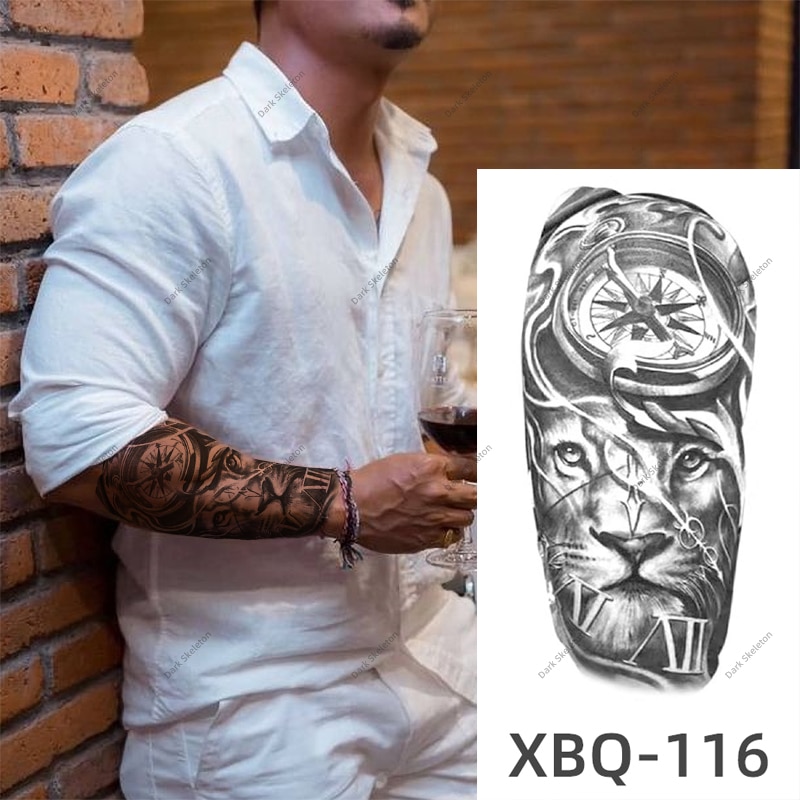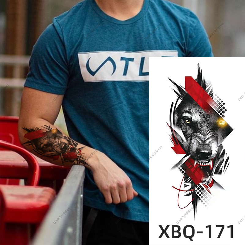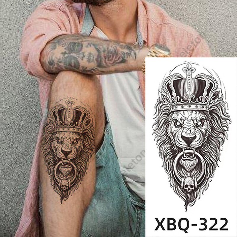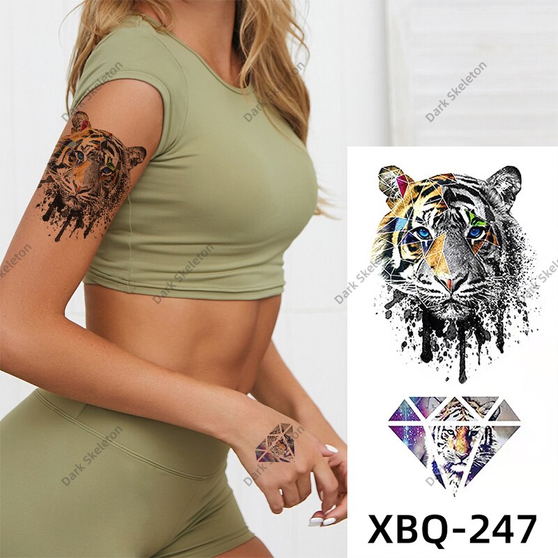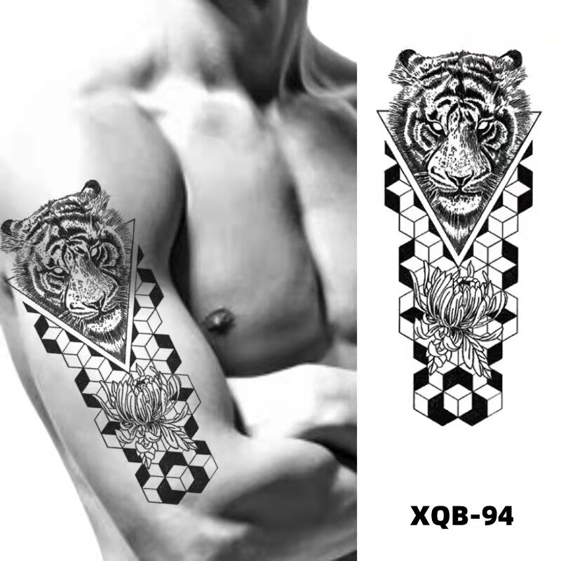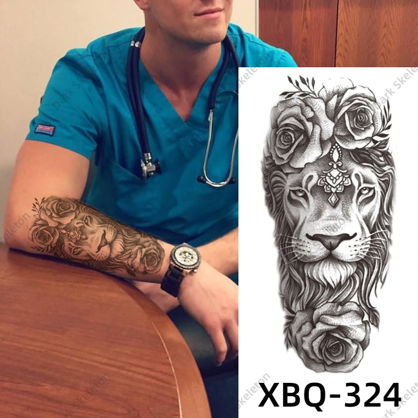 Sdrawing Black Forest Tattoo Sticker For Men Women Children Tiger Wolf Death Temporary Tattoo Fake Henna Skeleton King Animal Tatoo