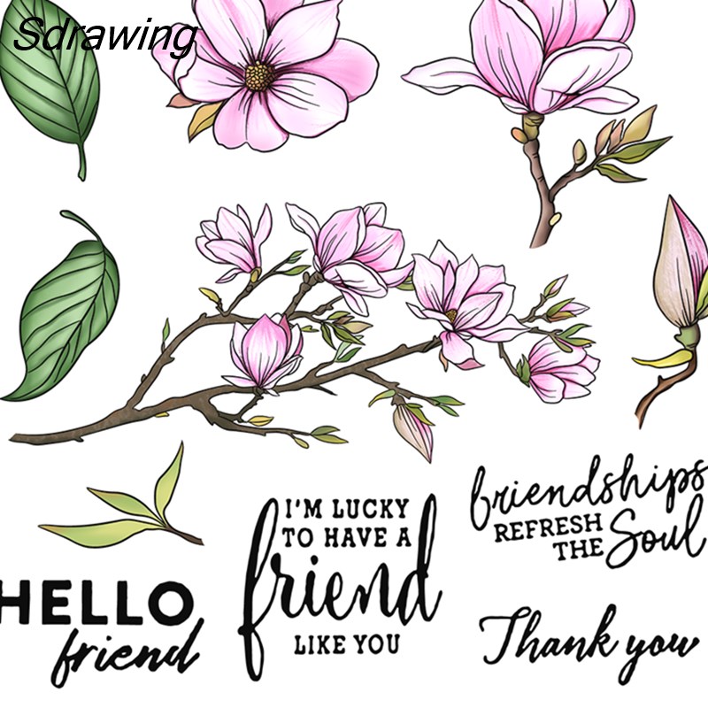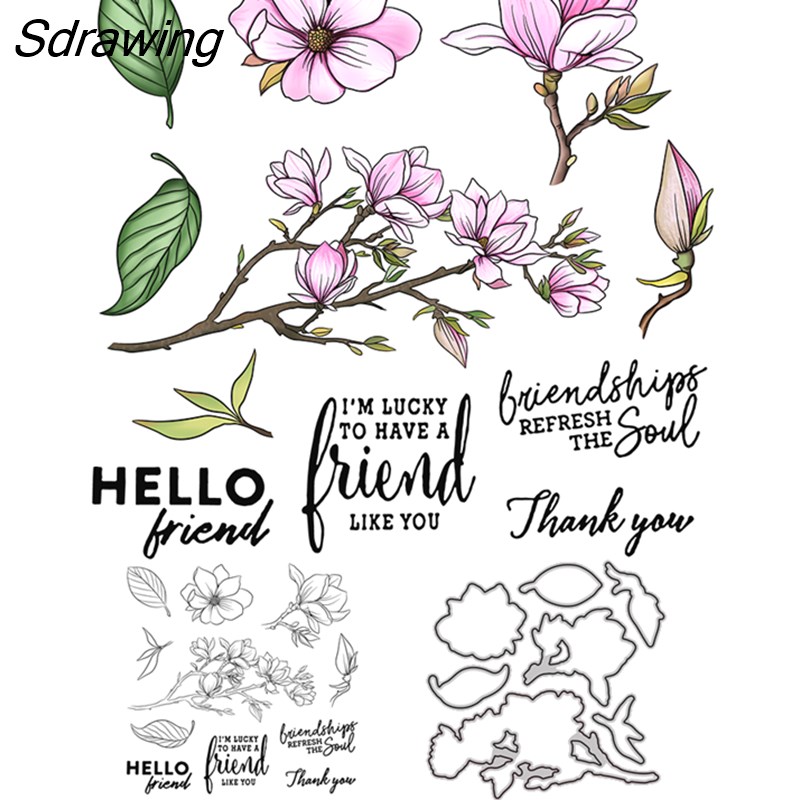 Sdrawing Blooming Magnolia Cutting Dies Clear Stamp DIY Scrapbooking Dies Stamps For Love Cards Mother's Day Gifts Decor