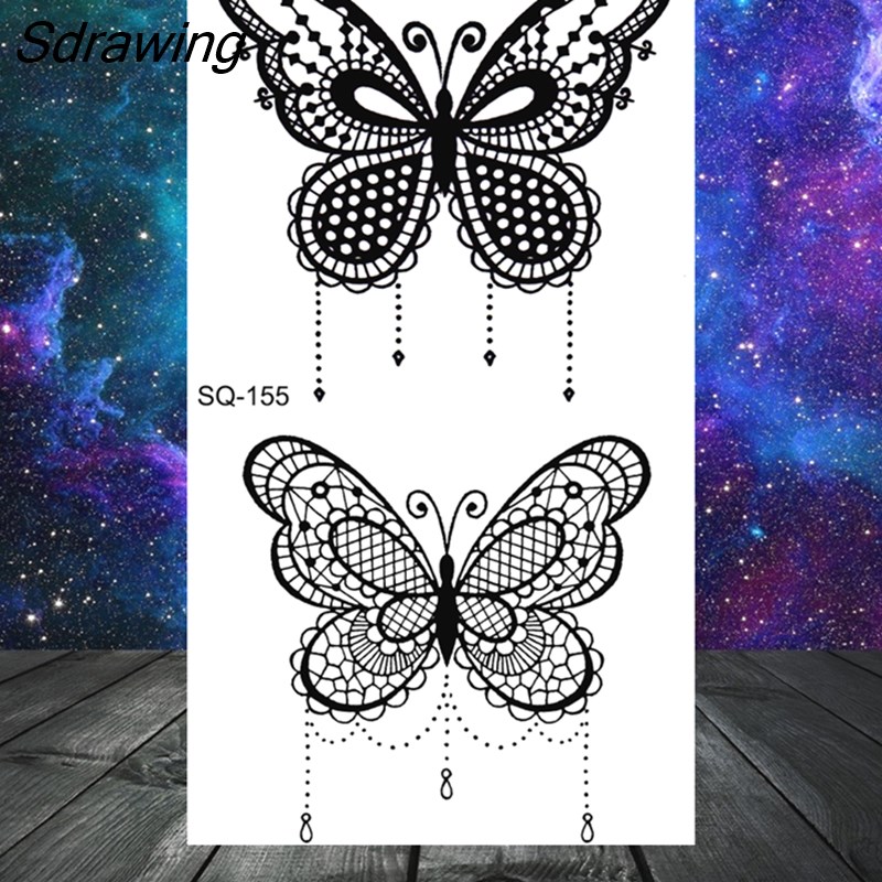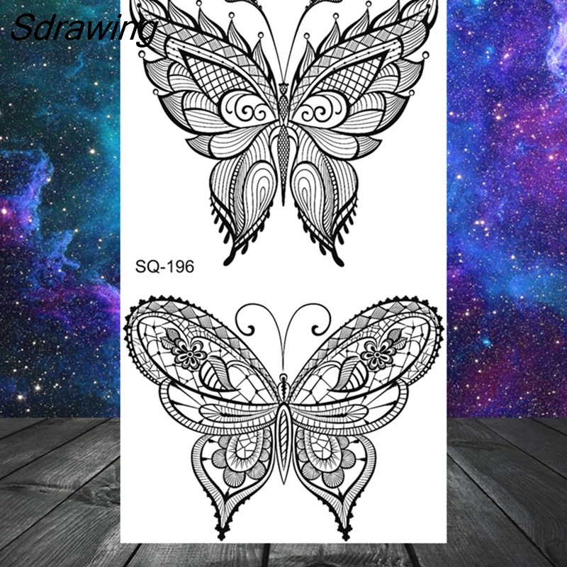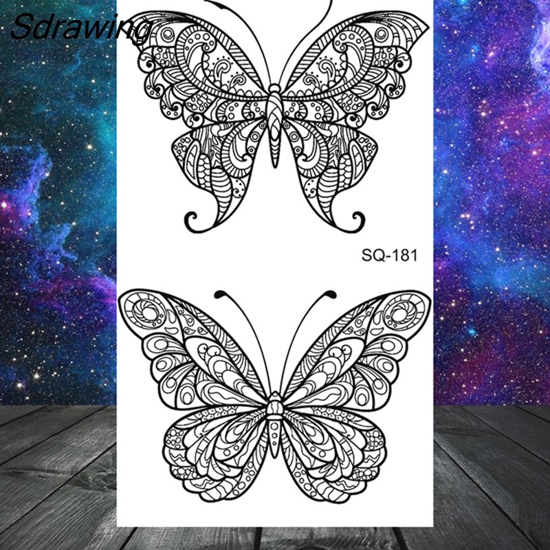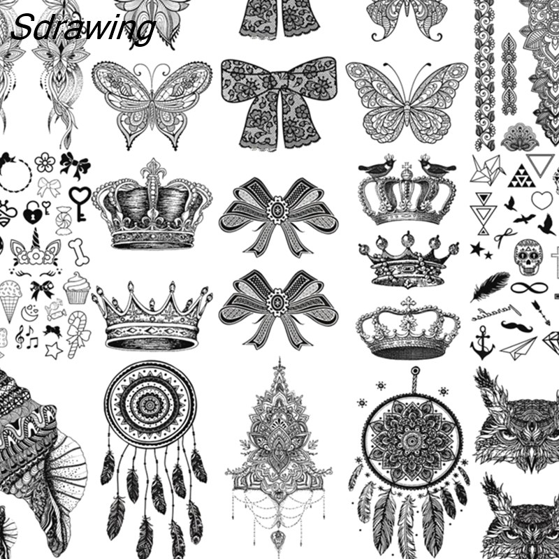 Sdrawing Bow Henna Crown Temporary Tattoos For Women Adult Girl Kids Butterfly Dream Catcher Fake Tattoo Neck Arm Hands Small Tatoo