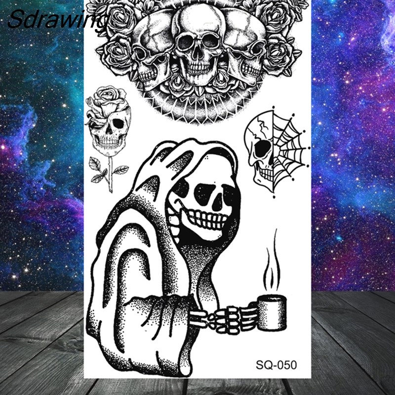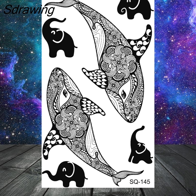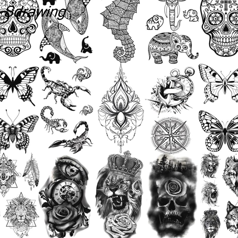 Sdrawing Butterfly Anchor Lion Wolf Temporary Tattoos For Women Men Skeleton Whale Elephant Fake Tattoo Neck Arm Hands Small Tatoo