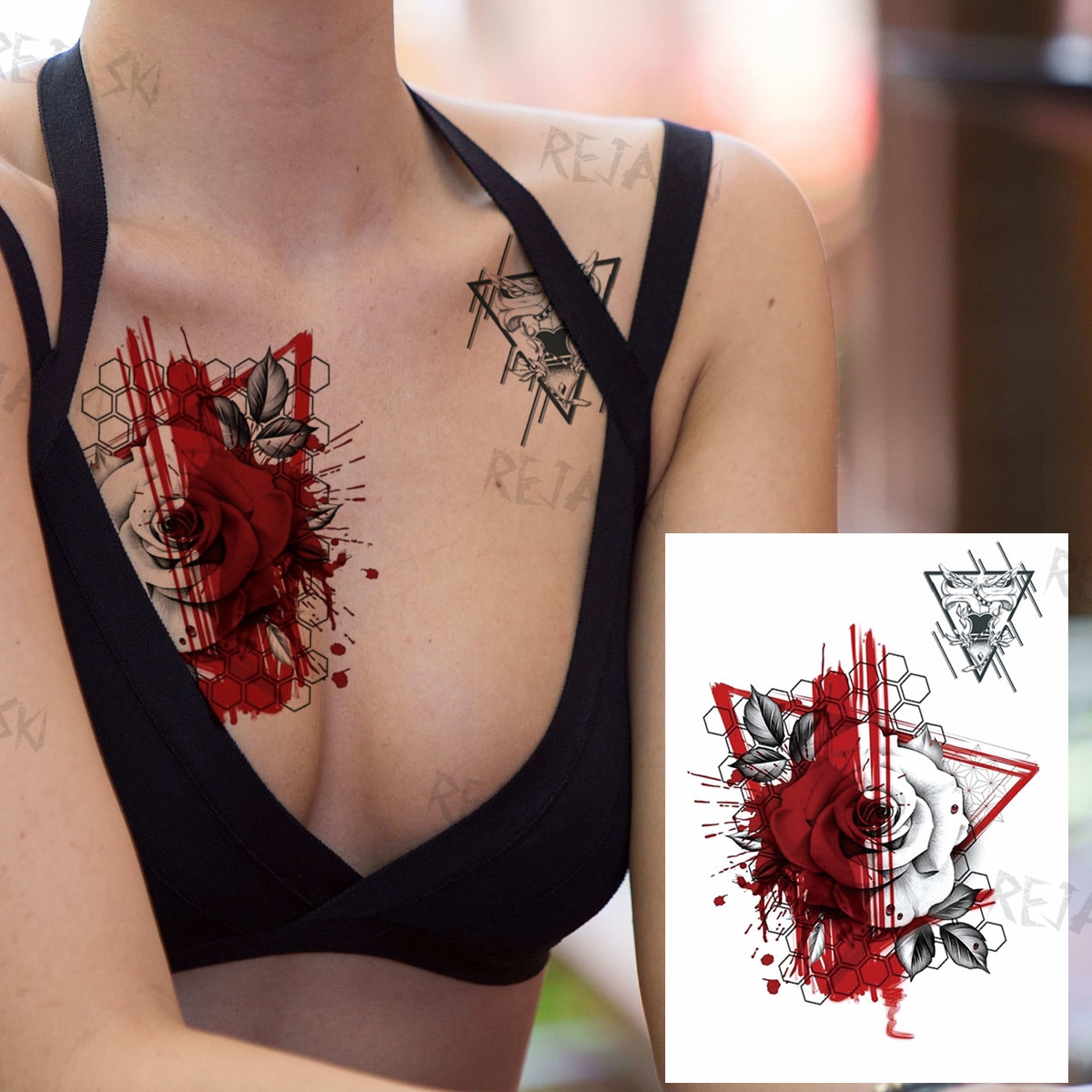 Sdrawing Butterfly Rose Flower Temporary Tattoos For Women Men Leopard Reindeer Henna Clown Fake Tatoos Waterproof Tattoo Stickers