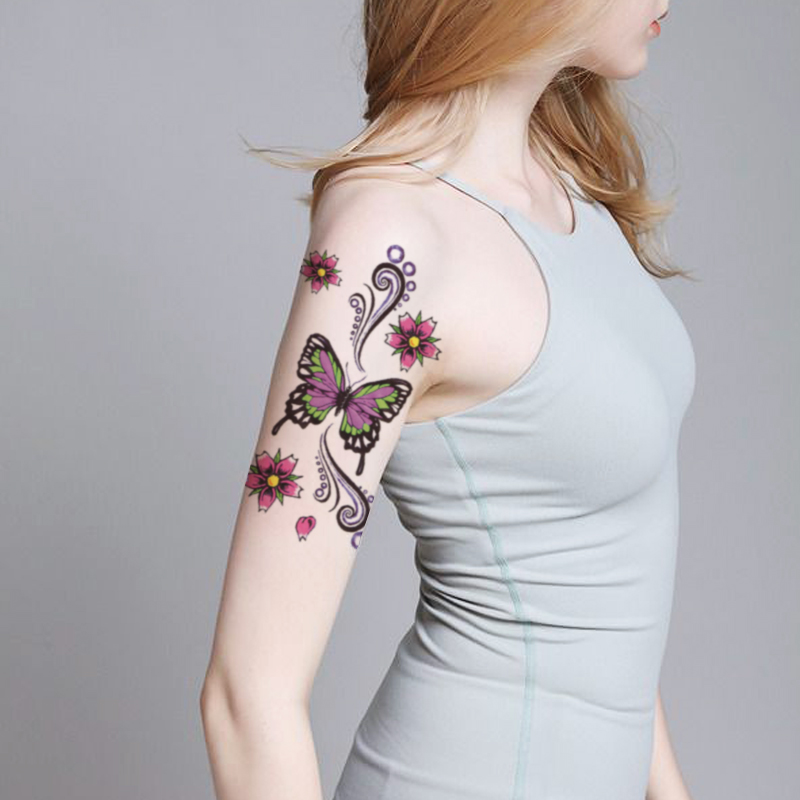 Sdrawing Butterfly Waterproof Temporary Tattoo Sticker Color Flower Totem Fake Tattoos Flash Tatoos Arm Body Art for Women Men