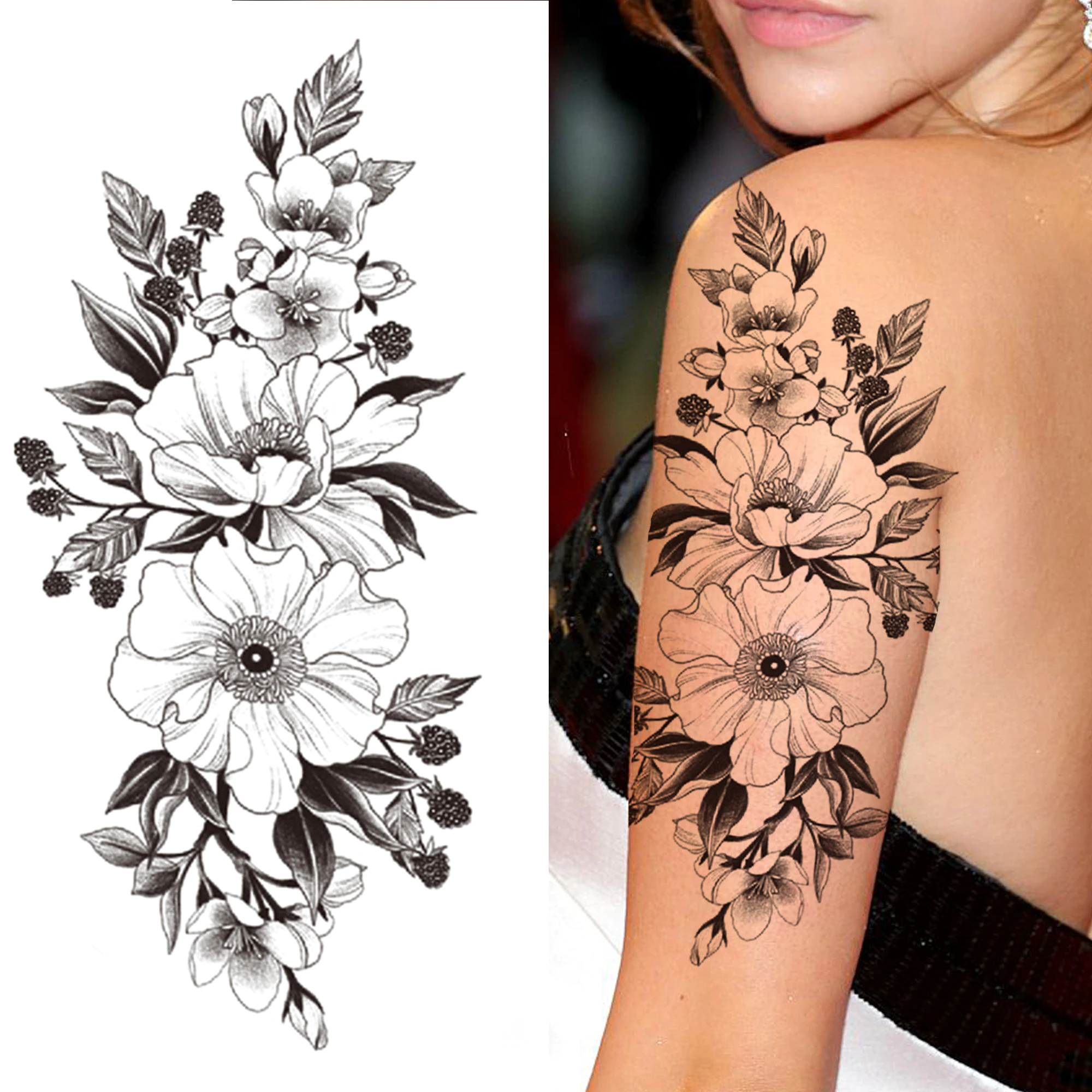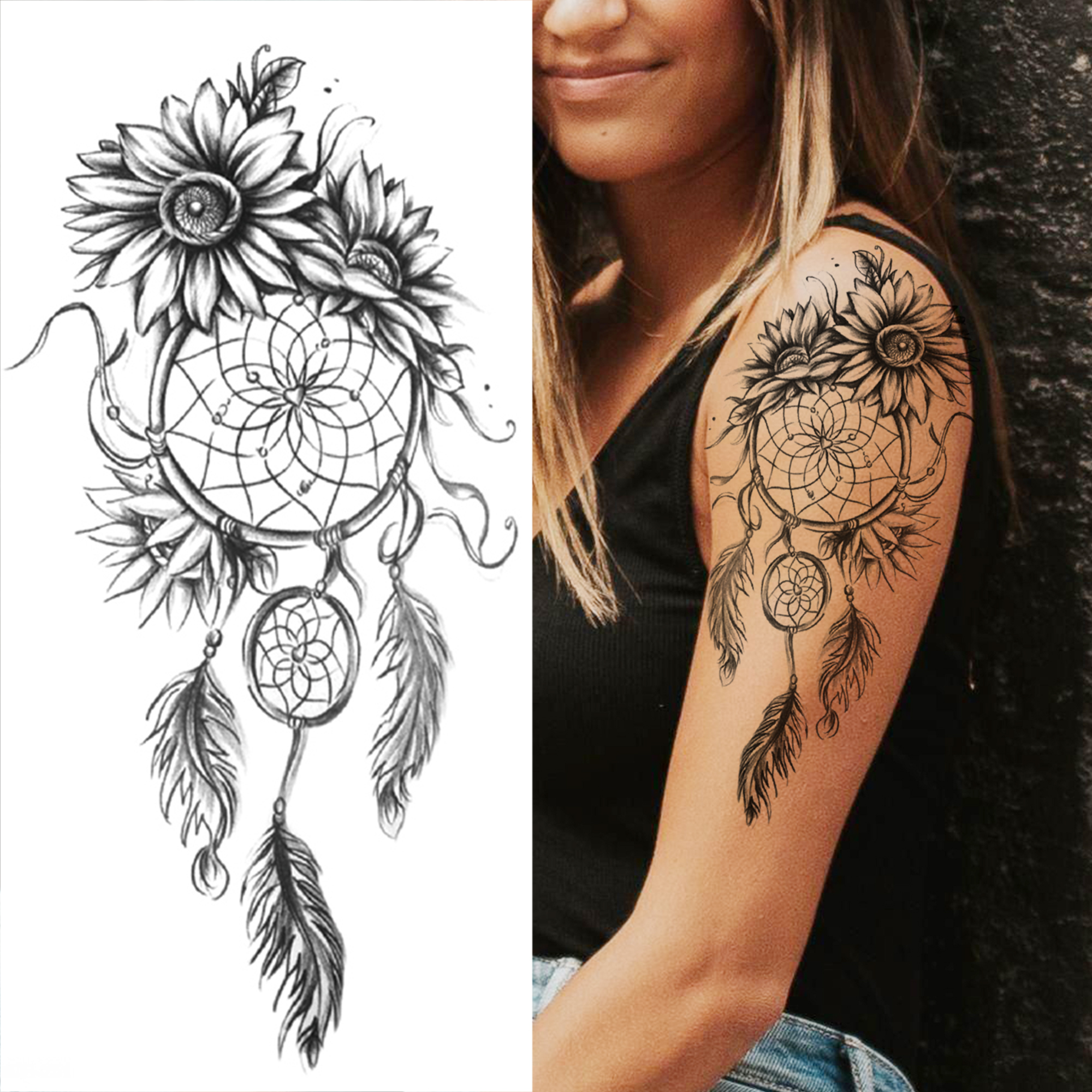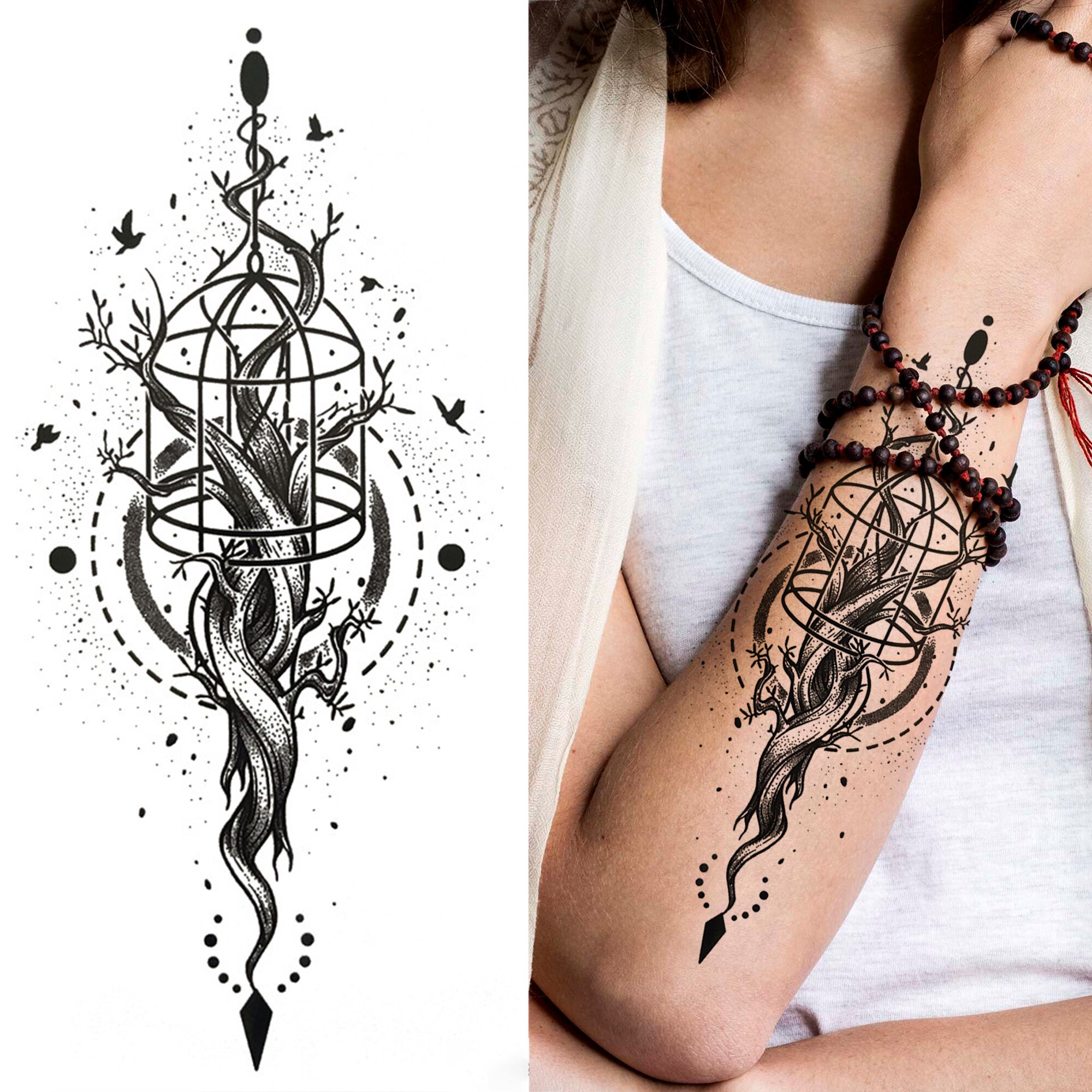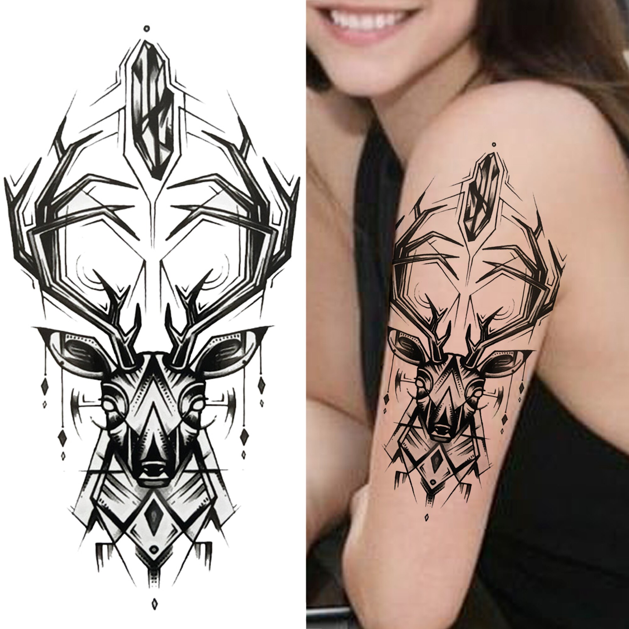 Sdrawing Compass Lion Rose Temporary Tattoo For Men Adults Realistic Fake Tiger Crown Cross Tattoo Sticker Thigh Half Sleeve Tatoo