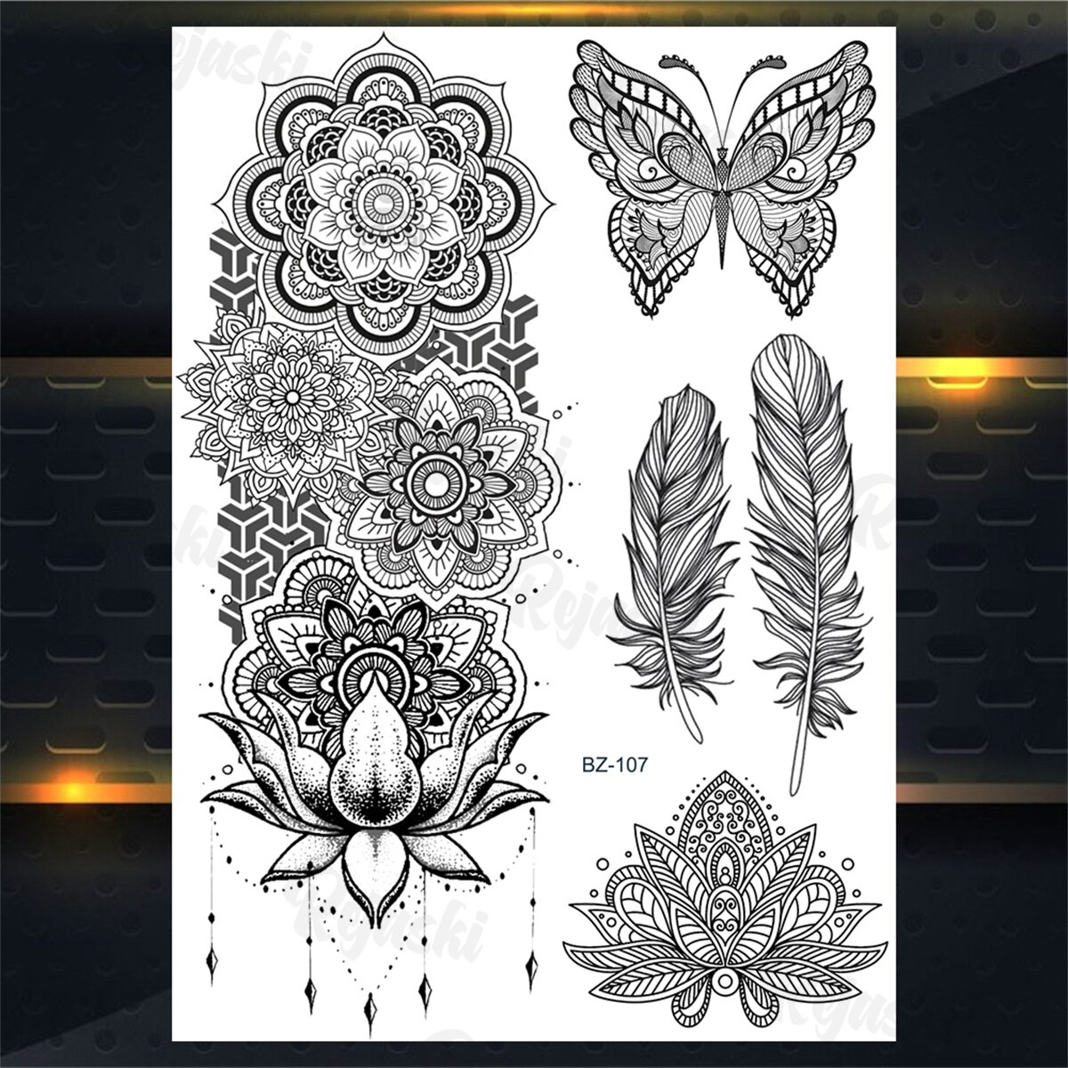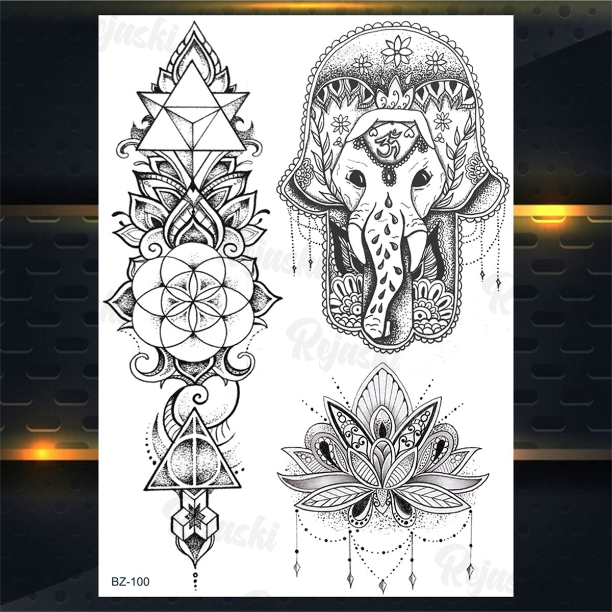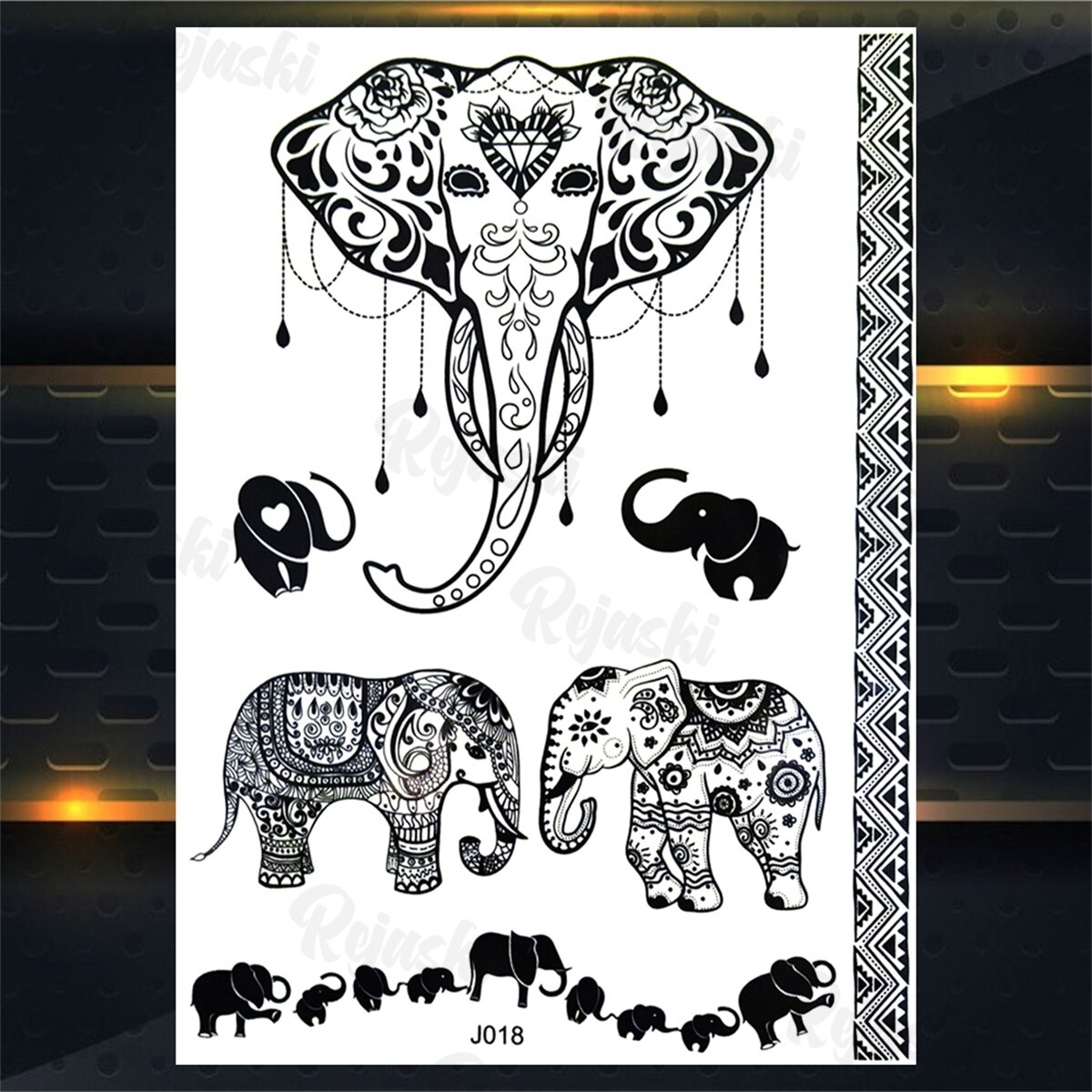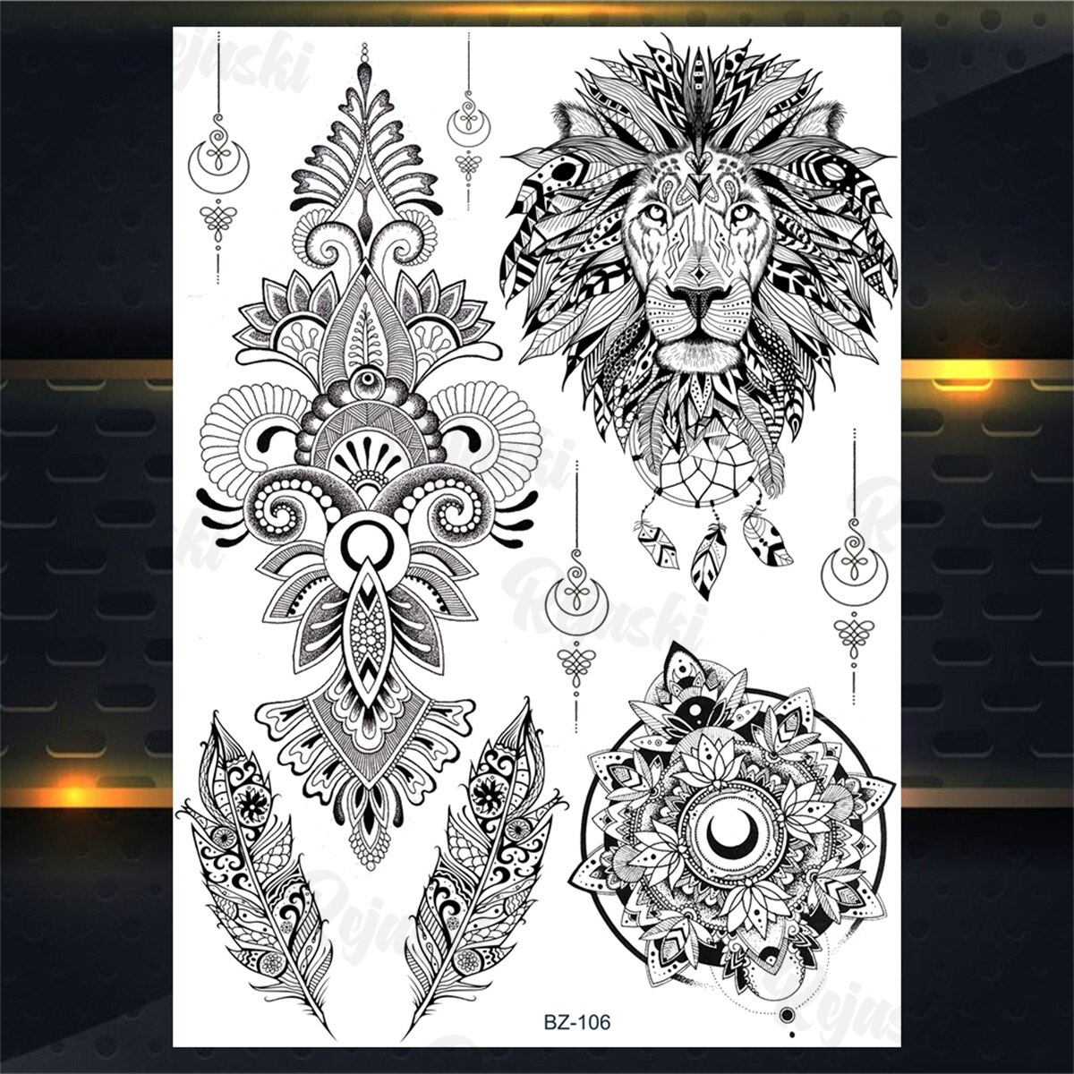 Sdrawing Elephant Pendant Temporary Tattoos For Women Men Lion Butterfly Snake Feather Fake Tattoo Sticker Glamour Back Body Tatoos