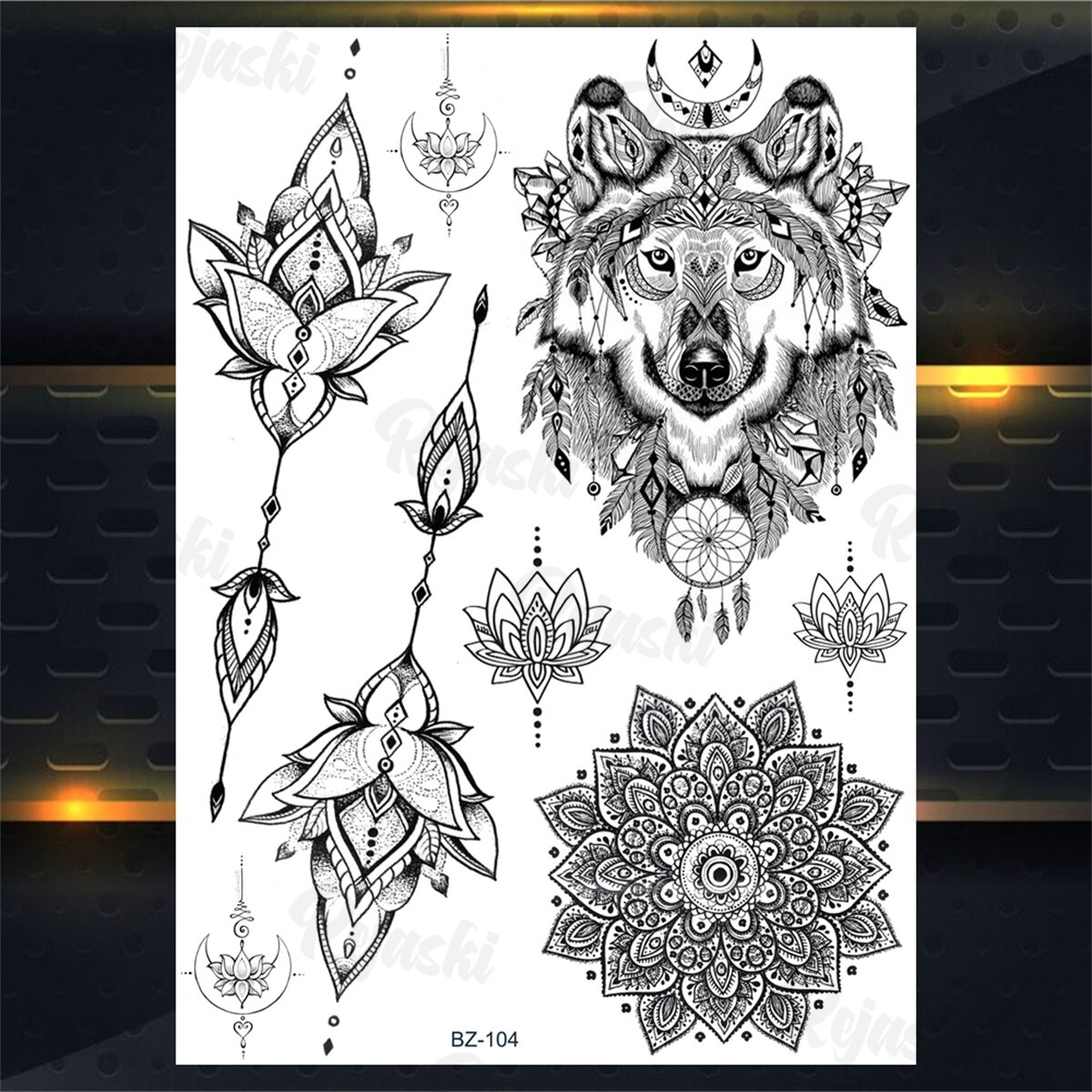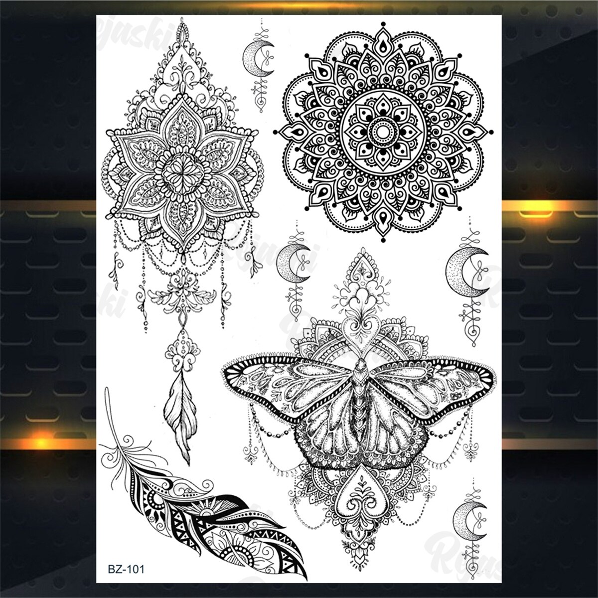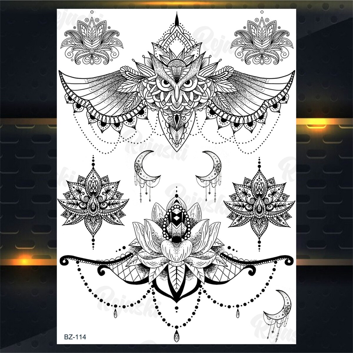 Sdrawing Elephant Pendant Temporary Tattoos For Women Men Lion Butterfly Snake Feather Fake Tattoo Sticker Glamour Back Body Tatoos