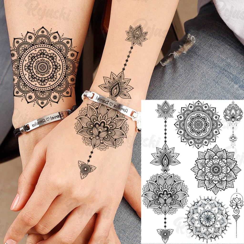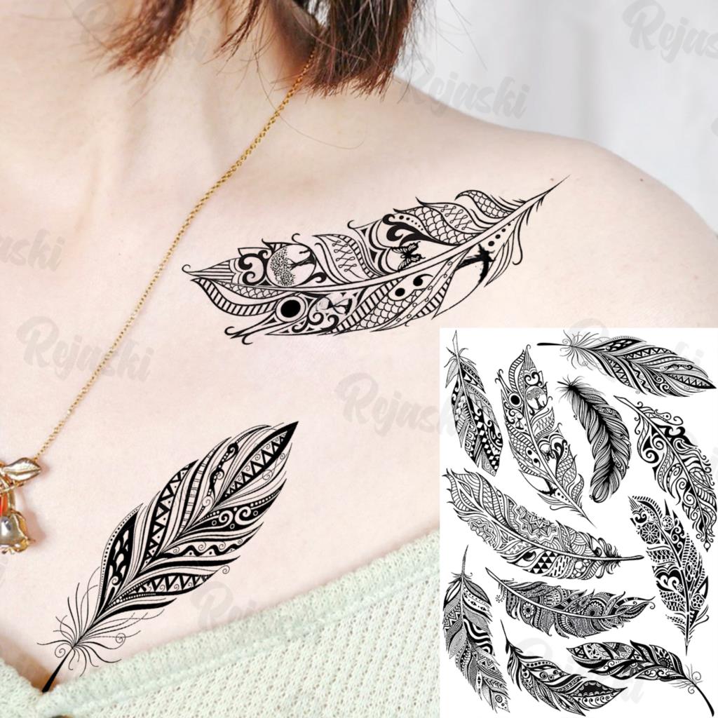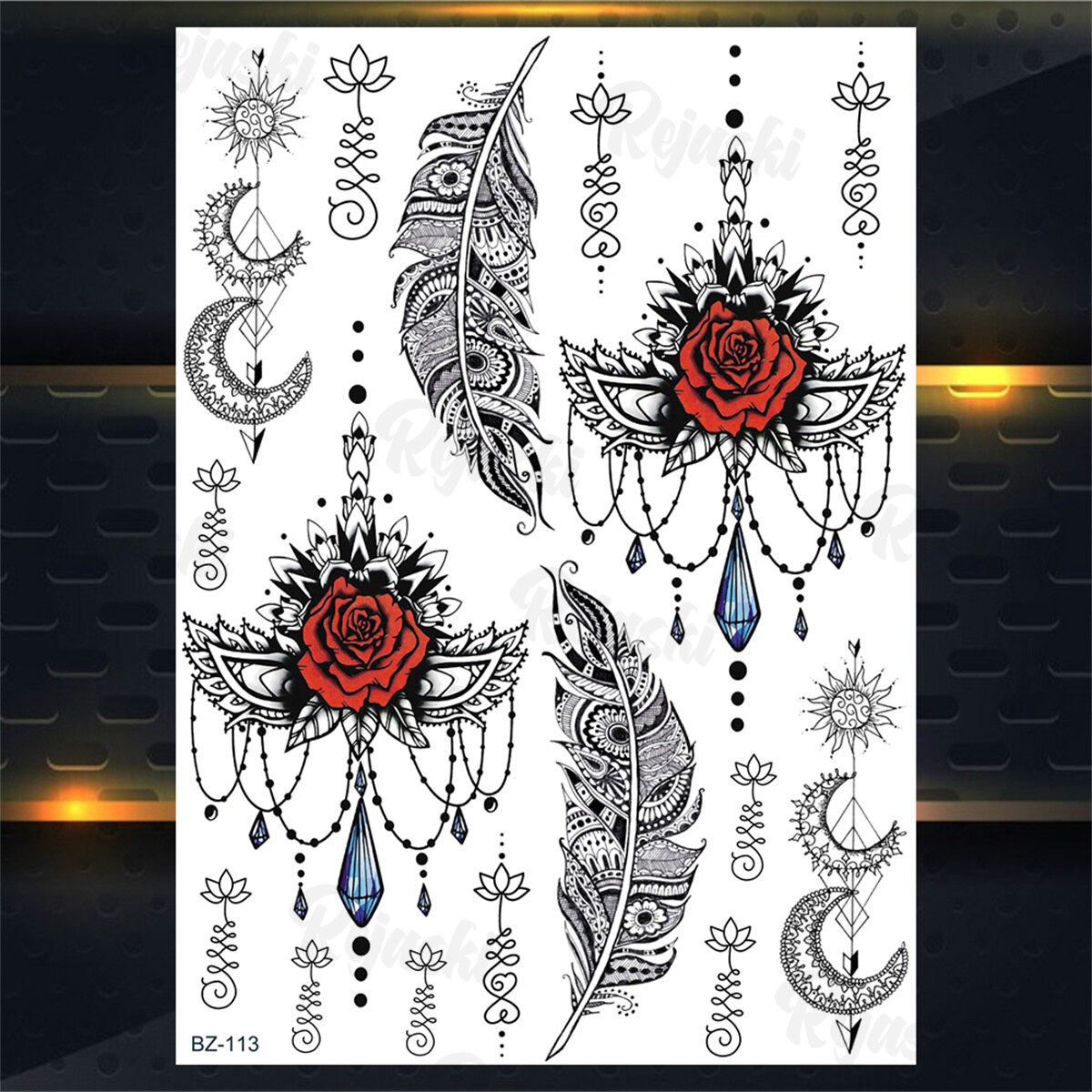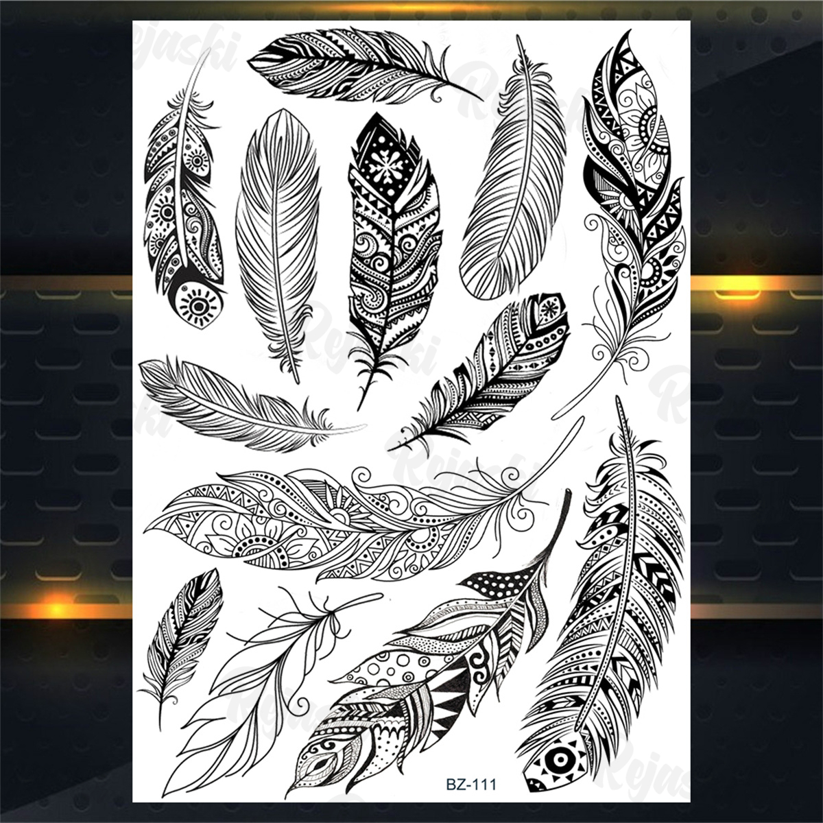 Sdrawing Elephant Pendant Temporary Tattoos For Women Men Lion Butterfly Snake Feather Fake Tattoo Sticker Glamour Back Body Tatoos