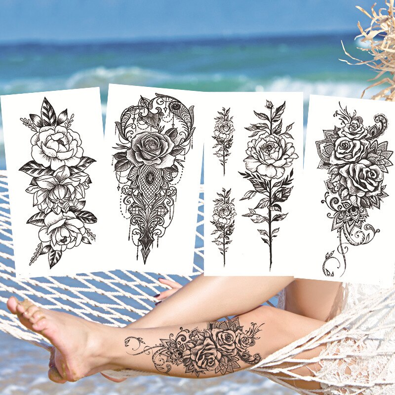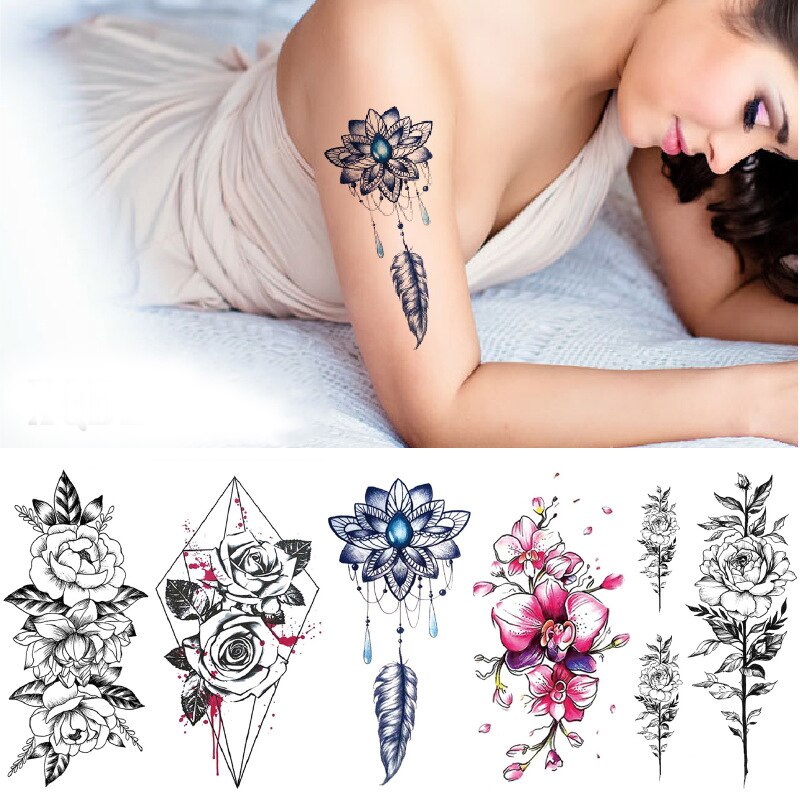 Sdrawing Flower Fake Tattoo Sticker for Women Birds Peony Temporary Tattoos DIY Water Transfer Tatoos Girls Tattoo for Men Sleeve