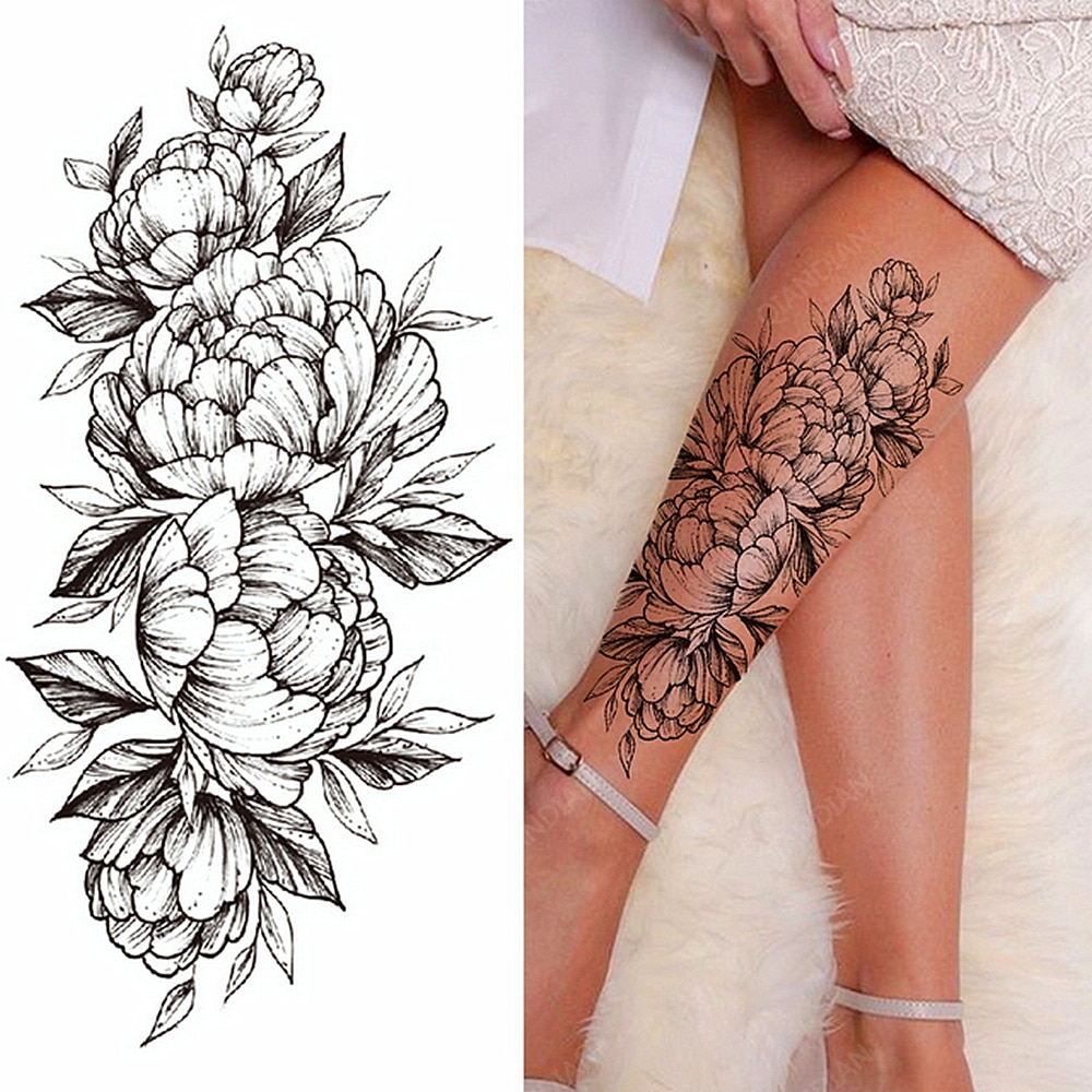 Sdrawing Flower Rose Women Waterproof Temporary Tattoos Fake Stickers Body Arm Cool Art Big Hipster Sexy Colorful Skeleton Paws