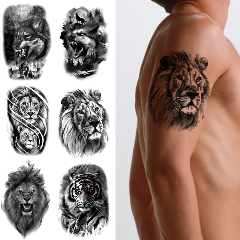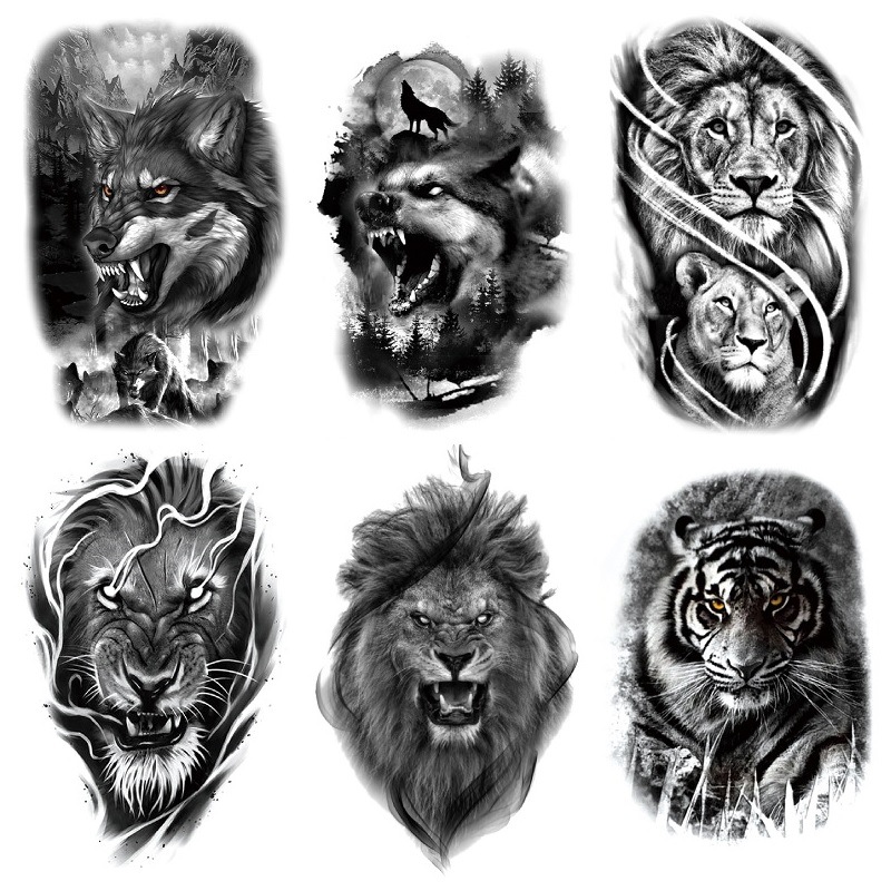 Sdrawing Forest King Animal Tattoo Sticker for Men Tiger Skull Skeleton Fake Tattoo for Women Wolf Tattoo Temporary Waterproof