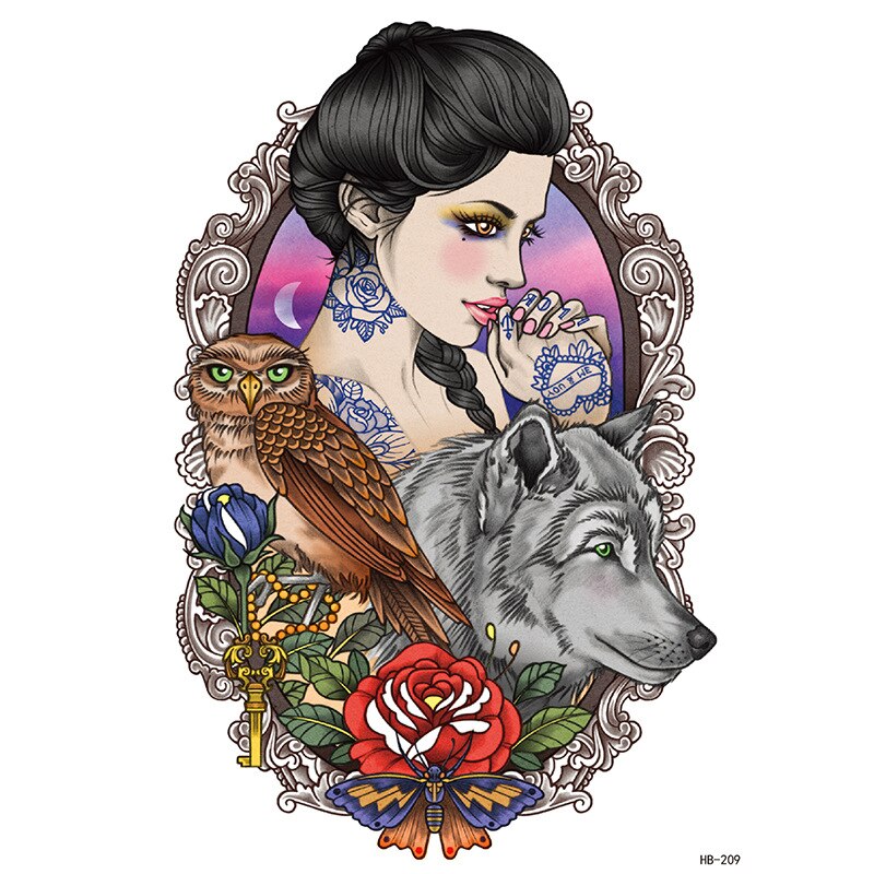 Sdrawing Forest Tattoo Sticker for Men Tiger Wolf Tattoo Death Skull Temporari Tattoo Skeleton Naked Girls Fake Tatoo for Women