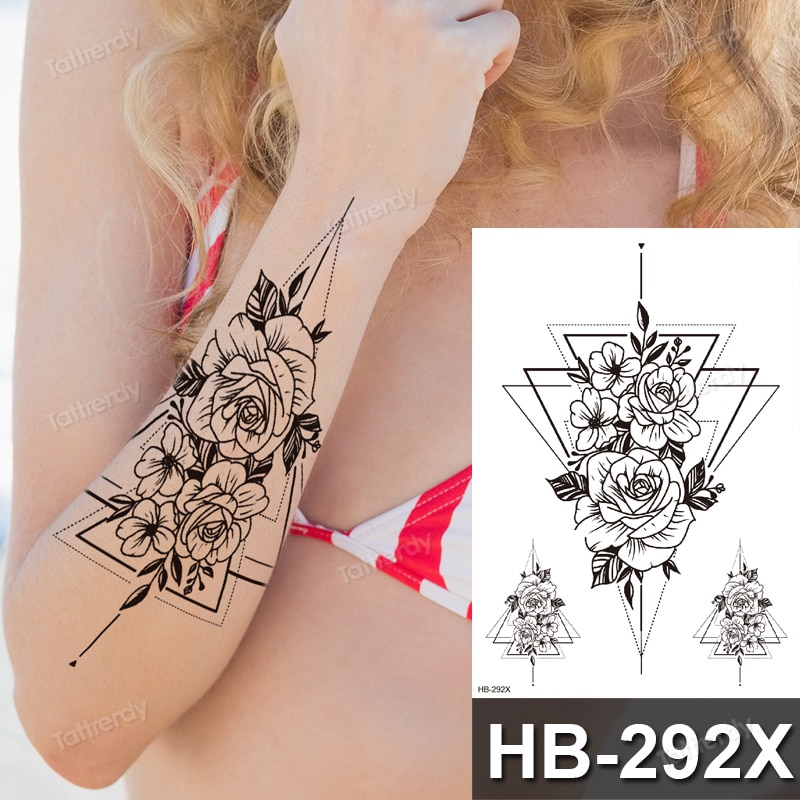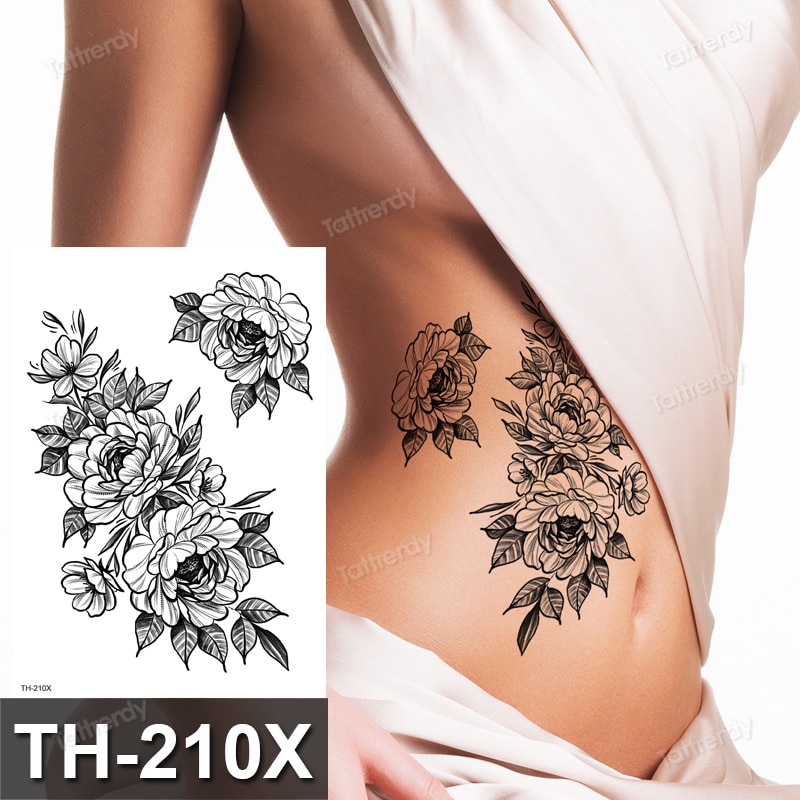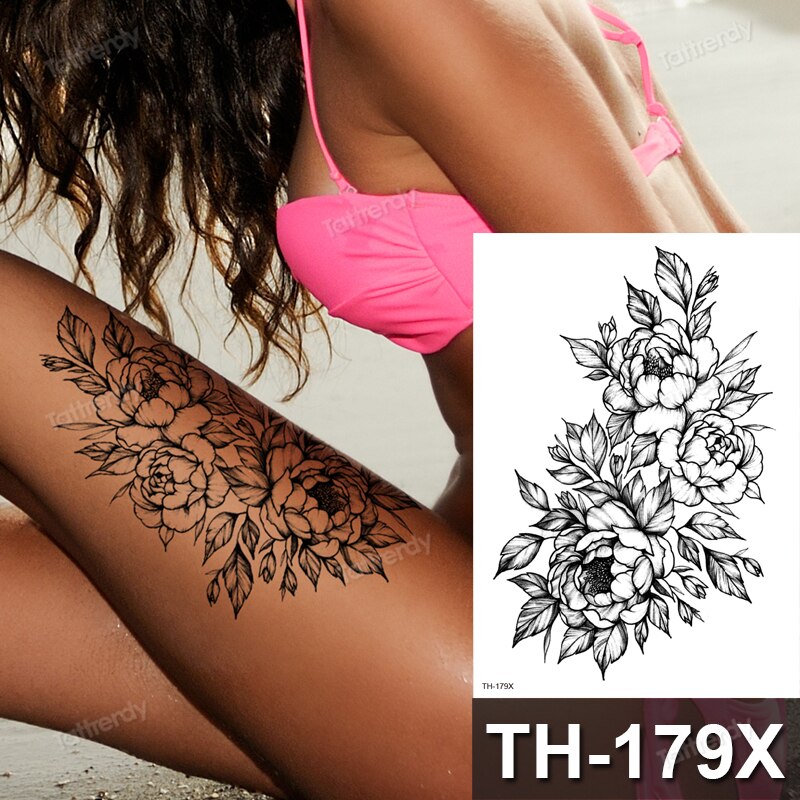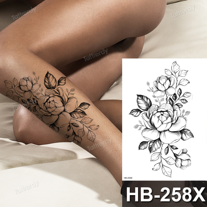 Sdrawing henna black lace mandala flowers sexy waterproof temporary tattoo for women thigh body tattoo sketch flower rose peony big