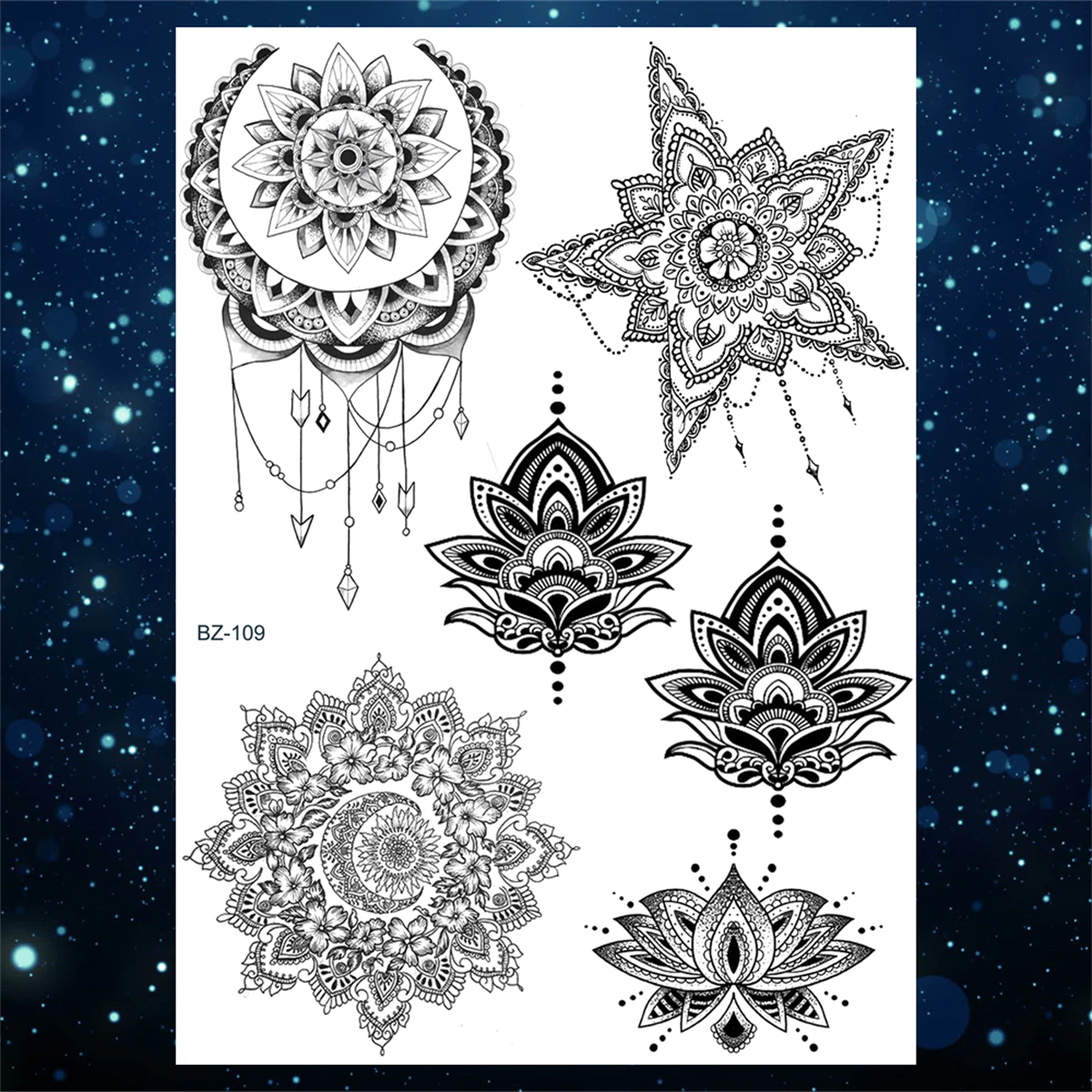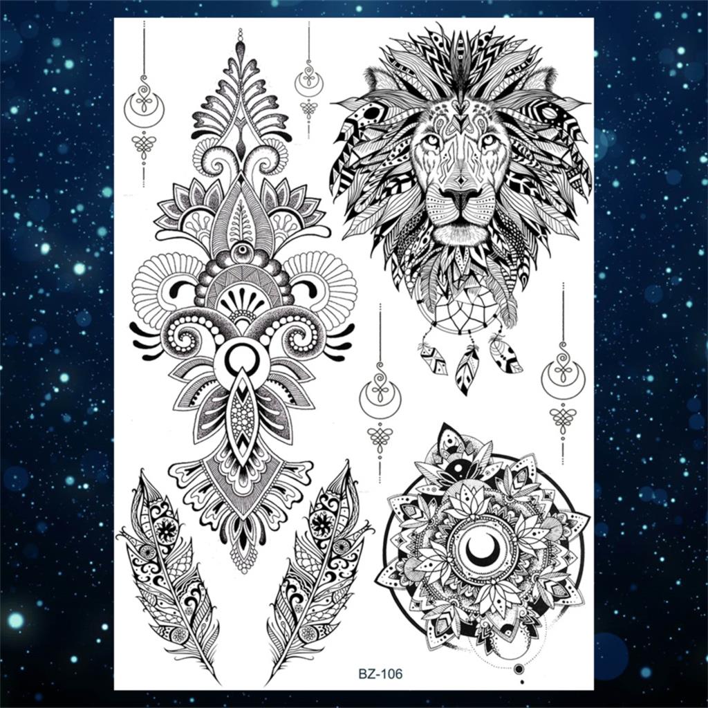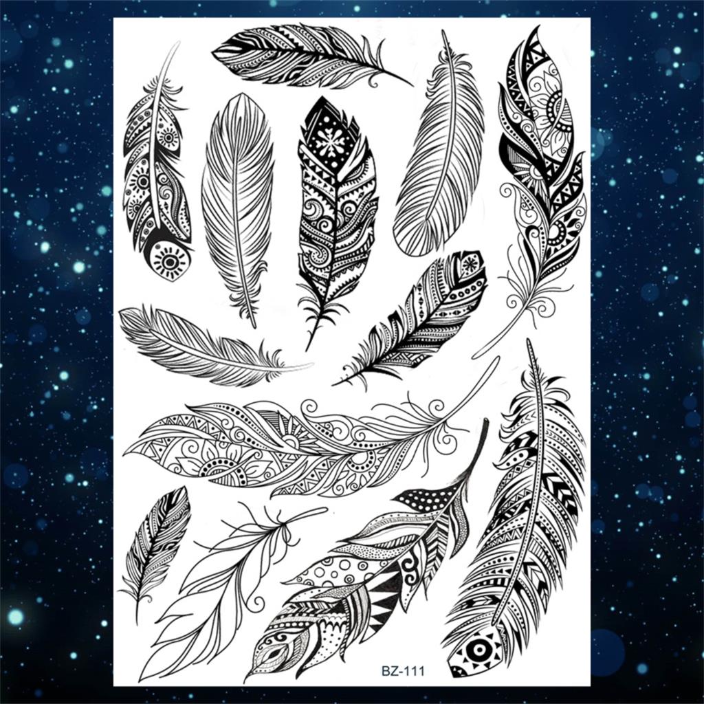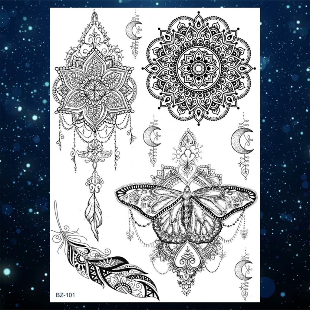 Sdrawing Henna Temporary Tattoos For Women Girls Feather Butterfly DreamCatcher Fake Gem Tattoo Sticker Chest Arm Tatoos Tribal