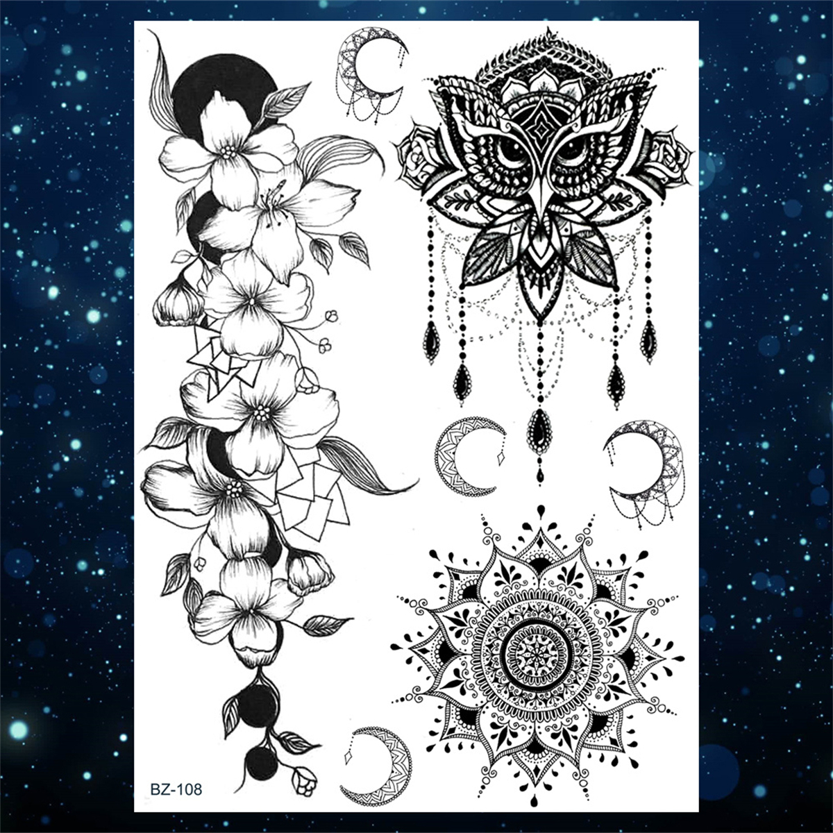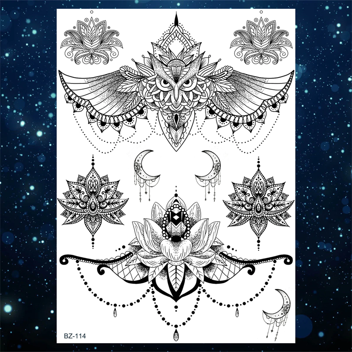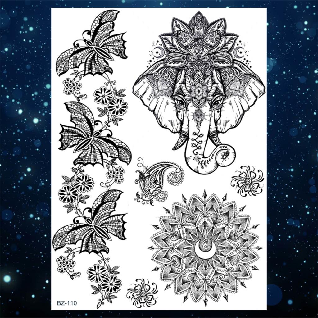 Sdrawing Henna Temporary Tattoos For Women Girls Feather Butterfly DreamCatcher Fake Gem Tattoo Sticker Chest Arm Tatoos Tribal
