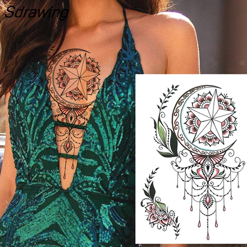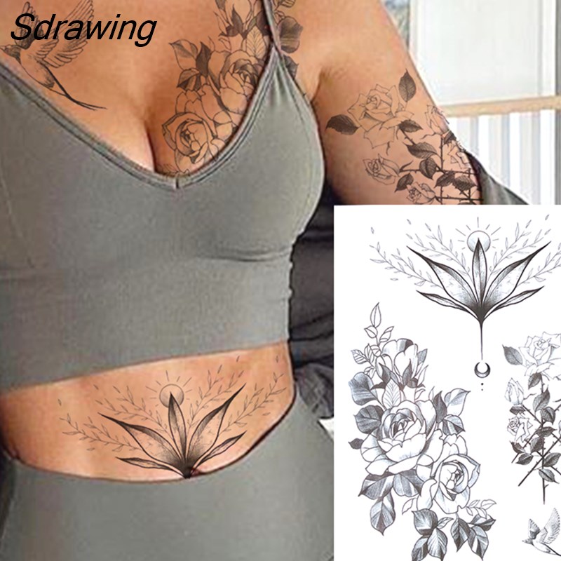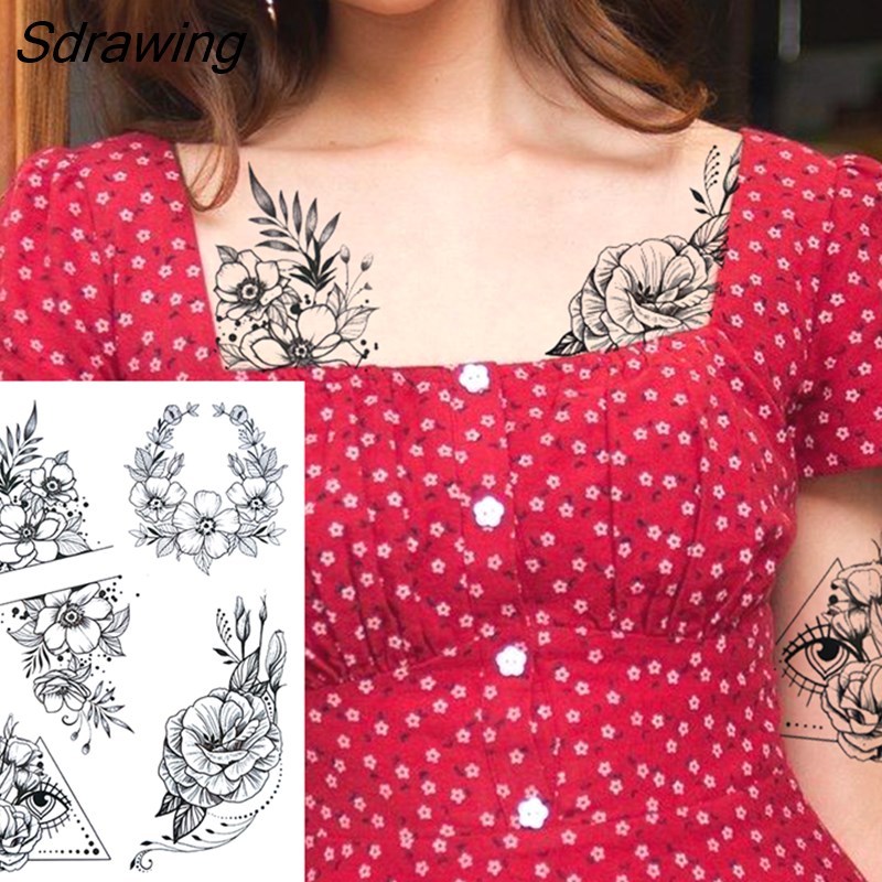 Sdrawing Lion Dahlia Temporary Tattoos For Women Adult Realistic Tiger Wolf Reindeer Snake Bird Fake Tattoo Sticker Washable Tatoos