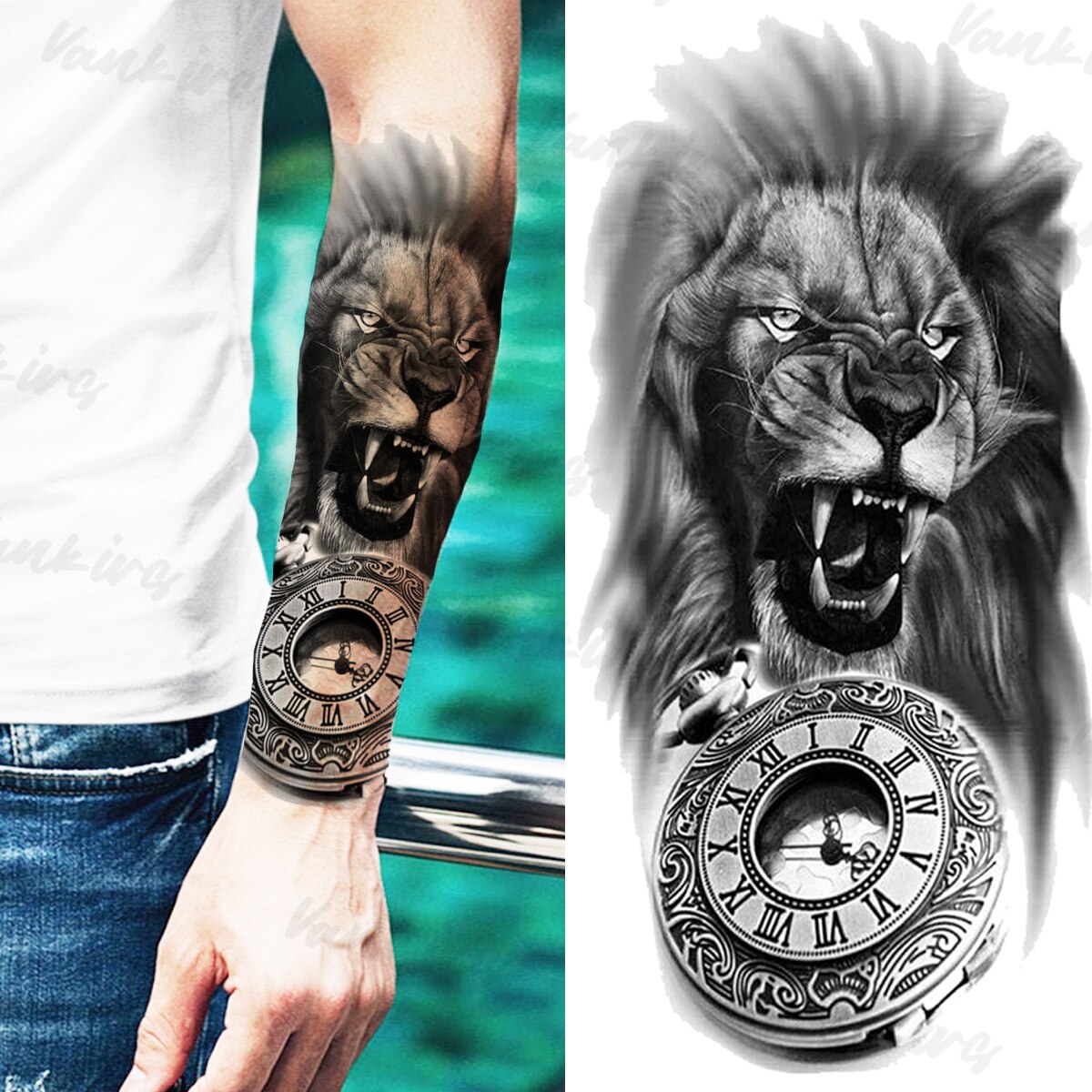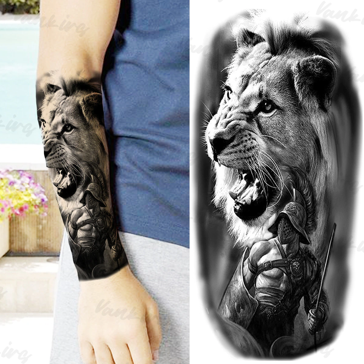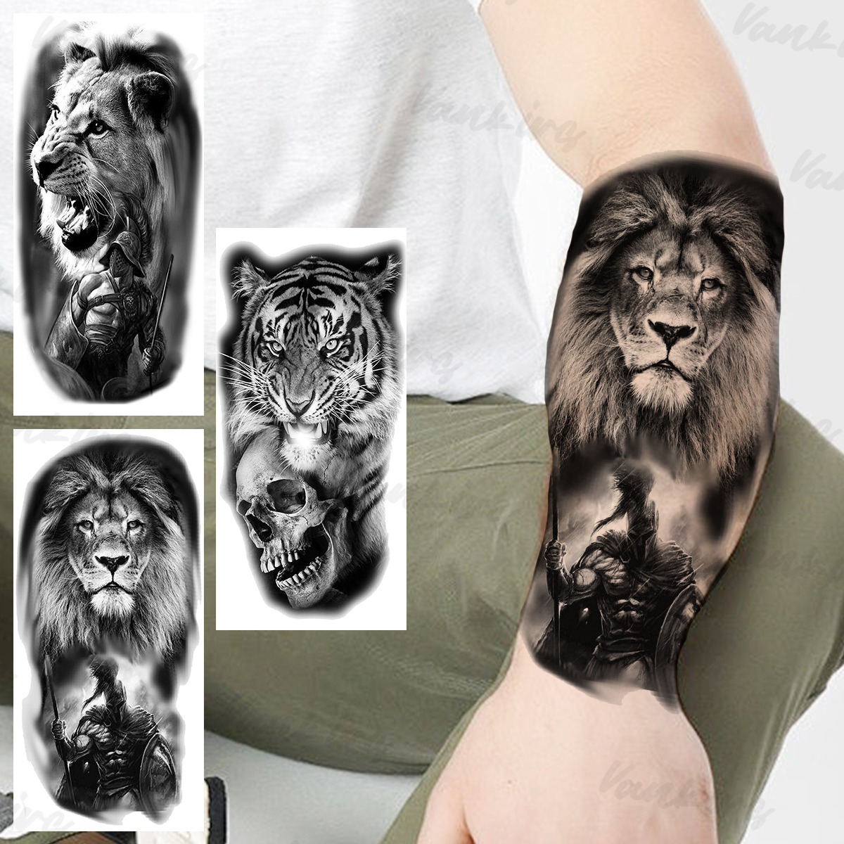 Sdrawing Lion Knight Temporary Tattoos For Men Adults Realistic Tiger Skeleton Fake Tattoo Sticker Arm Water Transfer Tatoos 3D