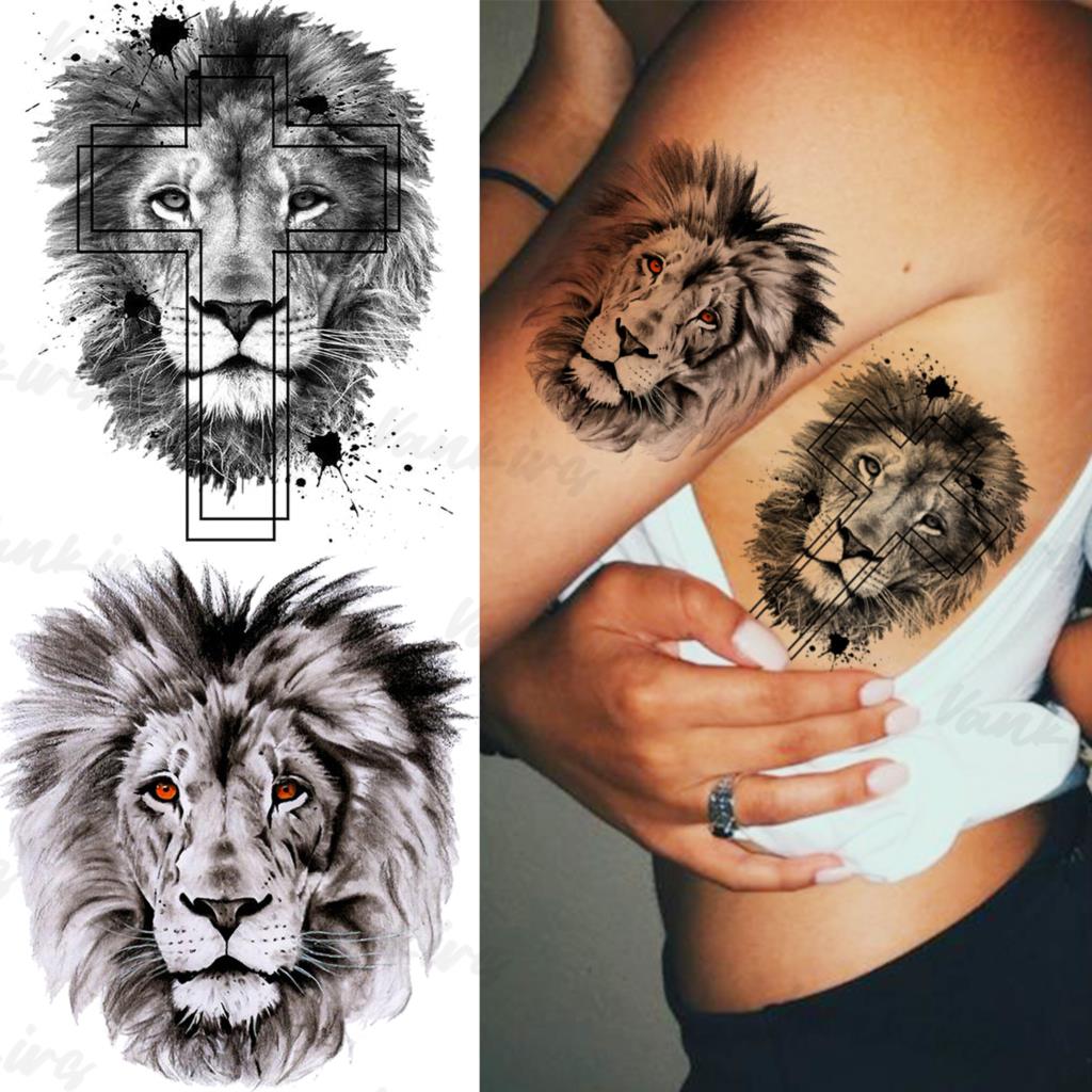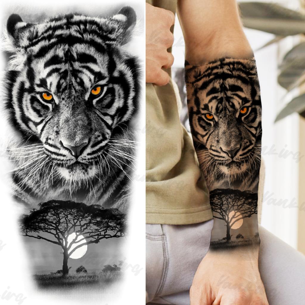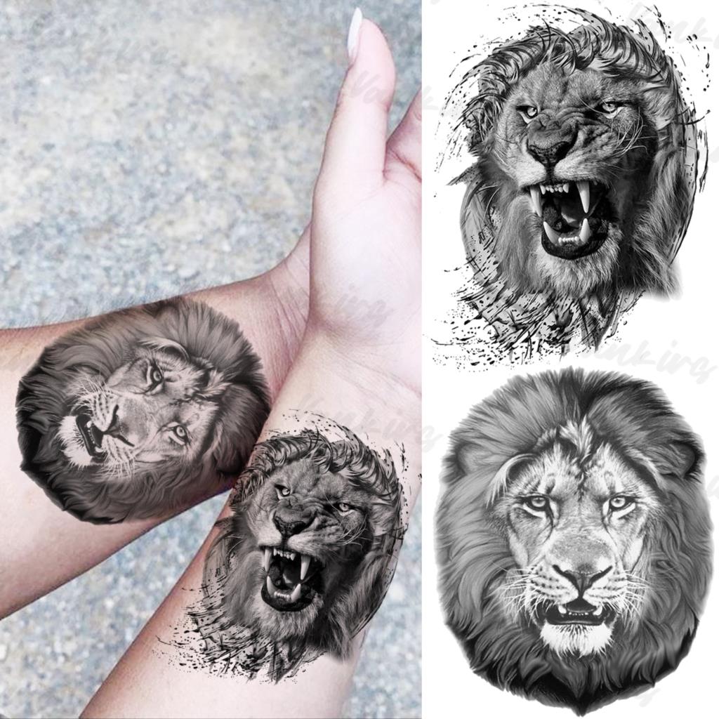 Sdrawing Lion Knight Temporary Tattoos For Men Adults Realistic Tiger Skeleton Fake Tattoo Sticker Arm Water Transfer Tatoos 3D