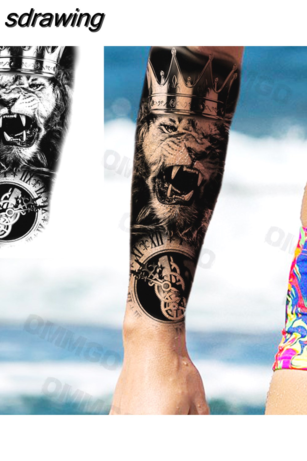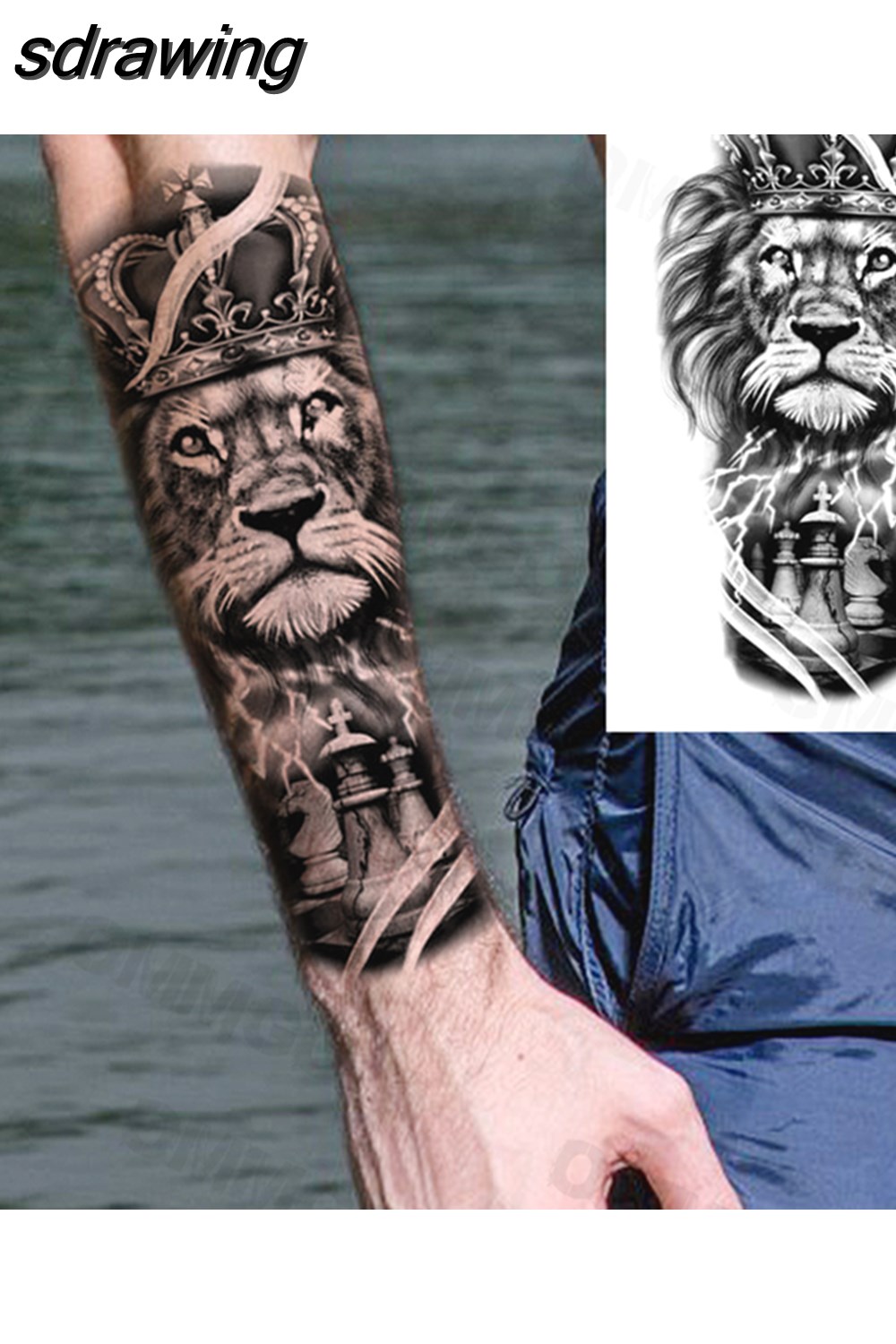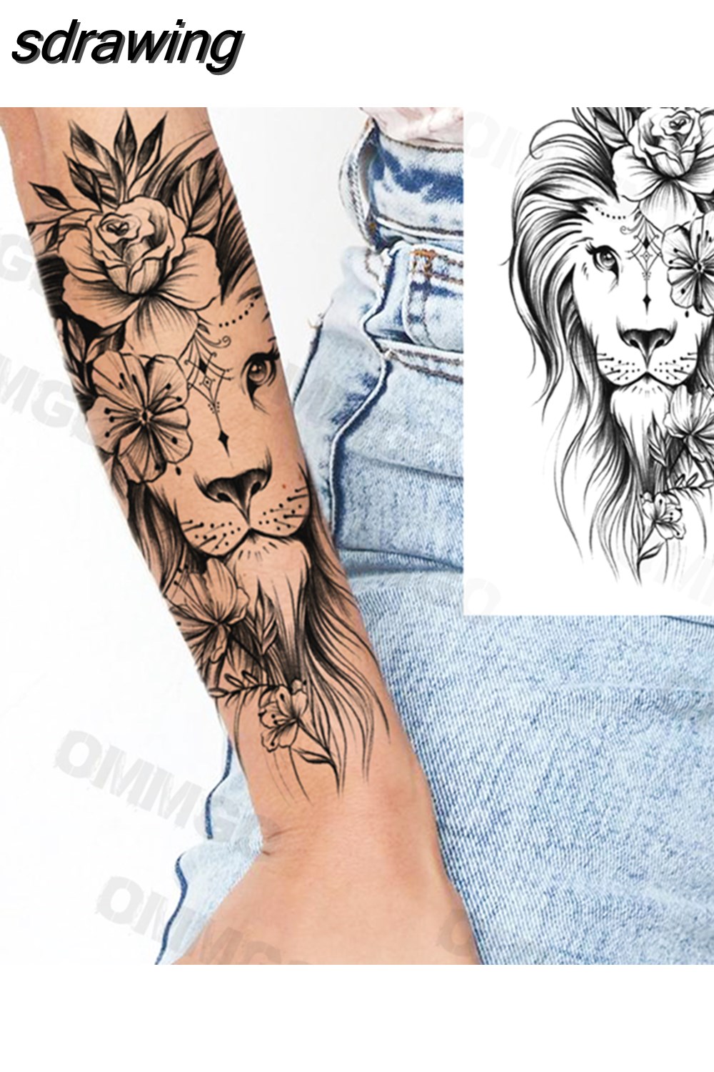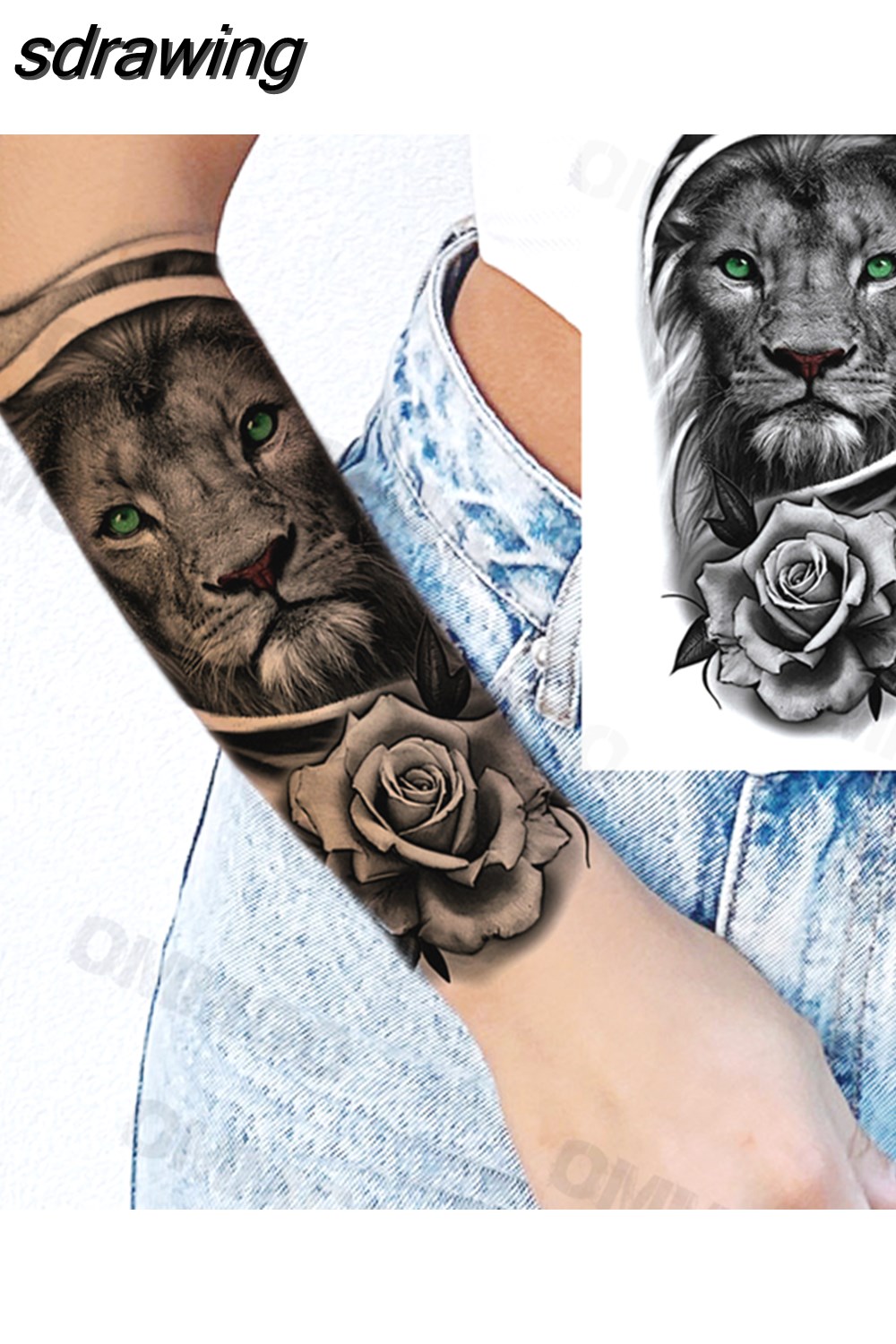 sdrawing Lion Rose Flower Temporary Tattoos For Women Adult Girl Compass Skull Fake Tattoo Arm Thigh Body Art Waterproof Tatoos