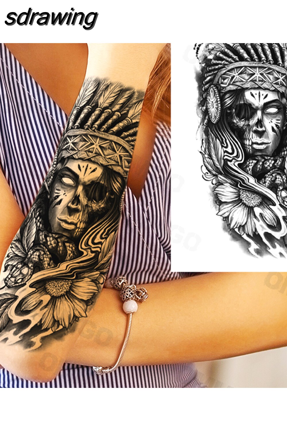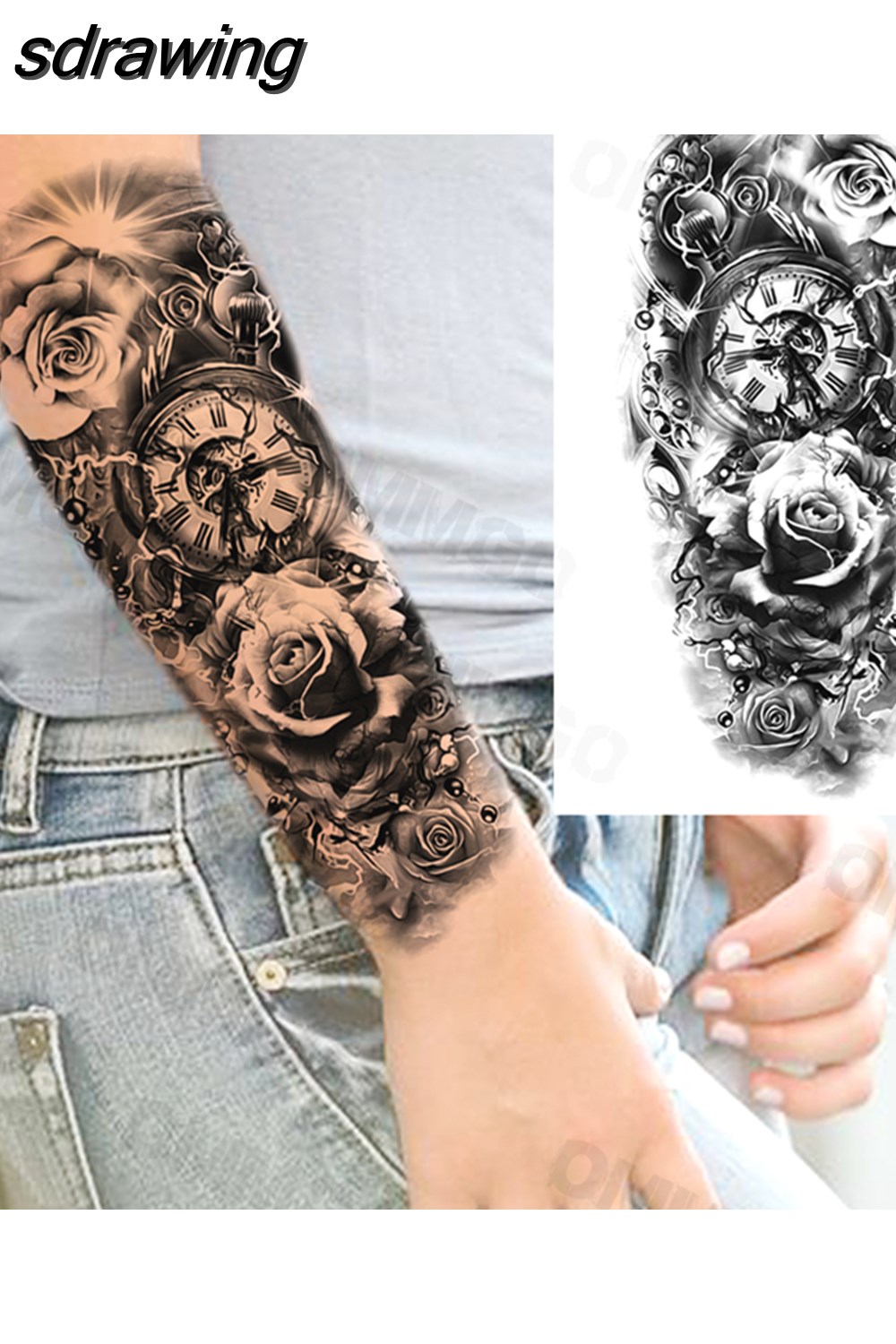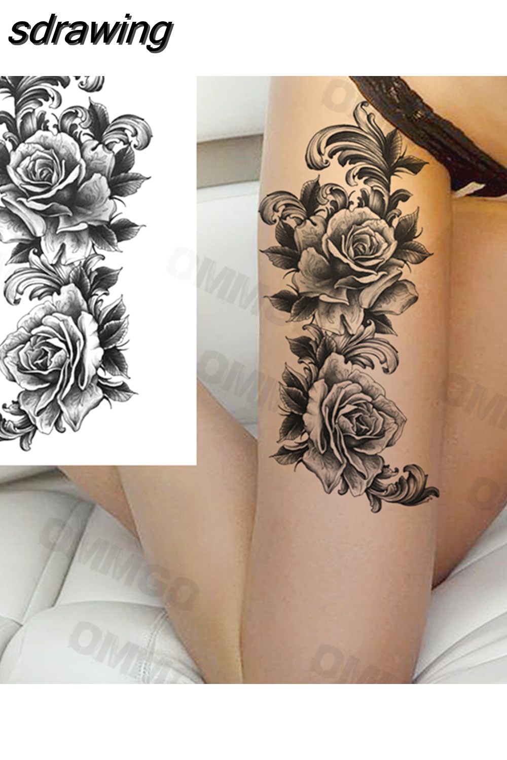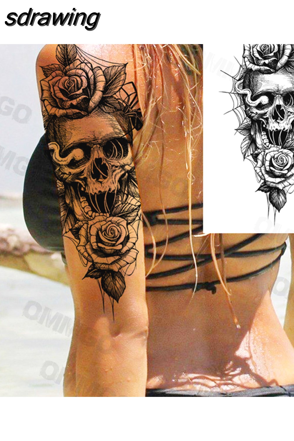 sdrawing Lion Rose Flower Temporary Tattoos For Women Adult Girl Compass Skull Fake Tattoo Arm Thigh Body Art Waterproof Tatoos