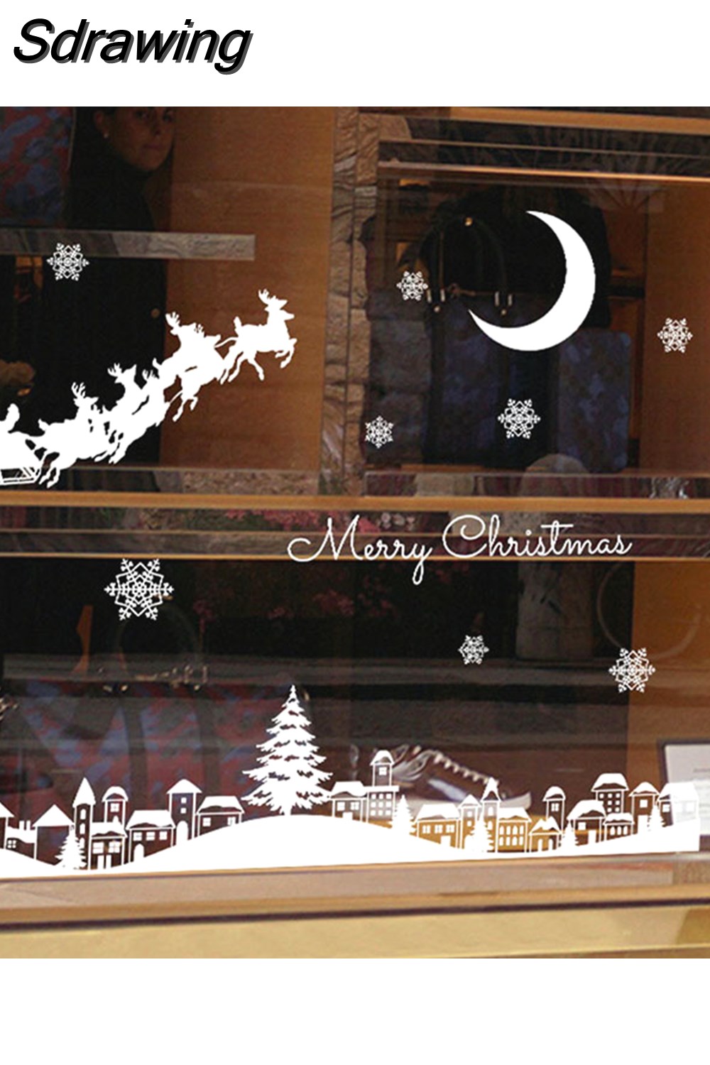 Sdrawing Moon Night electrostatic Stickers snowflake Elk Glass Window wall stickers Xmas Decorative Design Decor Home Decals