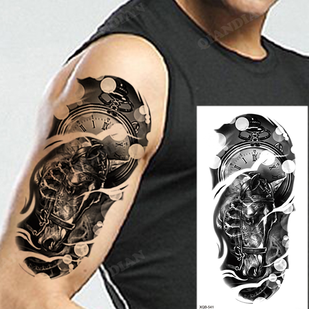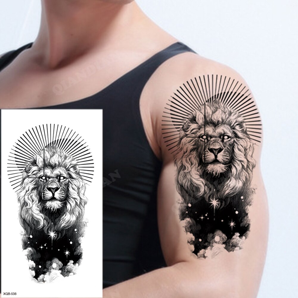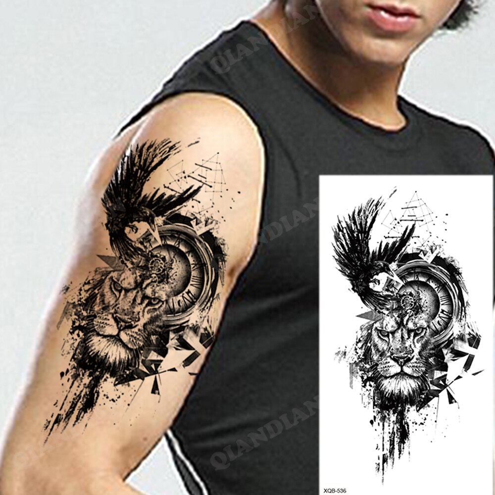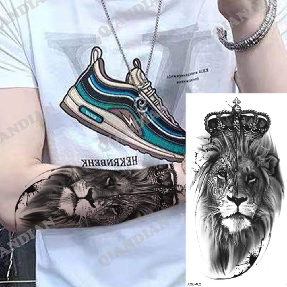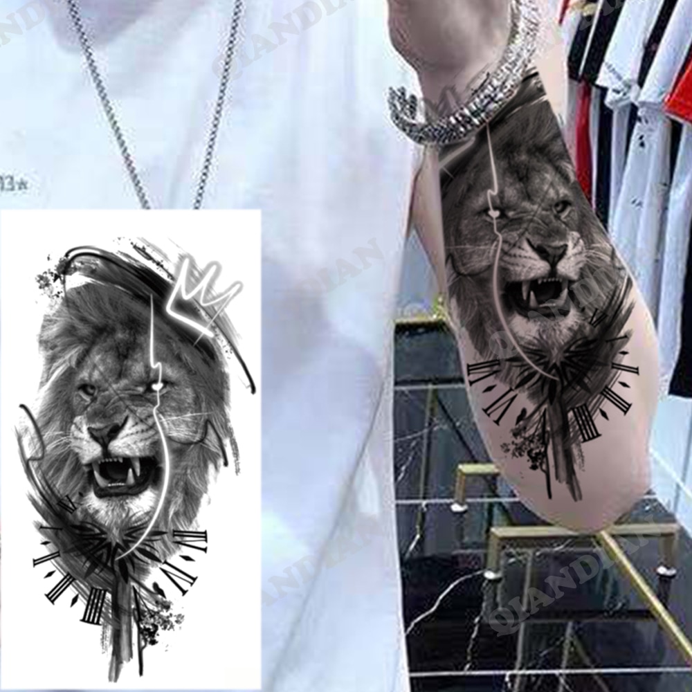 Sdrawing New Waterproof Temporary Tattoo Sticker Forest Lion King Tiger Skull Flash Man Wolf Dragon Body Art Arm Fake Tattoos Women