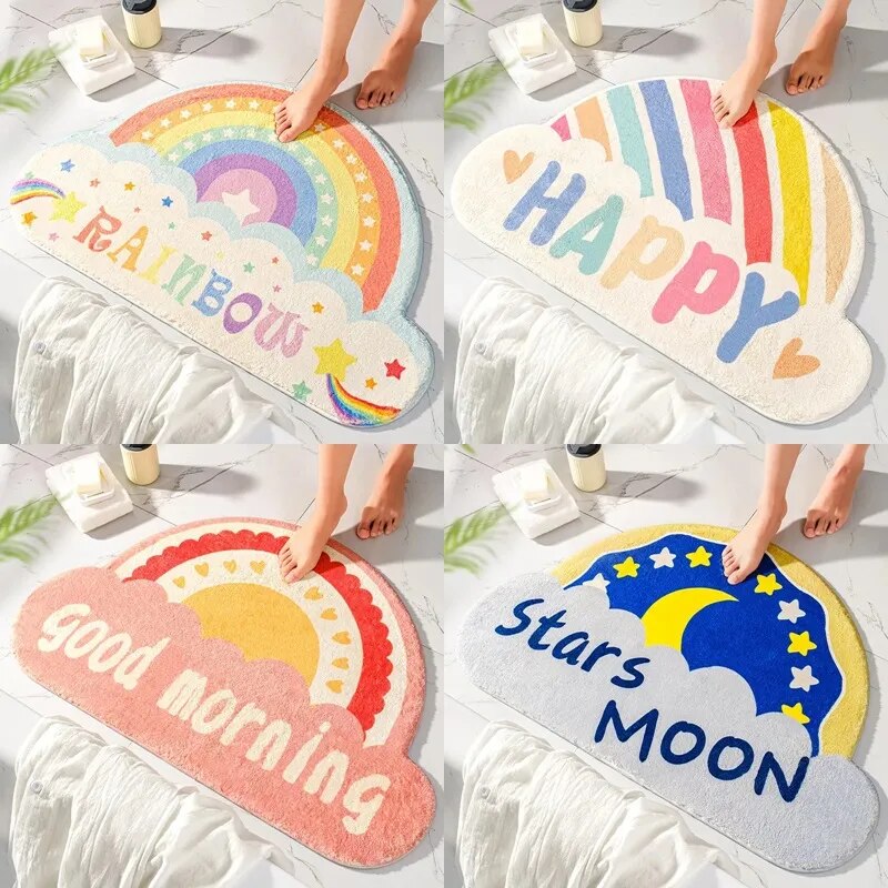 Sdrawing Pattern Bath Mat Soft Absorbent Non-Slip Shower Room Doormat Girls Room Cute Decoration Floor Rugs Modern Home Decor