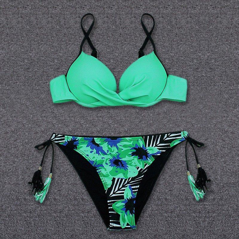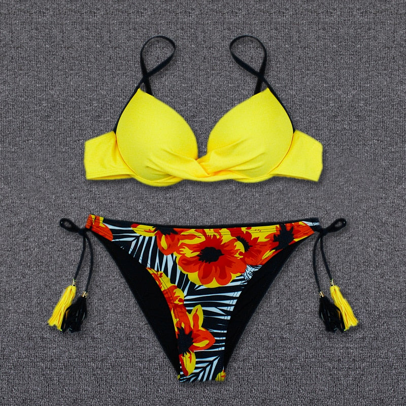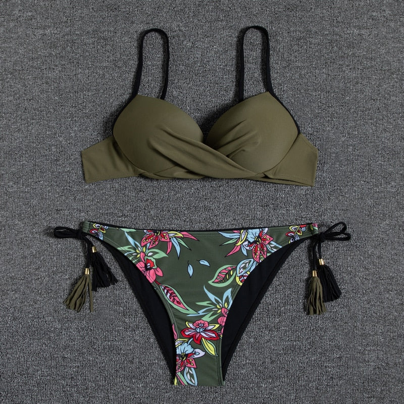 SDRAWING Push Up Sexy Bikini 2021 Floral Print Swinsuit Swimwear Women Low Waist Bathing Suit Bikinis Set Beachwear Brazilian Biqiuni XL