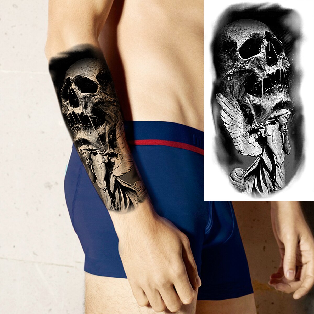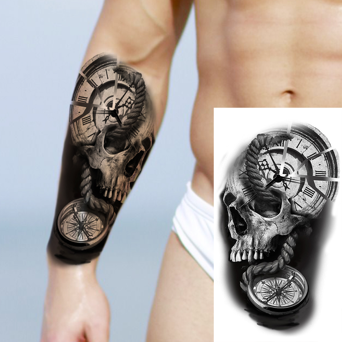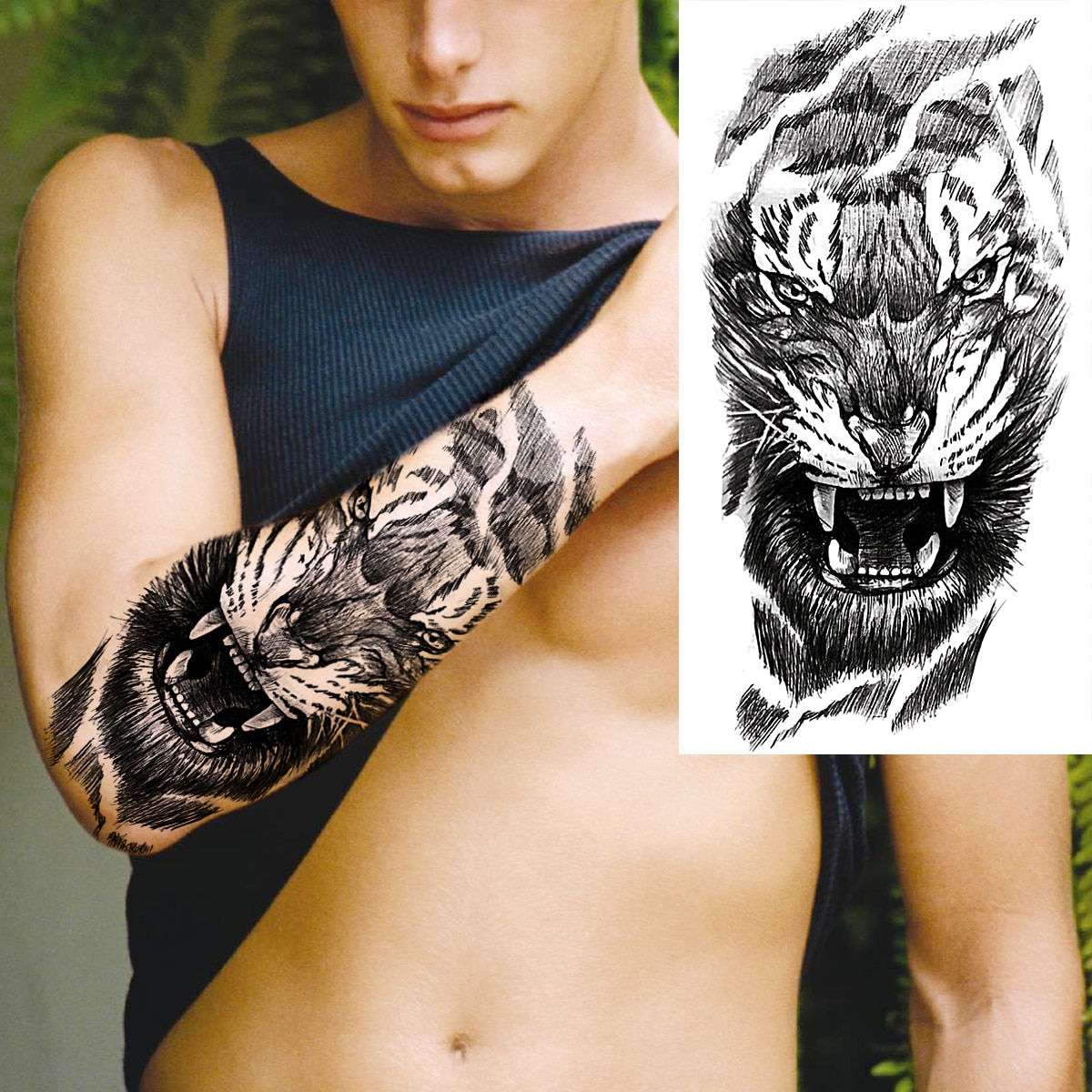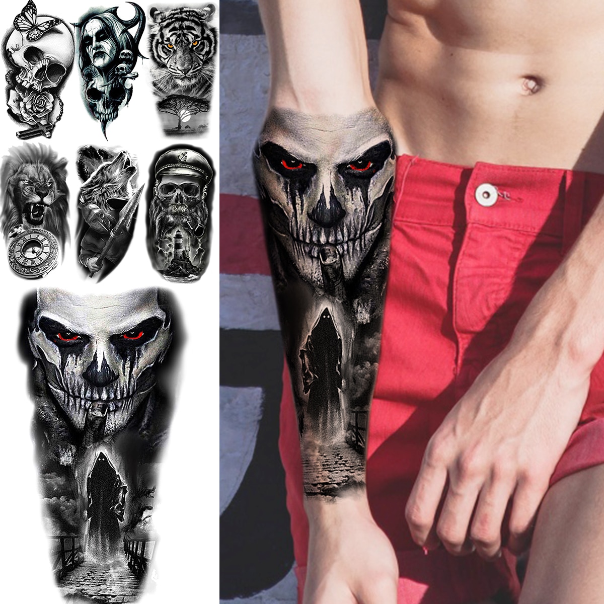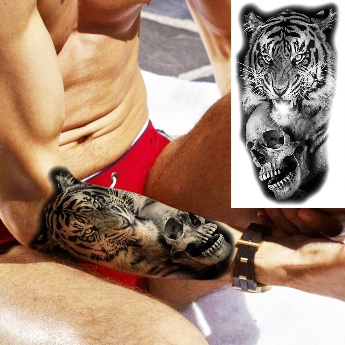 Sdrawing Realistic Black Devil Temporary Tattoos For Men Adult Tiger Pirate Skeleton Vampire Fake Tattoo Forearm Scary Tatoo Joker