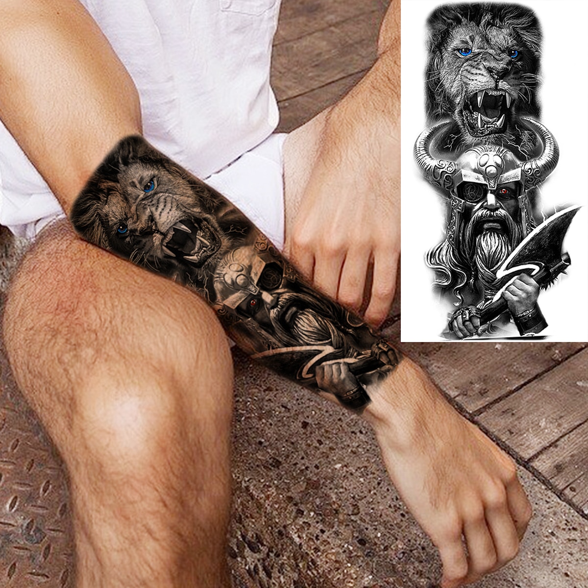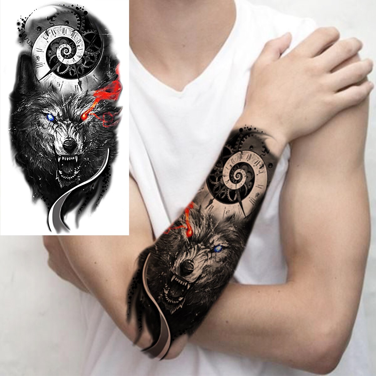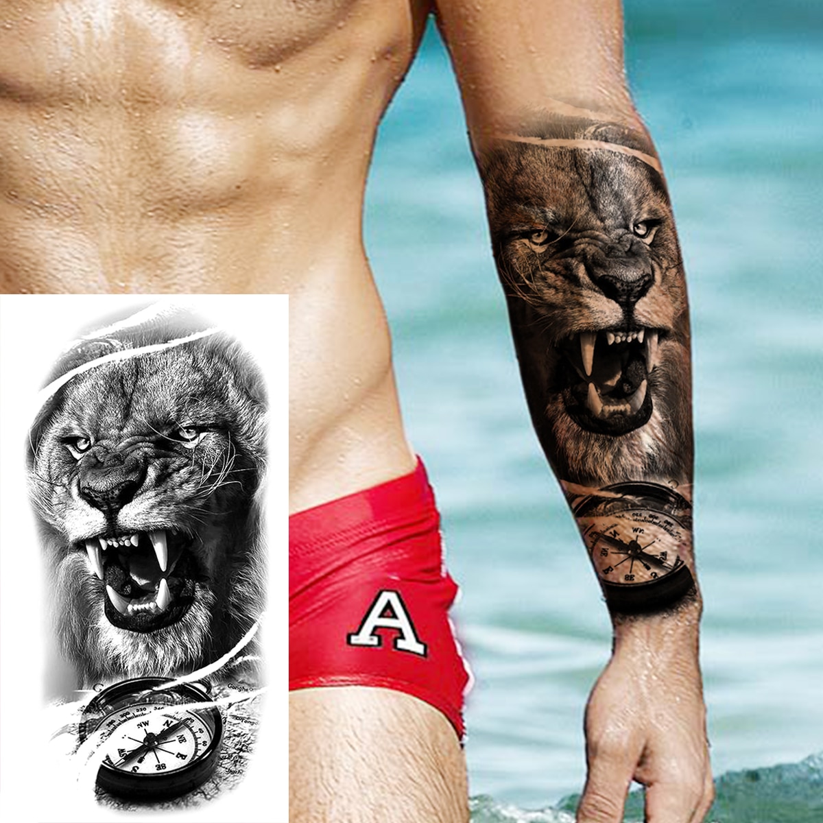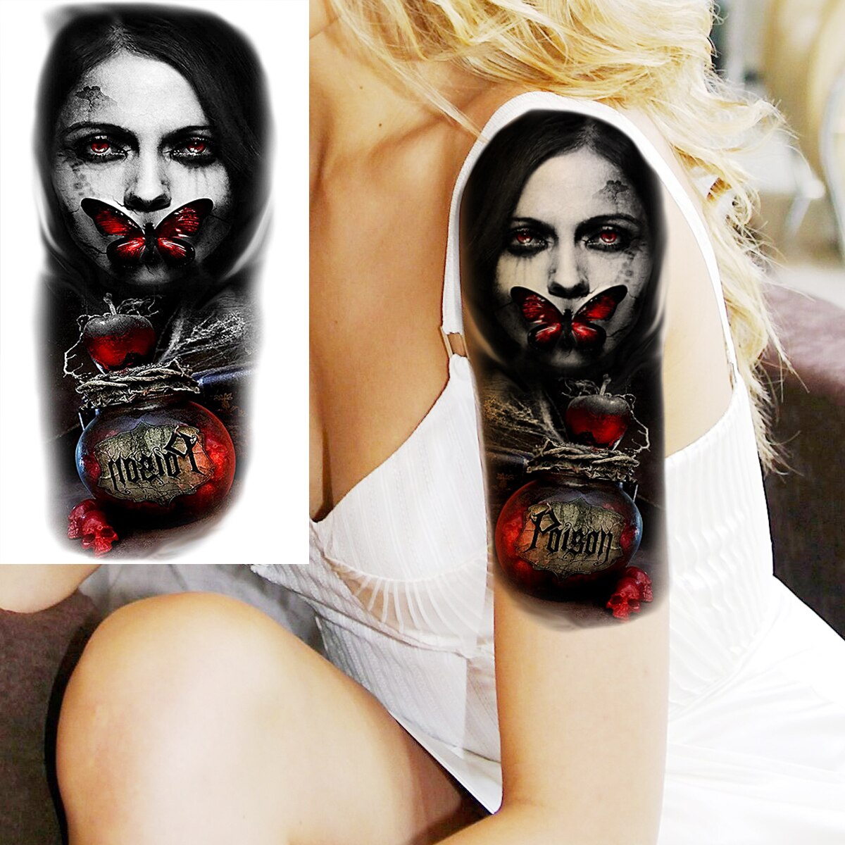 Sdrawing Realistic Black Devil Temporary Tattoos For Men Adult Tiger Pirate Skeleton Vampire Fake Tattoo Forearm Scary Tatoo Joker
