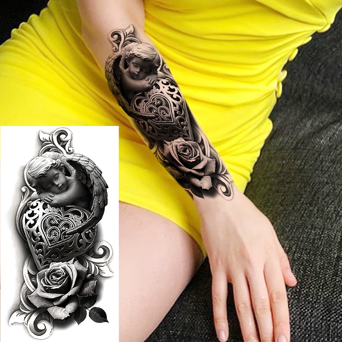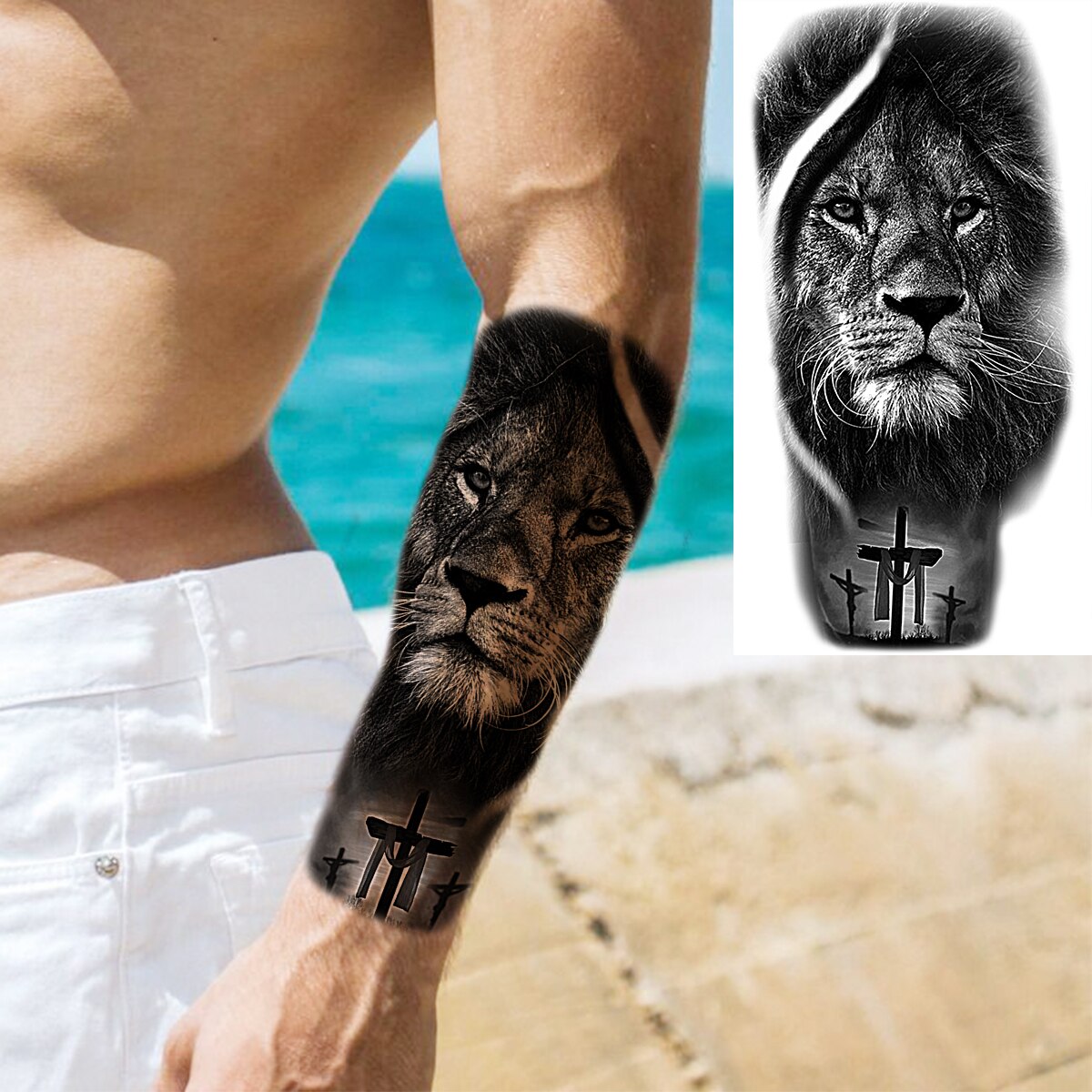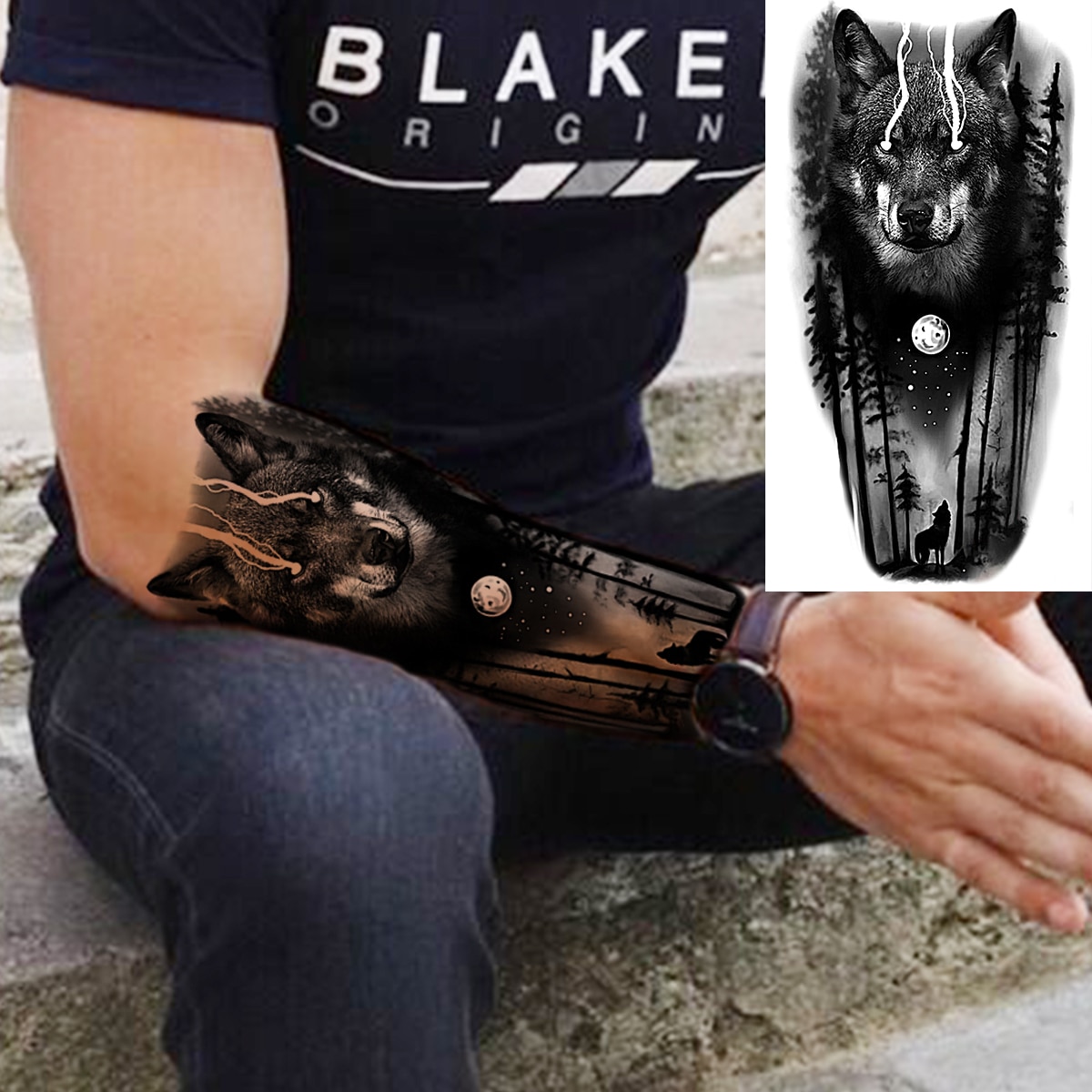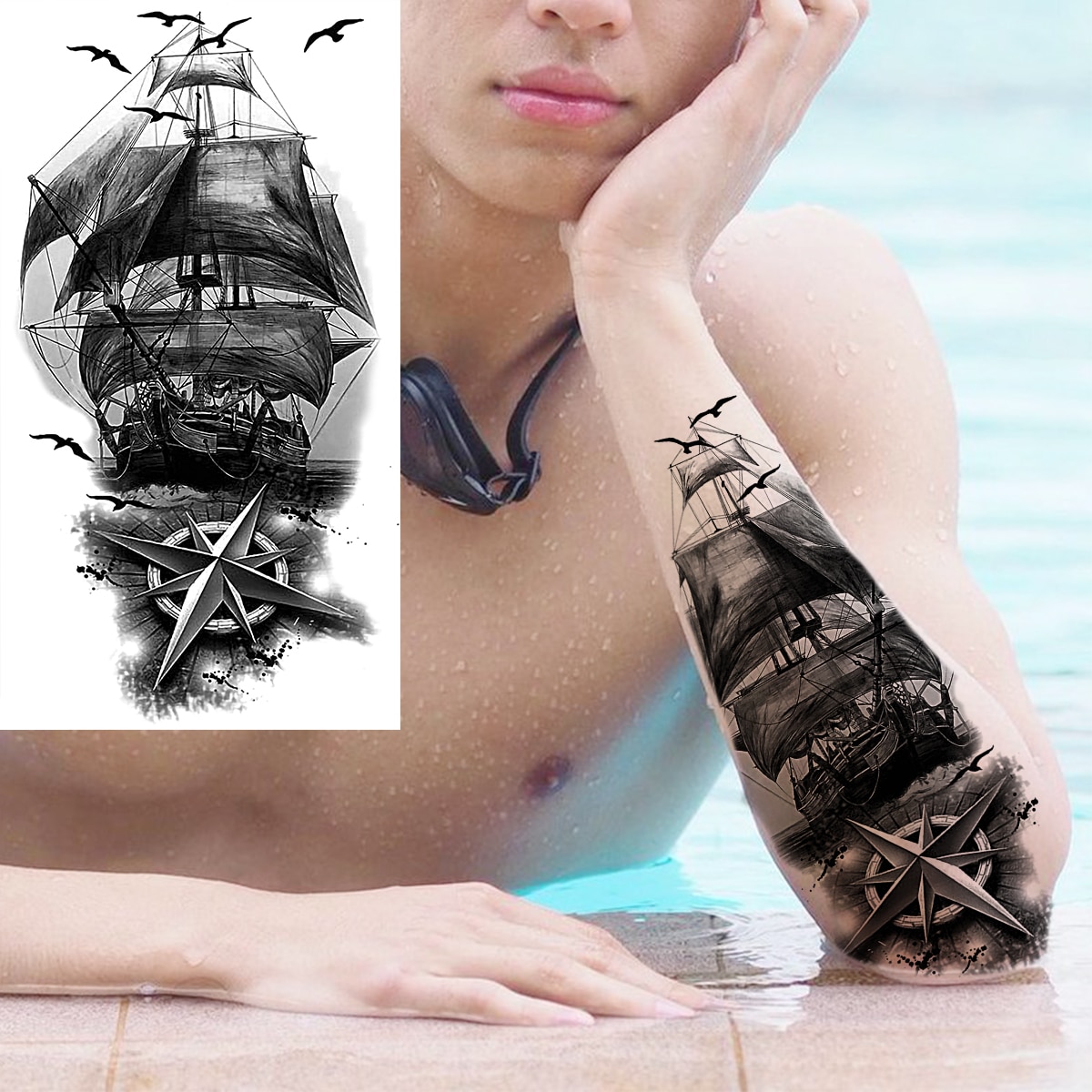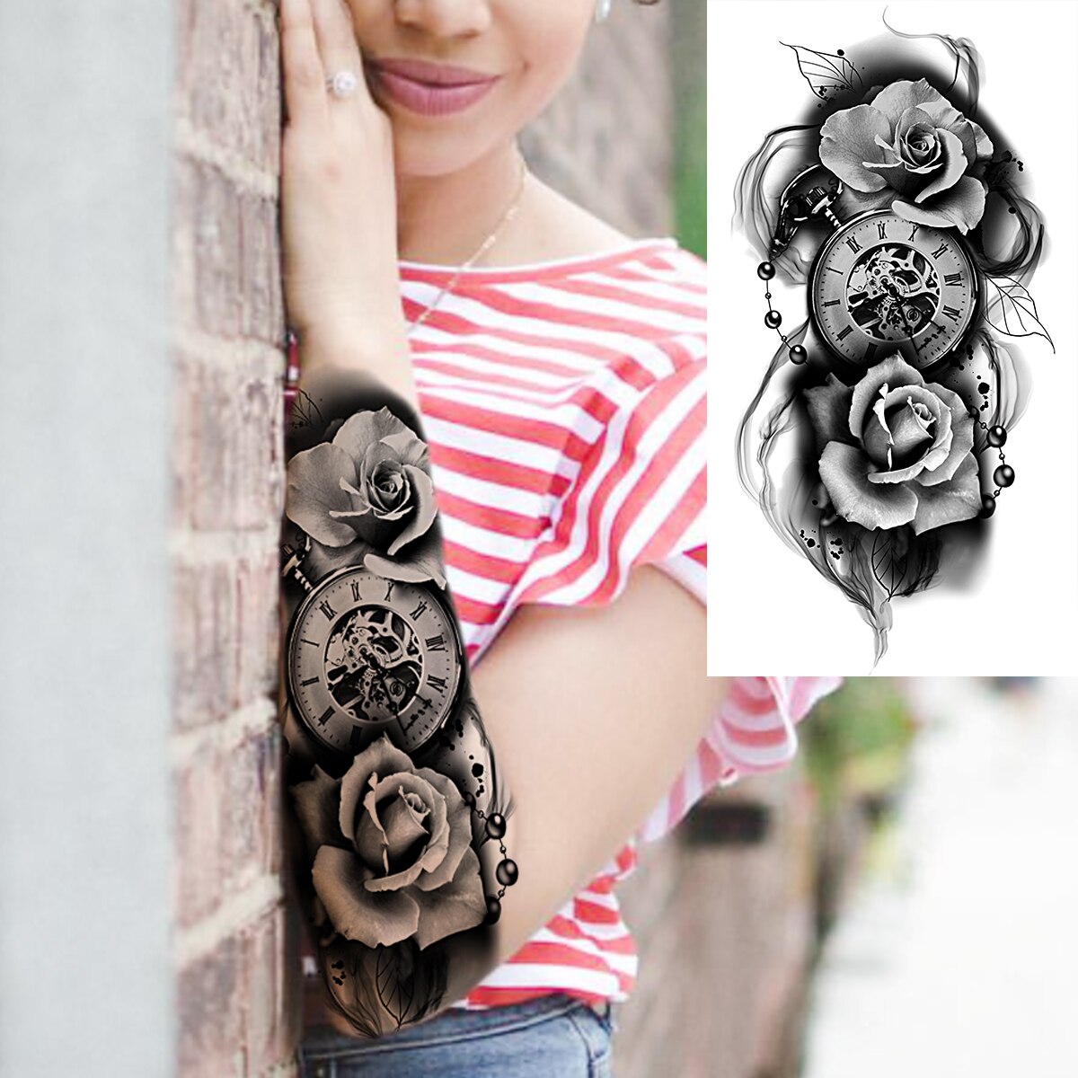 Sdrawing Realistic Black Devil Temporary Tattoos For Men Adult Tiger Pirate Skeleton Vampire Fake Tattoo Forearm Scary Tatoo Joker