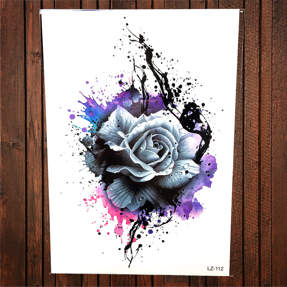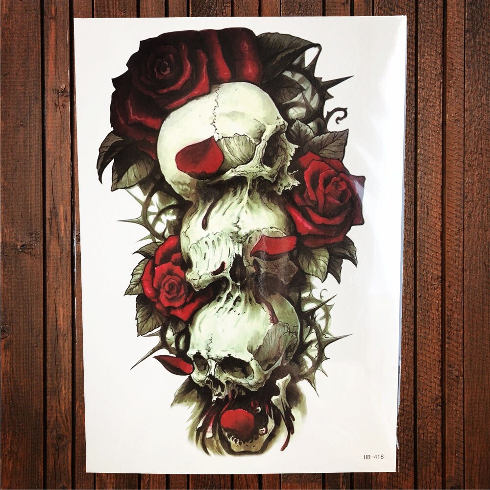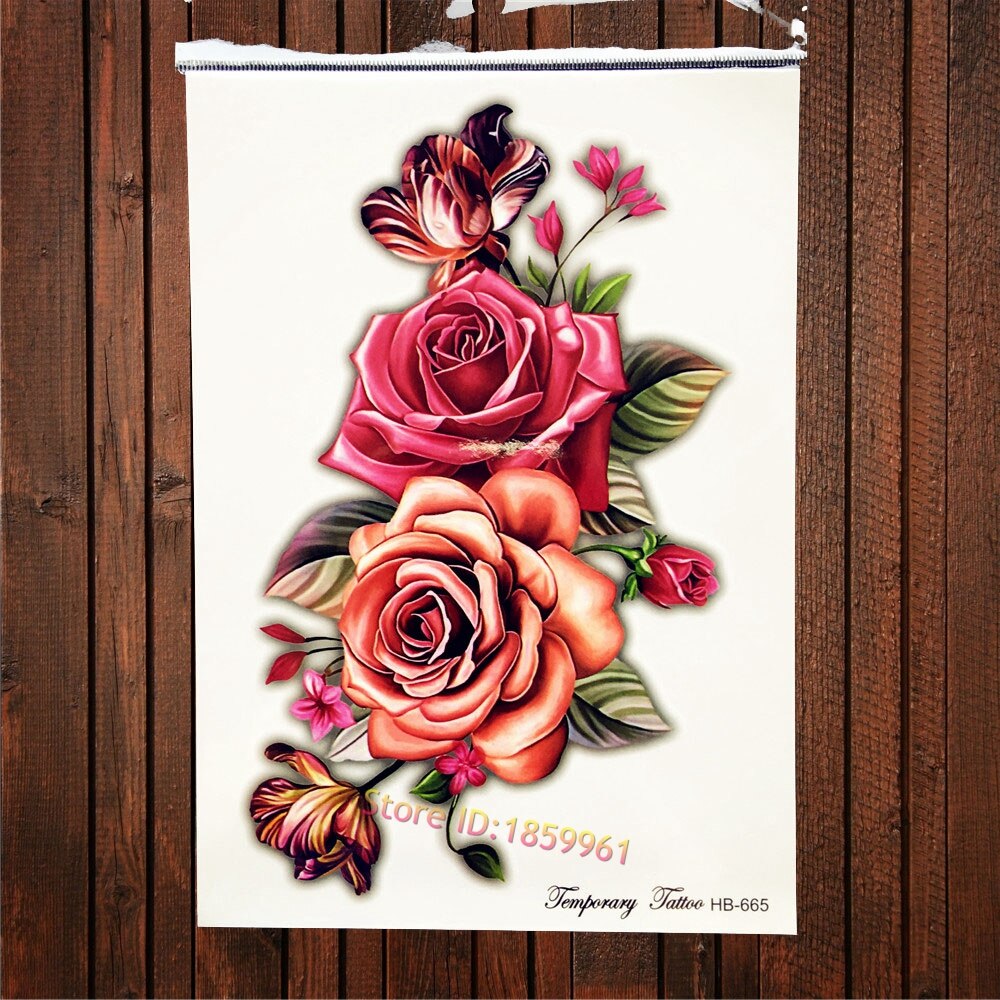 Sdrawing Red Rose Flower Temporary Tattoo Stickers Women Body Art Tattoo Arm Sleeve 21x15CM Large Fake Flash Waterproof Tatoo Henna