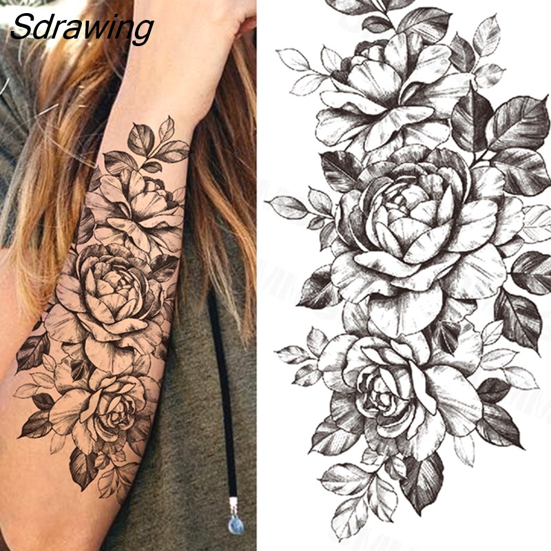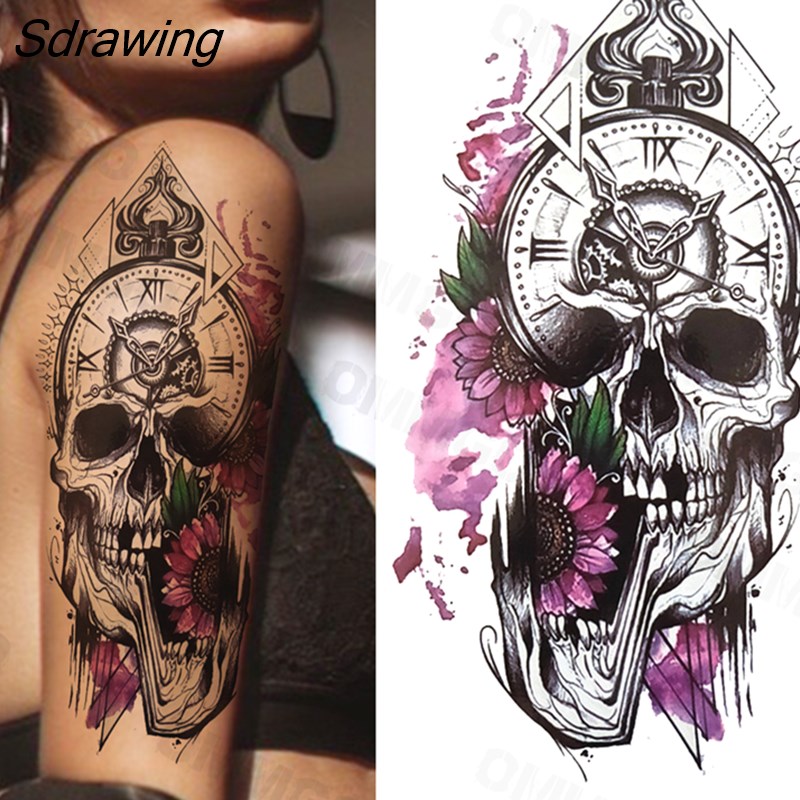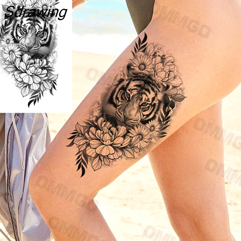 Sdrawing Rose Flower Skeleton Temporary Tattoos For Women Adult Girl Lion Tiger Crown Fake Tattoo Body Art Painting Tatoo Decal