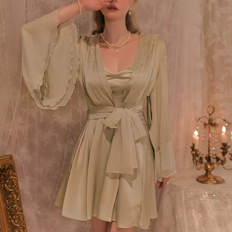 Sdrawing Sdrawing Lace Mesh Mesh Red Ice Bathrobe Home Dress Nightgover 2025 New Female Sexy Robe