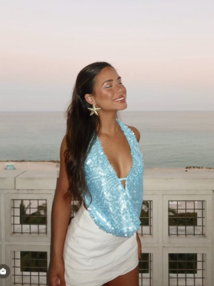 Sdrawing Sdrawing Spring And Summer New Hot Deep V Lewd Hanging Neck Sling Sexy Bareback Holiday Style LX0142