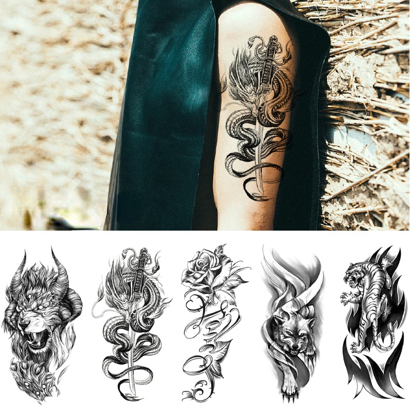 Sdrawing Tattoo Stickers Animal Tatoo Sticker Flying Dragon Wolf Head Tiger Dream Catcher Fake Tatto Body Art Makeup Stickers