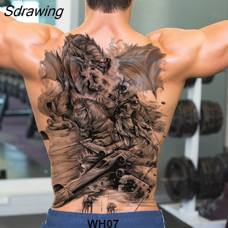 Sdrawing temporary tatoo for men tattoo body art full back sexy tattoo sticker lion king tiger dragon tattoo designs waterproof new
