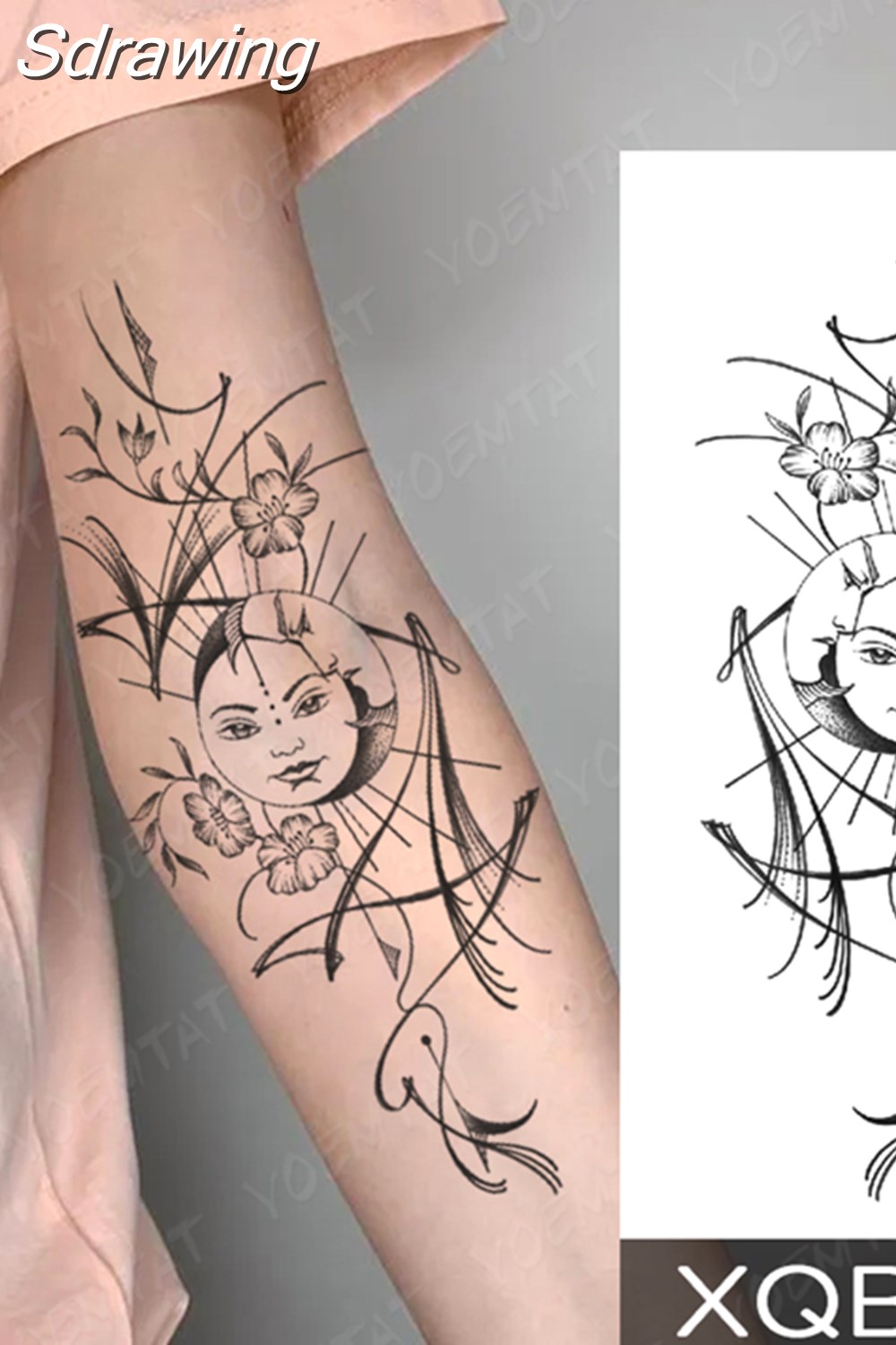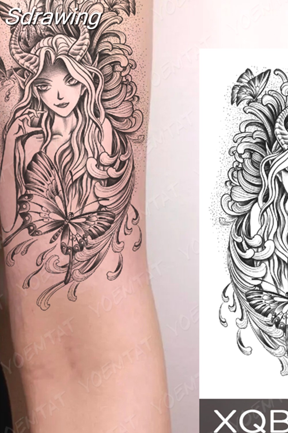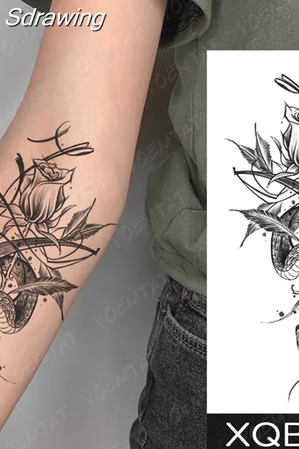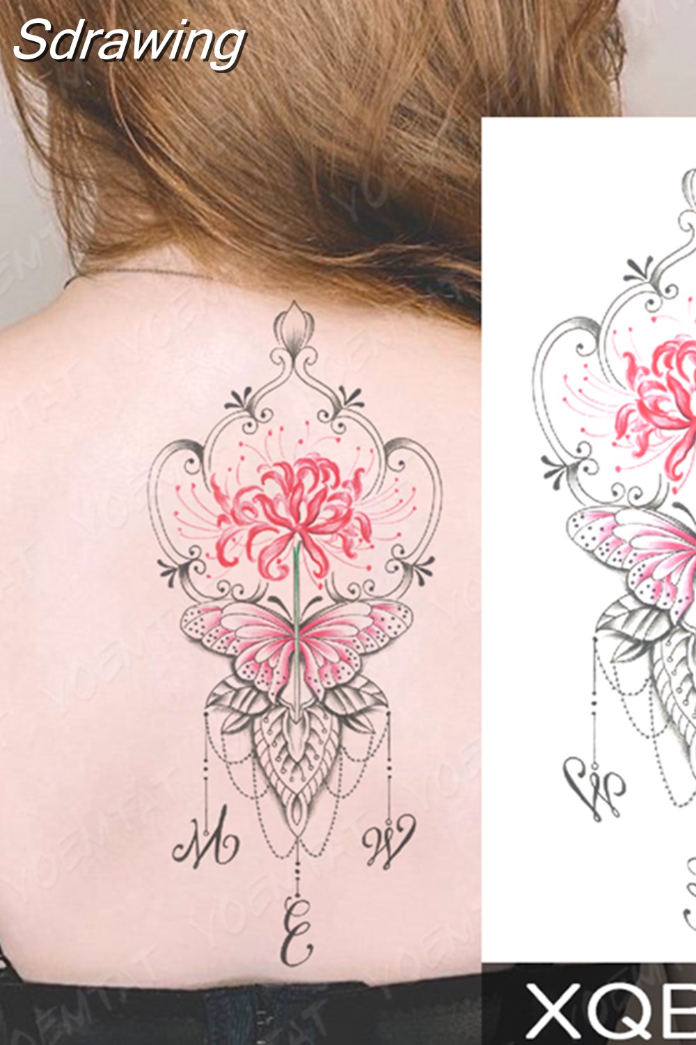 Sdrawing Temporary Tattoo Sticker Butterfly Flower Totem Flash Tatto Y2k Style Body Art Arm Leg Waist Fake Tatoo Men Women