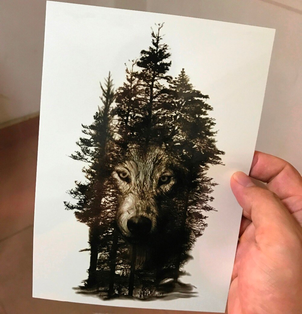 Sdrawing Temporary Tattoo Sticker crow tiger Ganesha wolf forest tatto stickers flash tatoo fake tattoos for women men 7